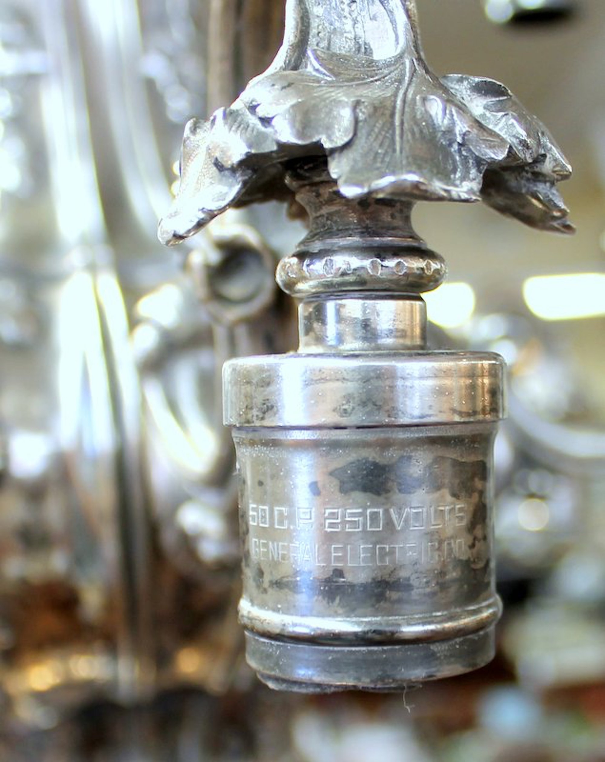 30″ H (L) x 24″ W (Dia) with Original G.E. “50 C.P., 250 Volt” Sockets. (recently re-wired)