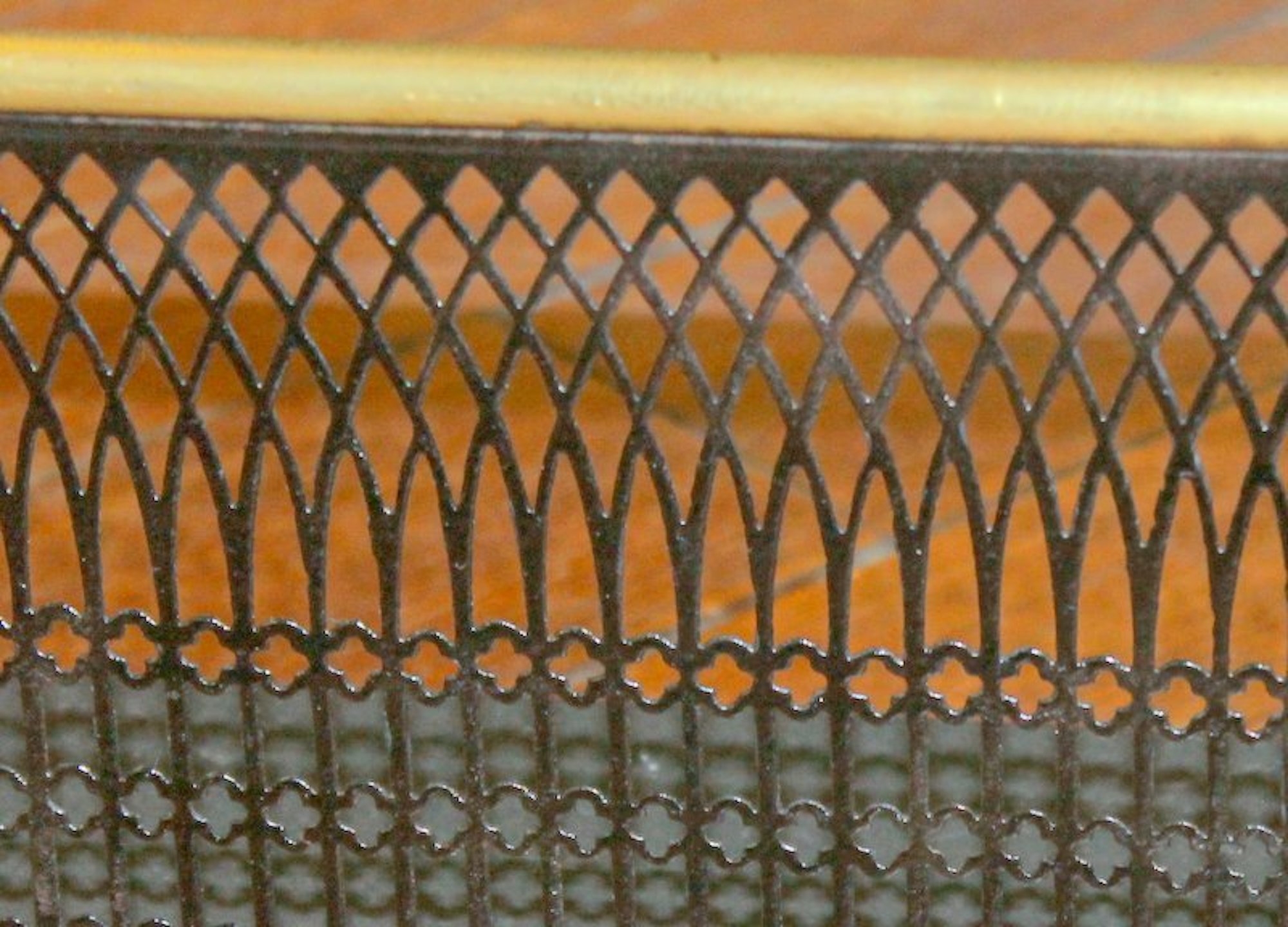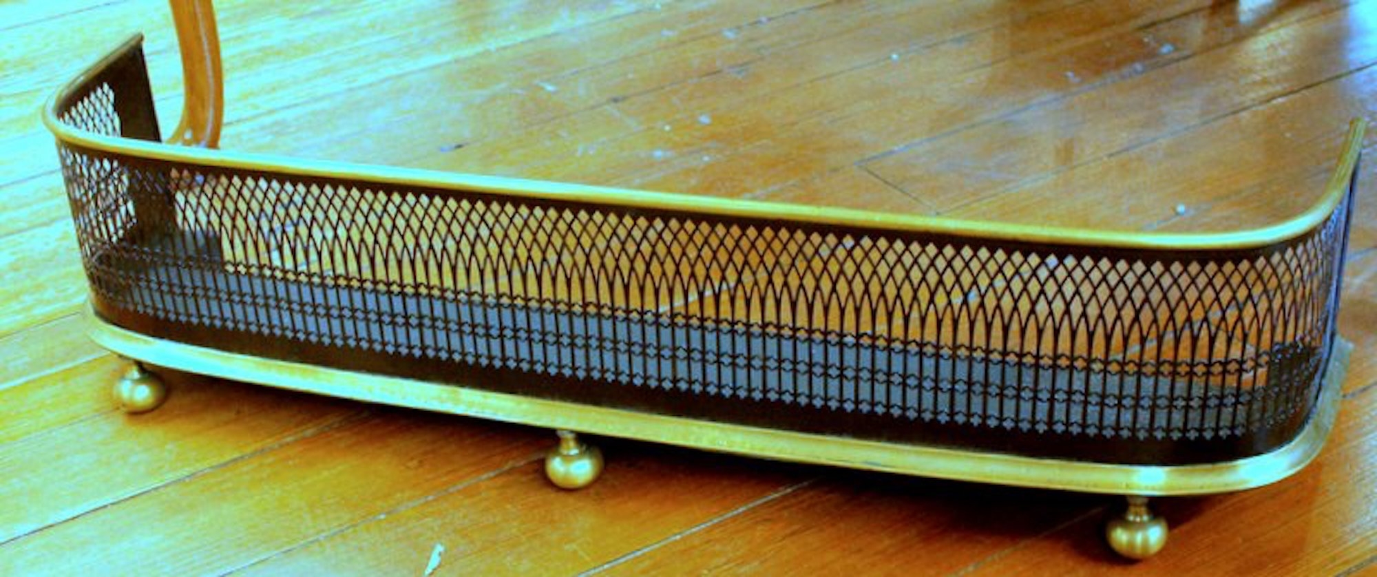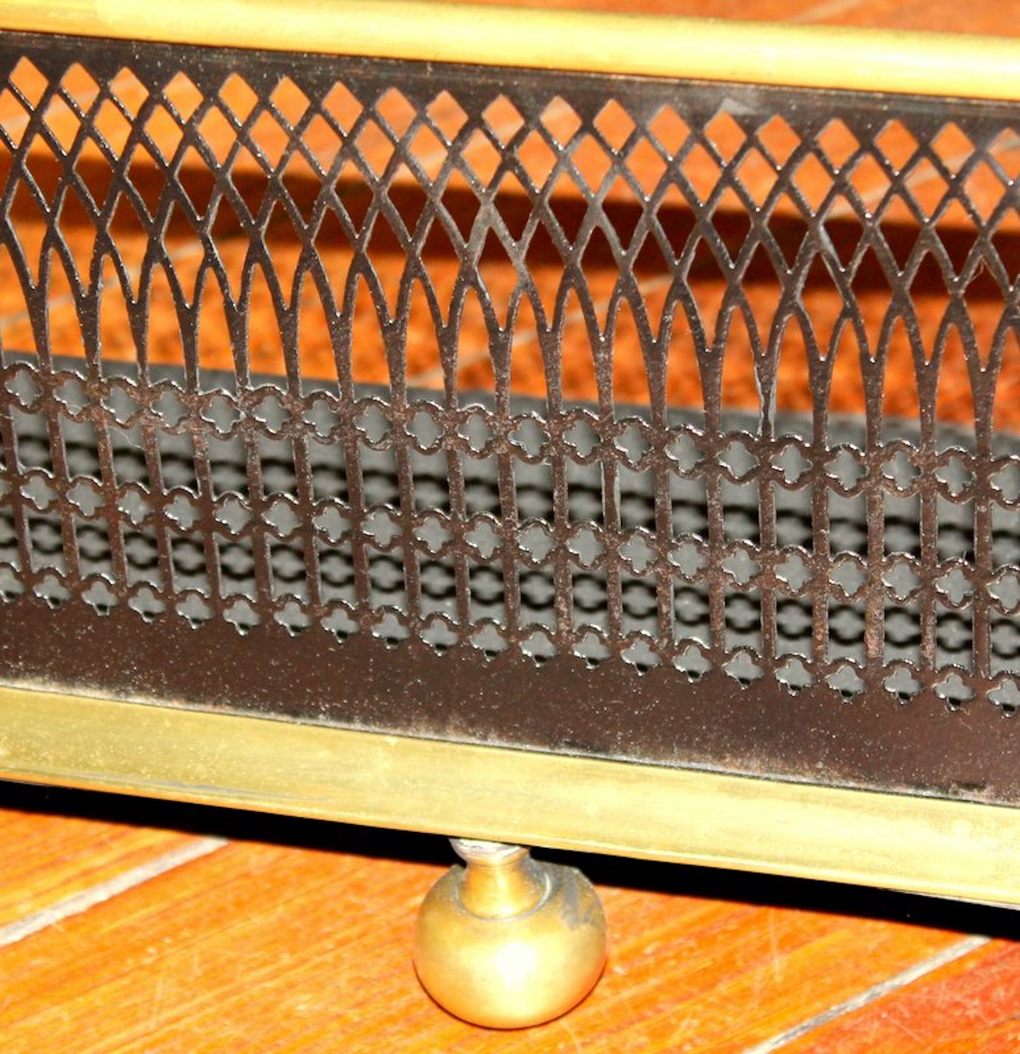 Fine Antique English Blackened Steel and Brass Pierced Fireplace Fender