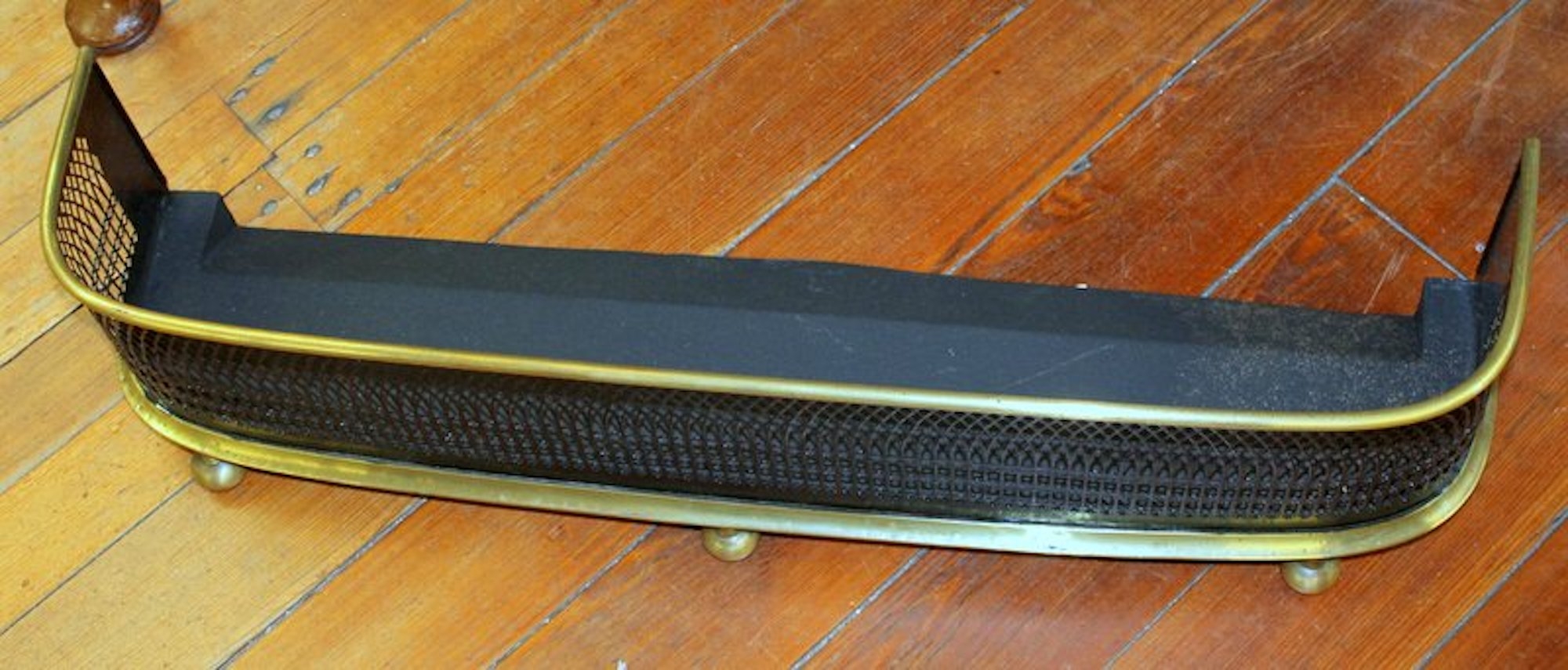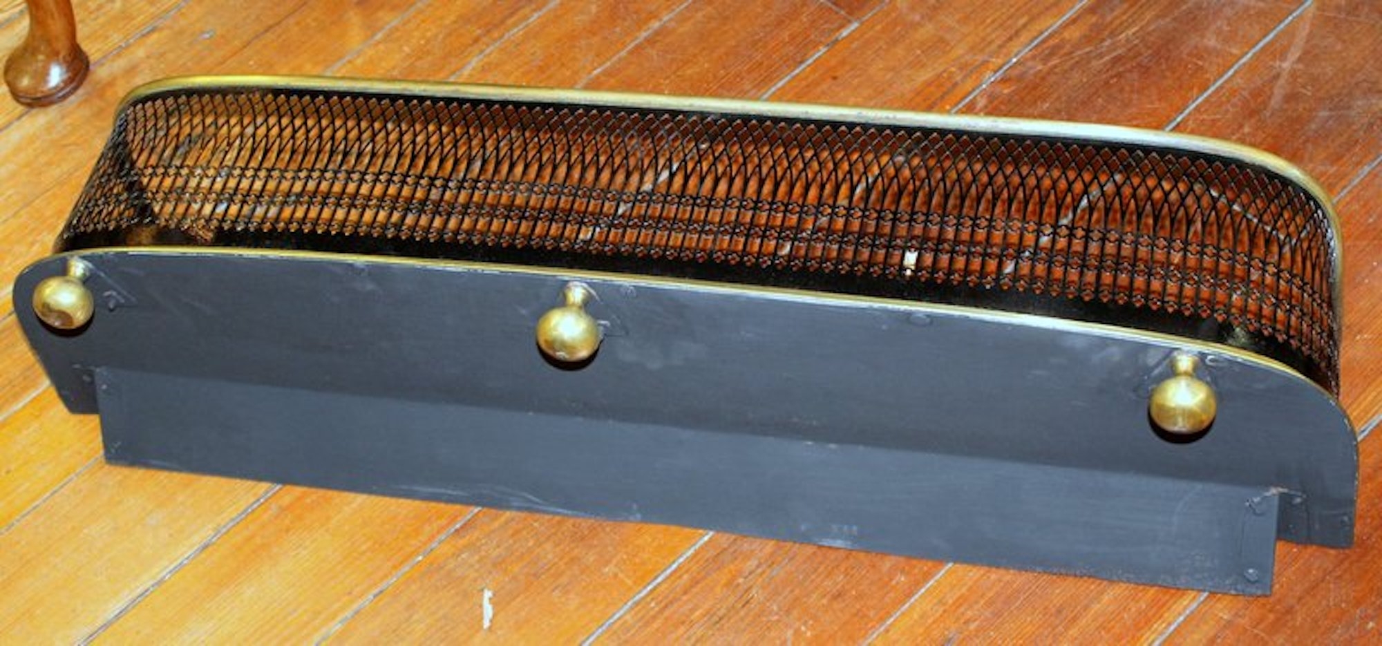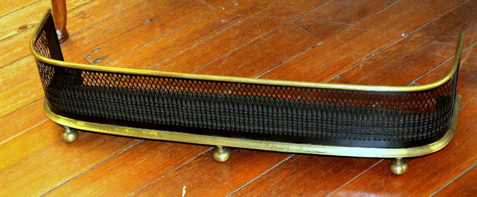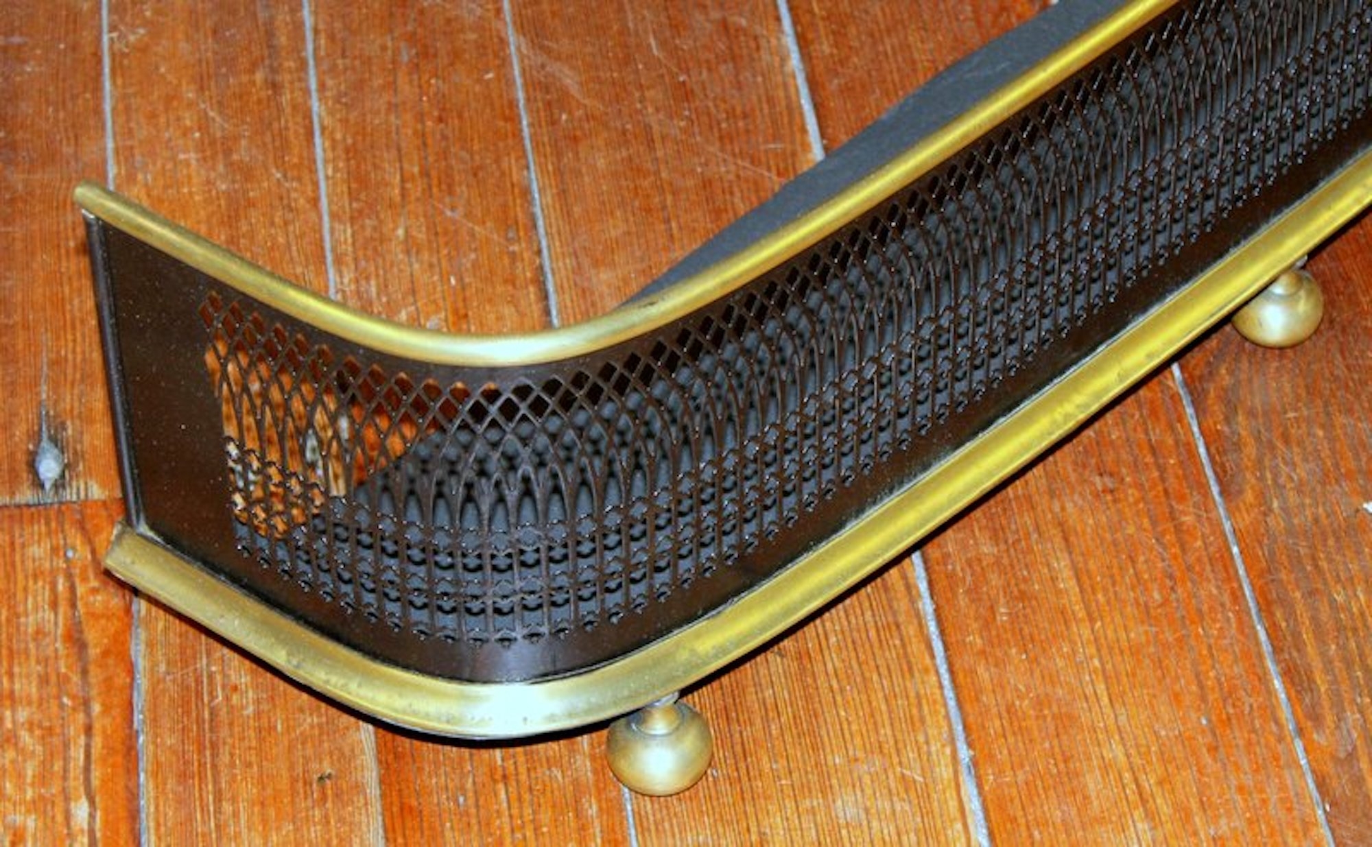 Fine Antique English Blackened Steel and Brass Pierced Fireplace Fender