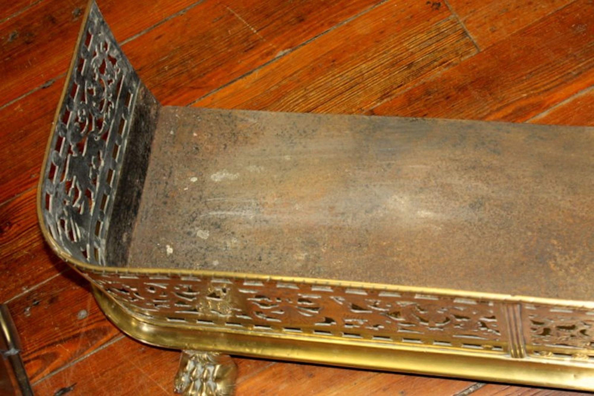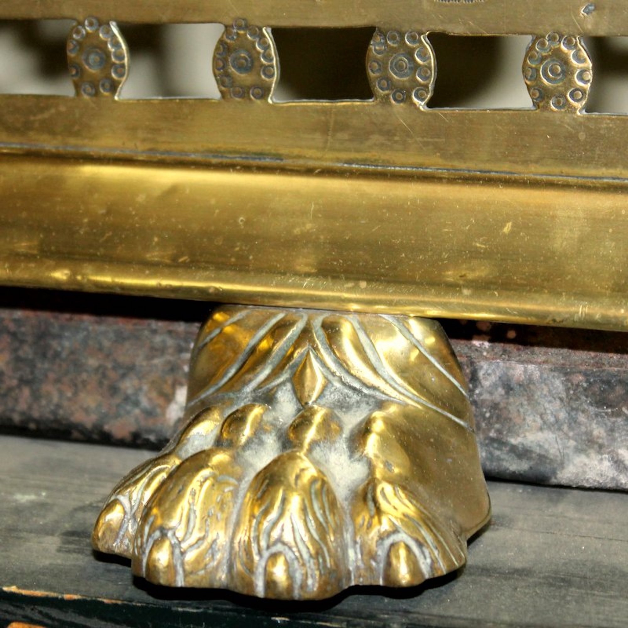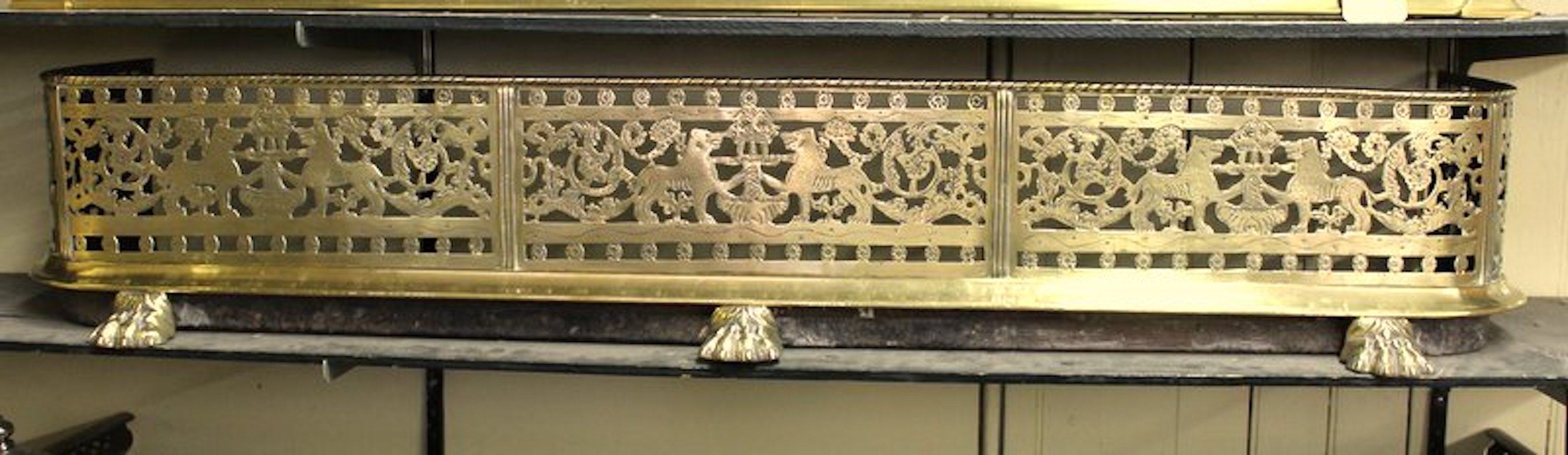 Finest Antique English George III Pierced and Engraved Brass Fireplace Fender