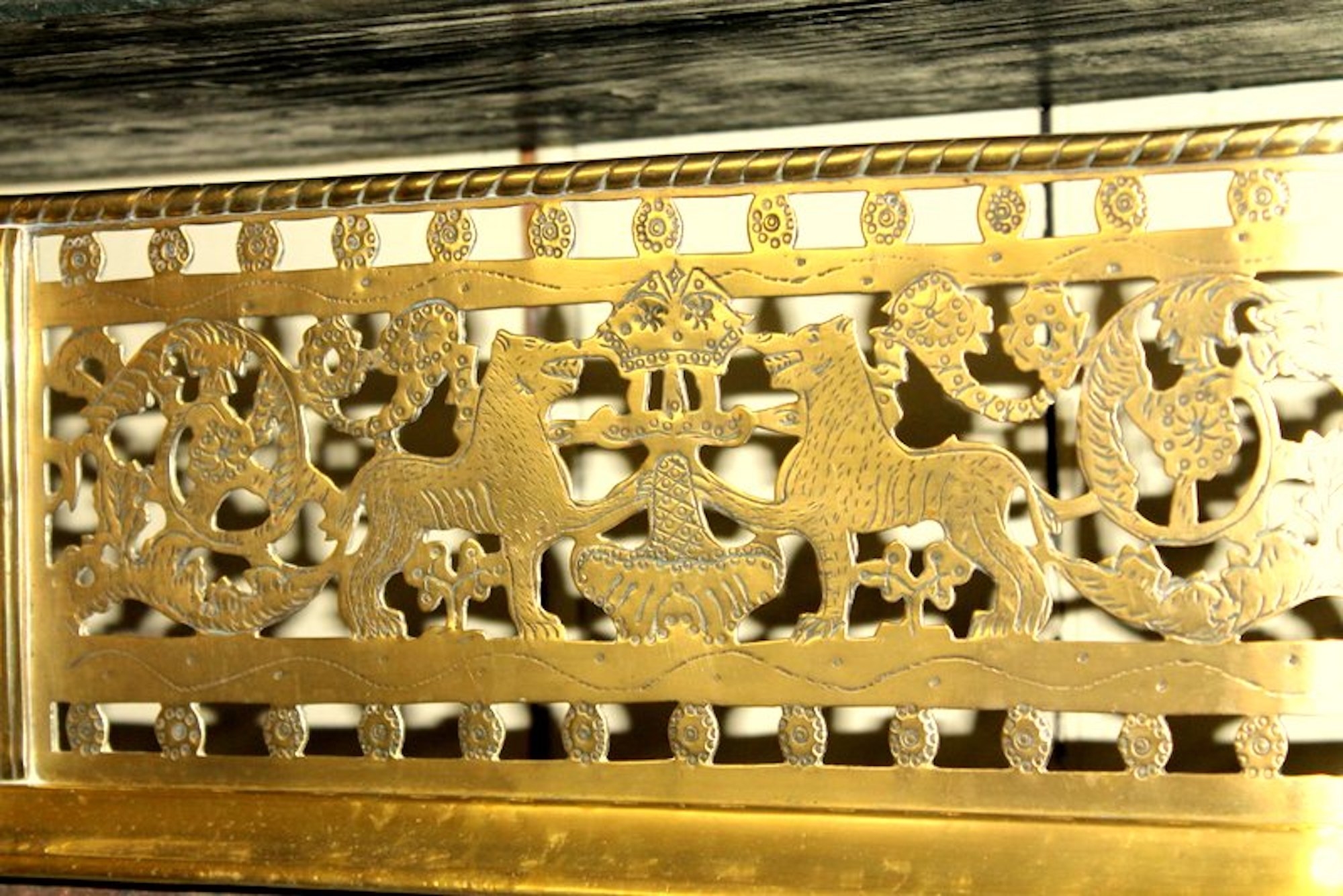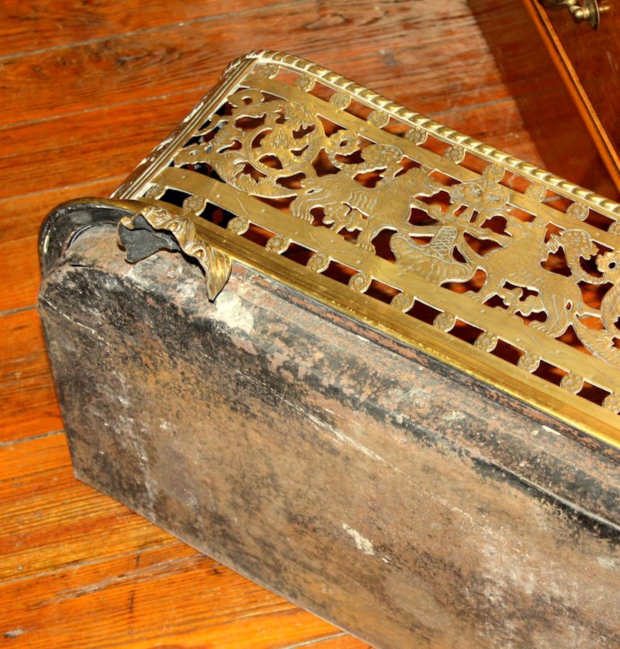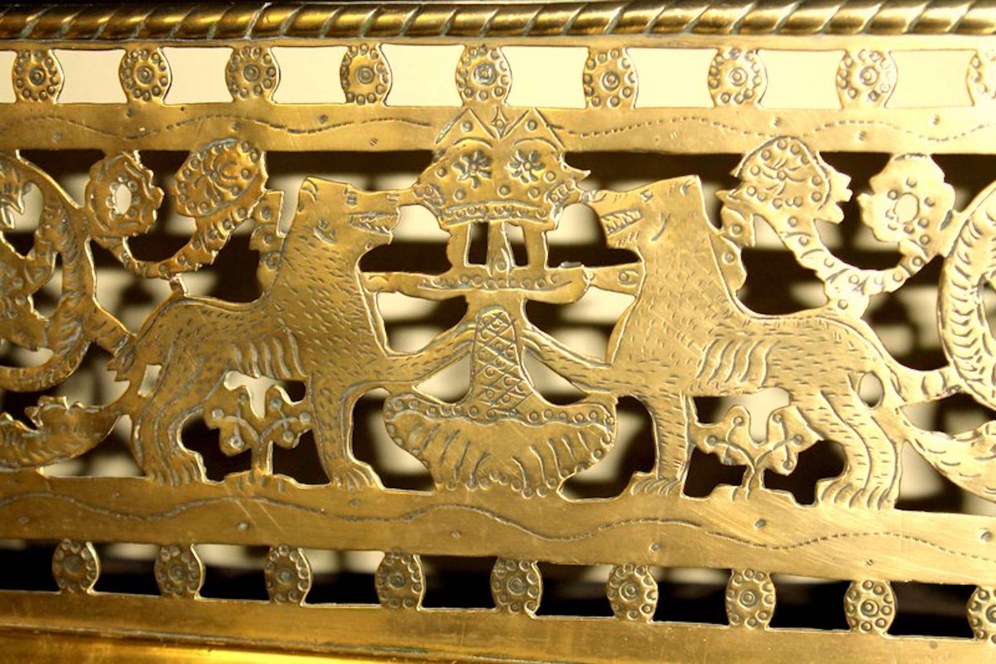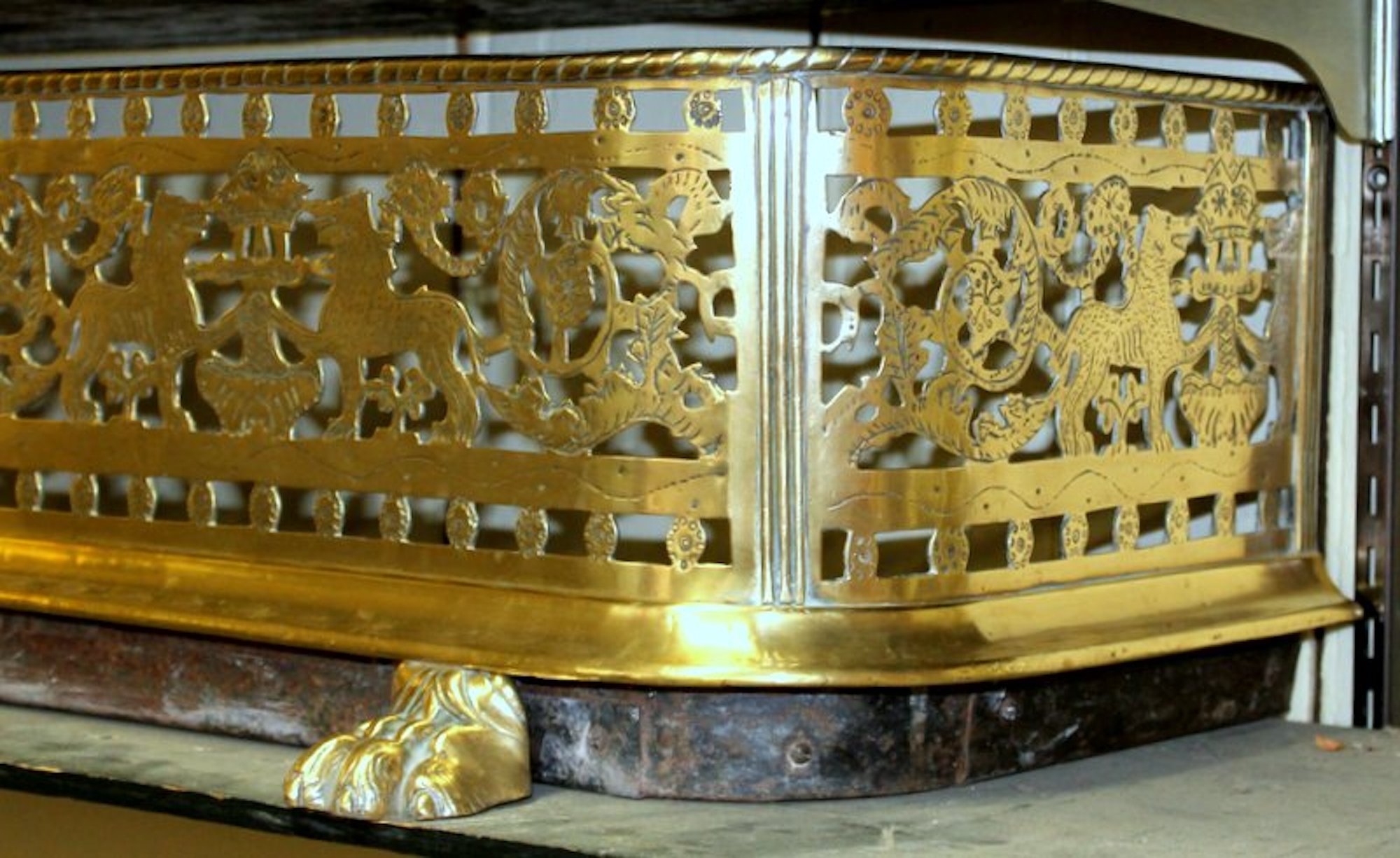 Finest Antique English George III Pierced and Engraved Brass Fireplace Fender