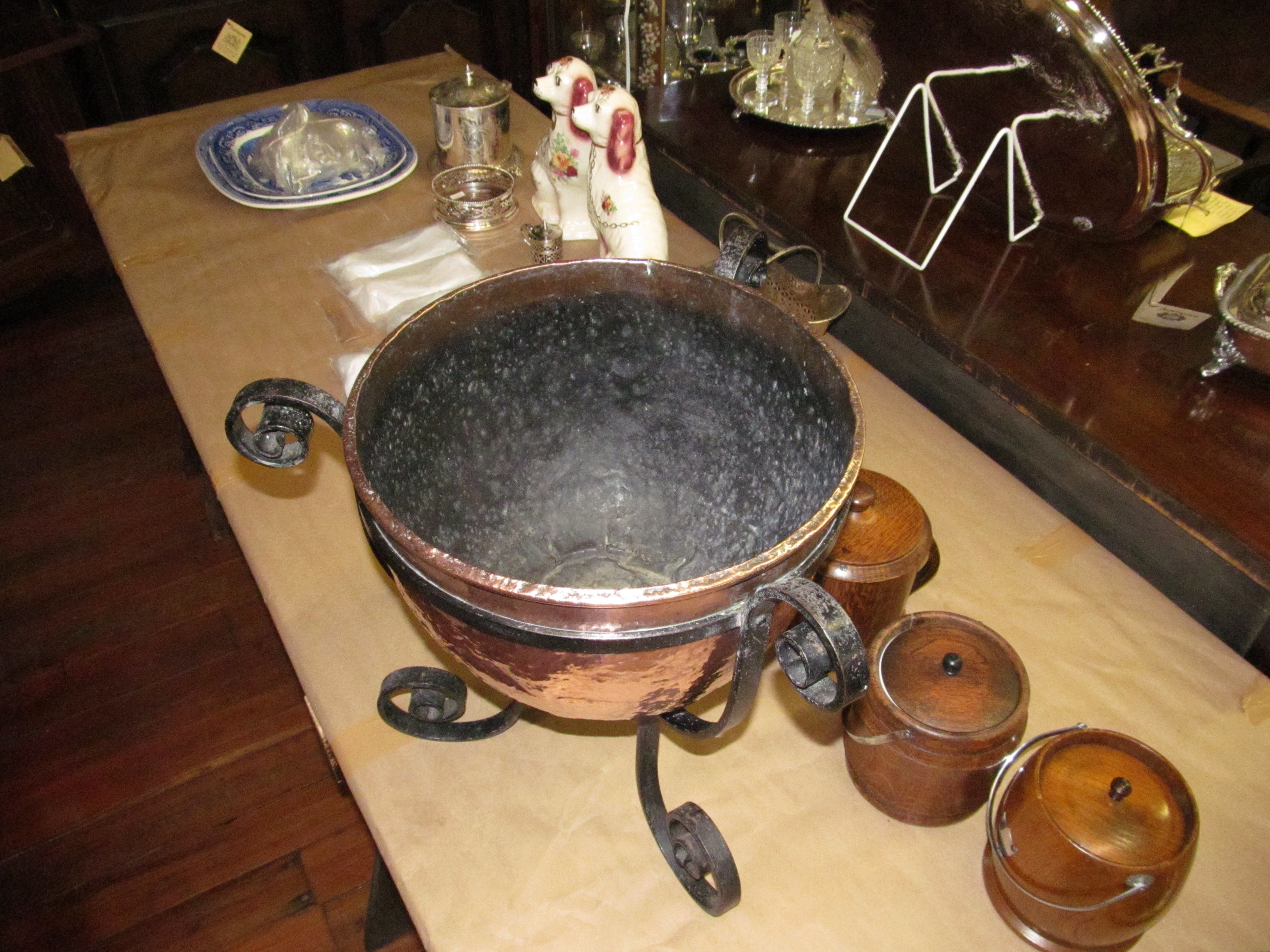 Rare Antique English Hand Wrought Iron and Copper Jardiniere.