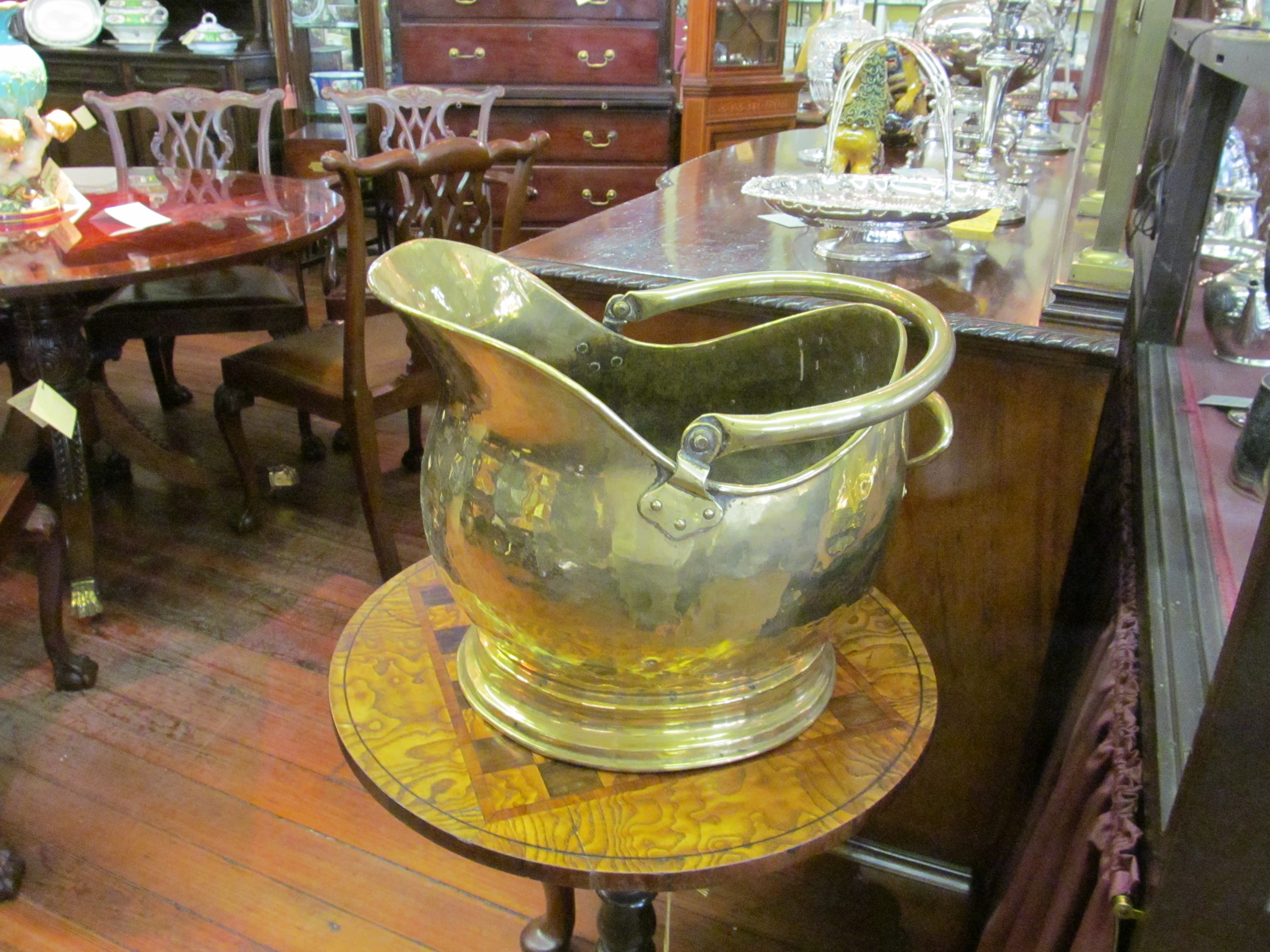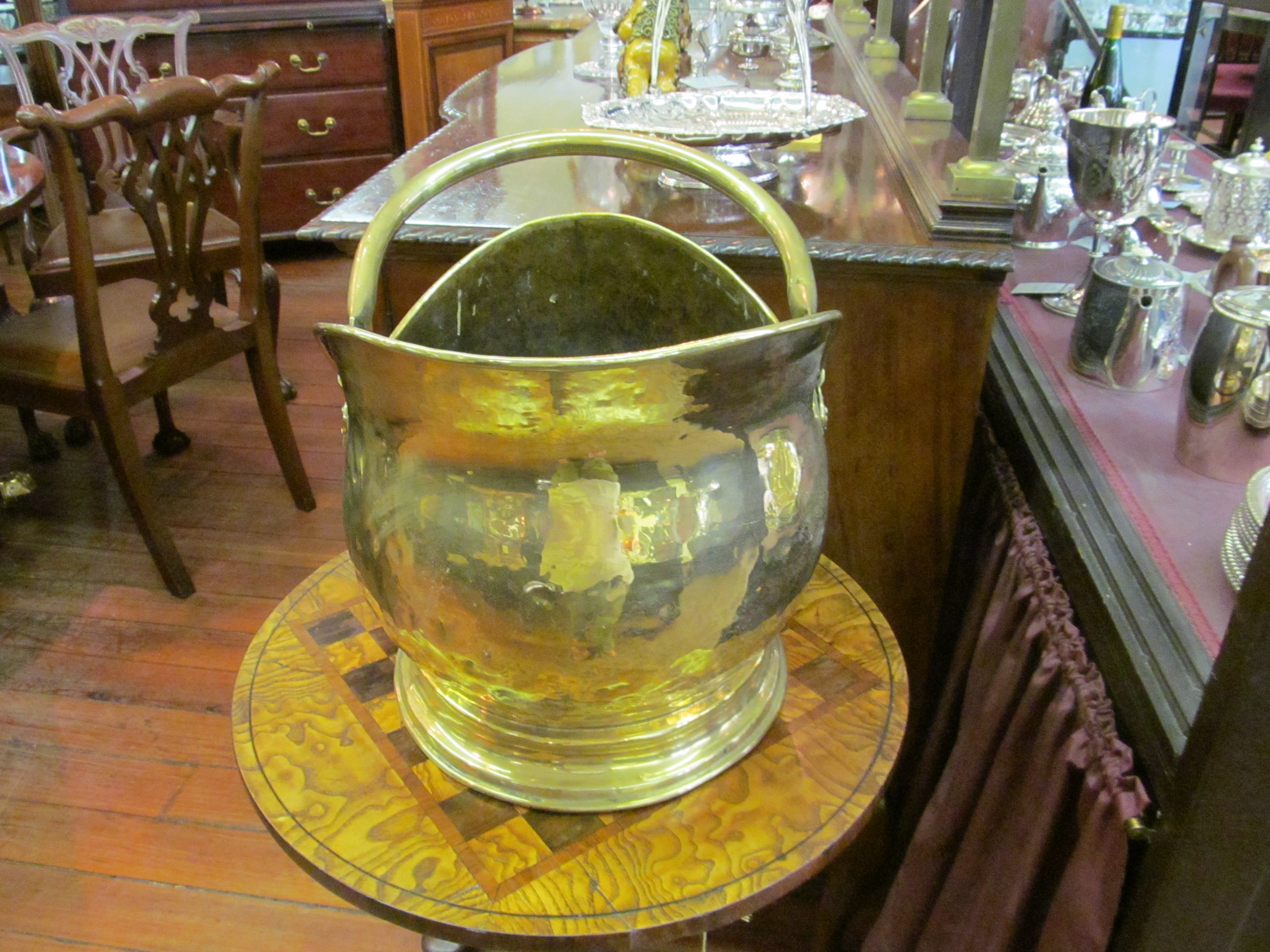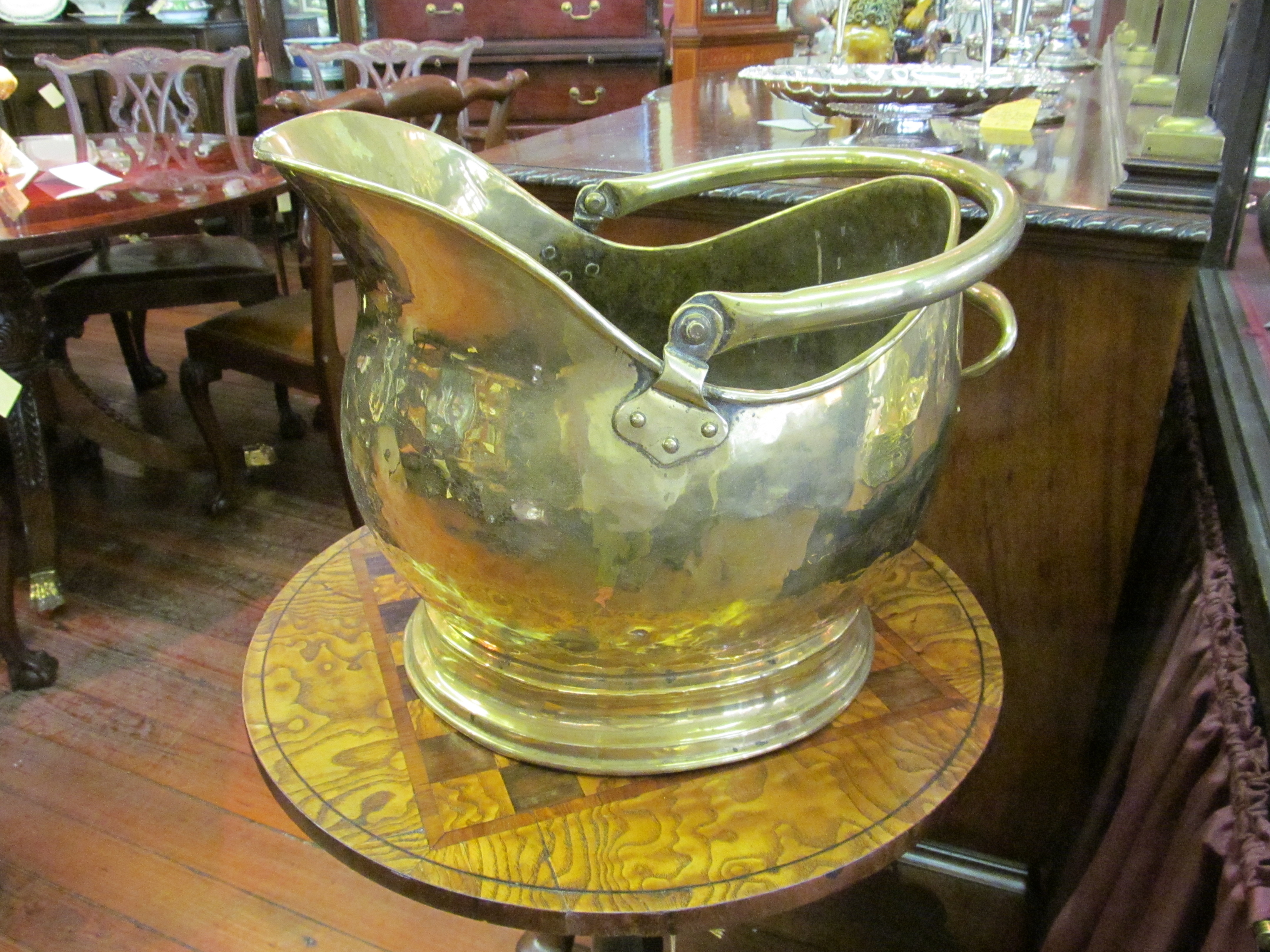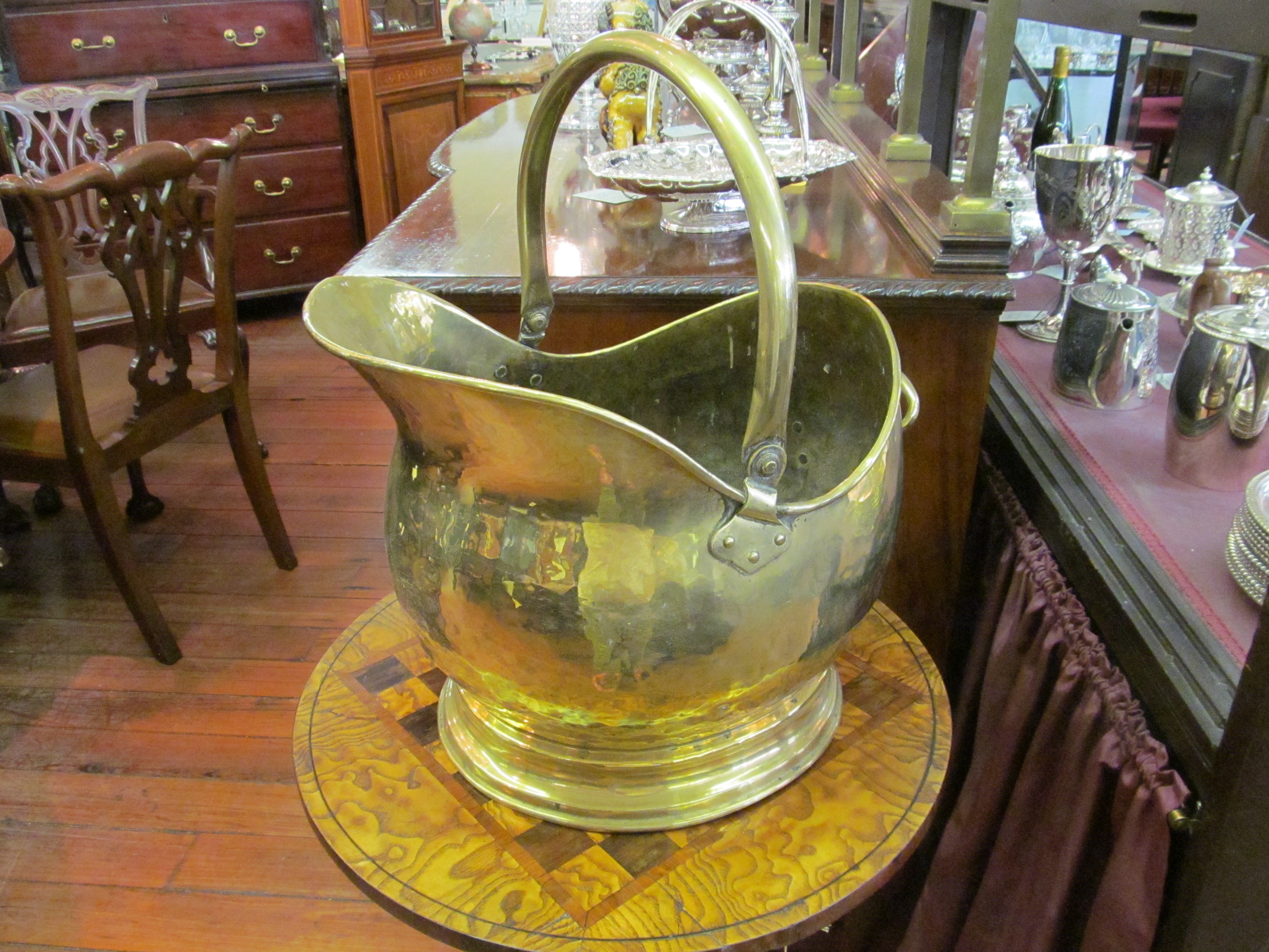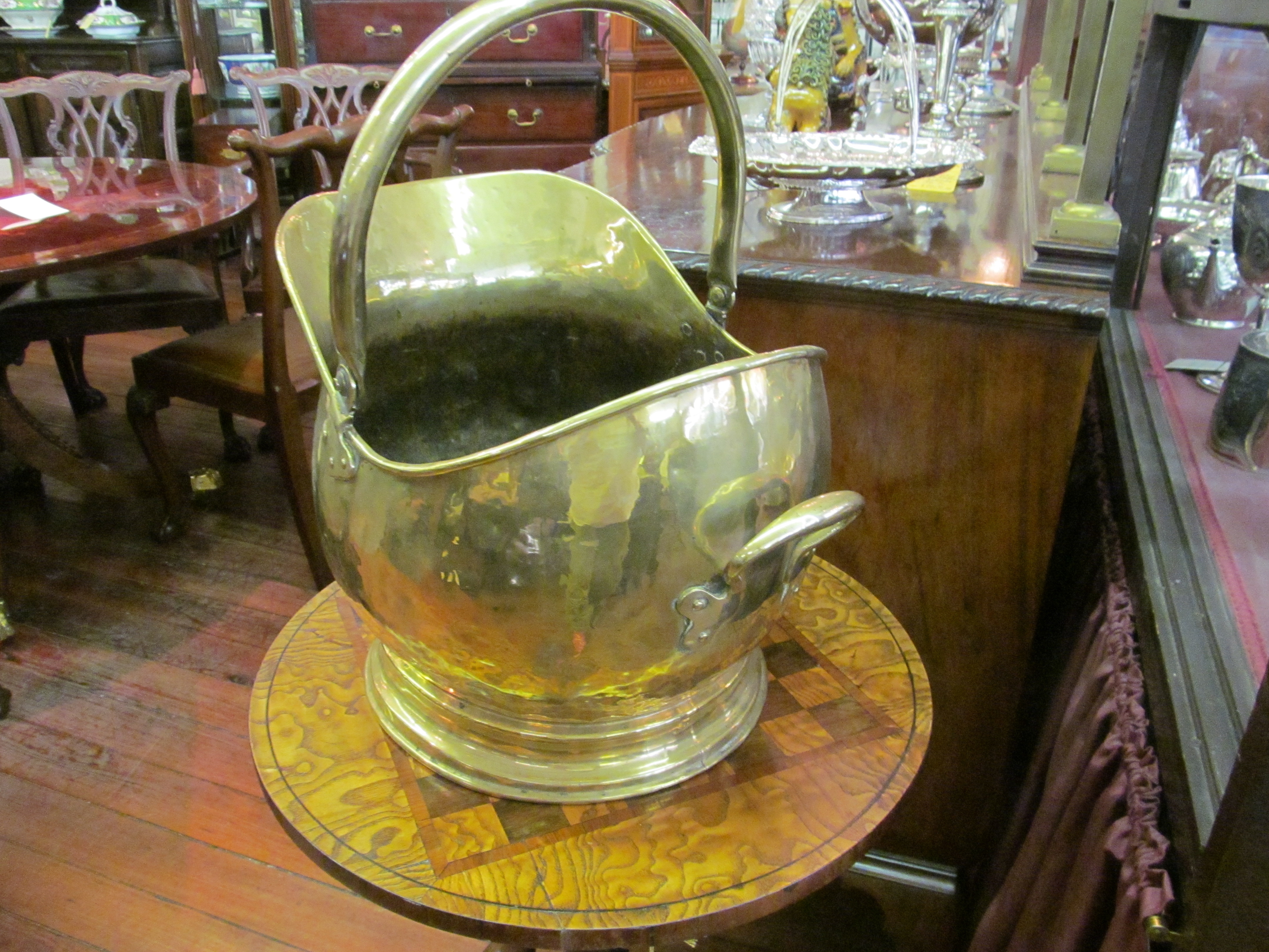 Fine Antique English Brass Helmet Shape Coal Scuttle.