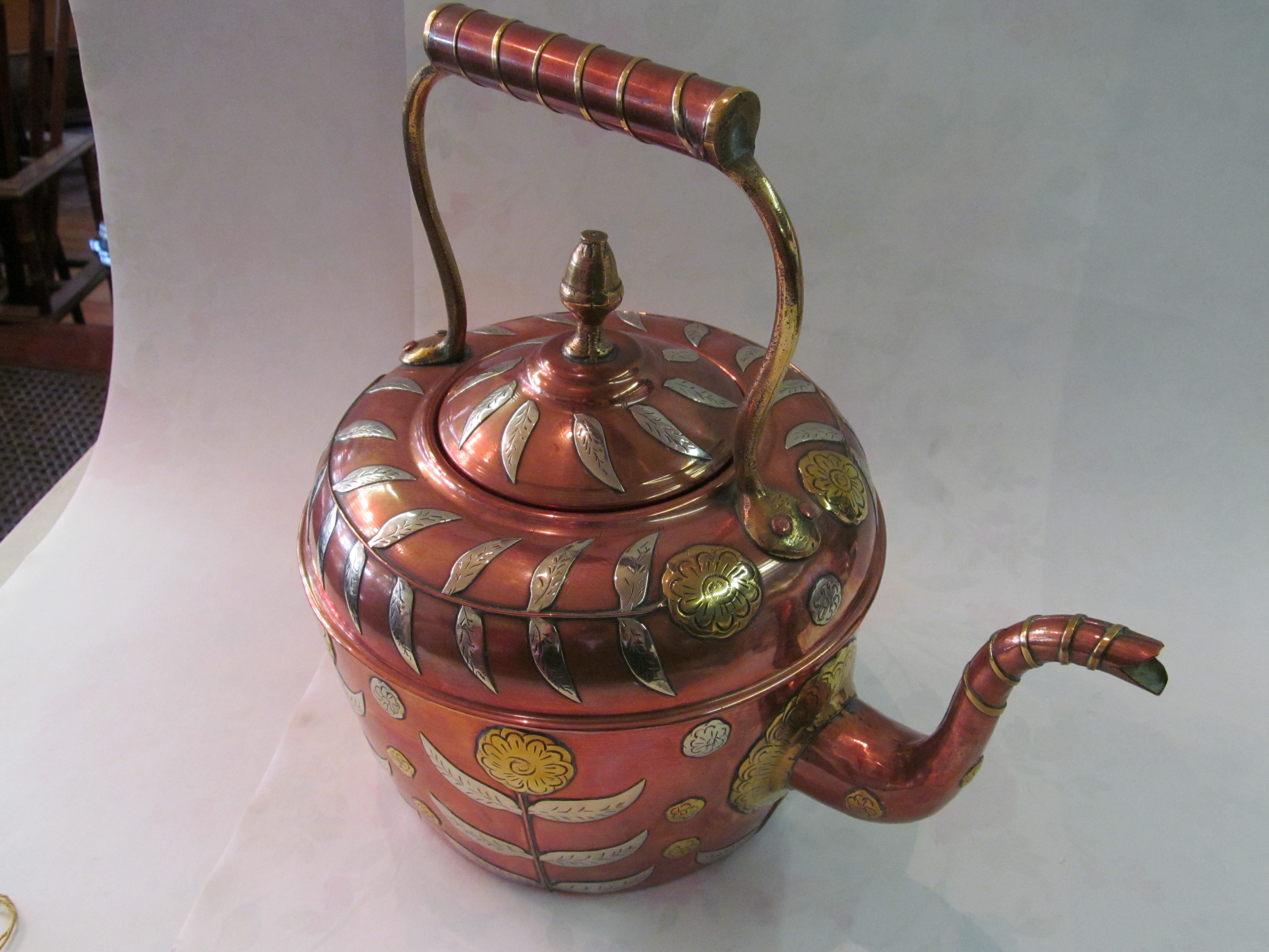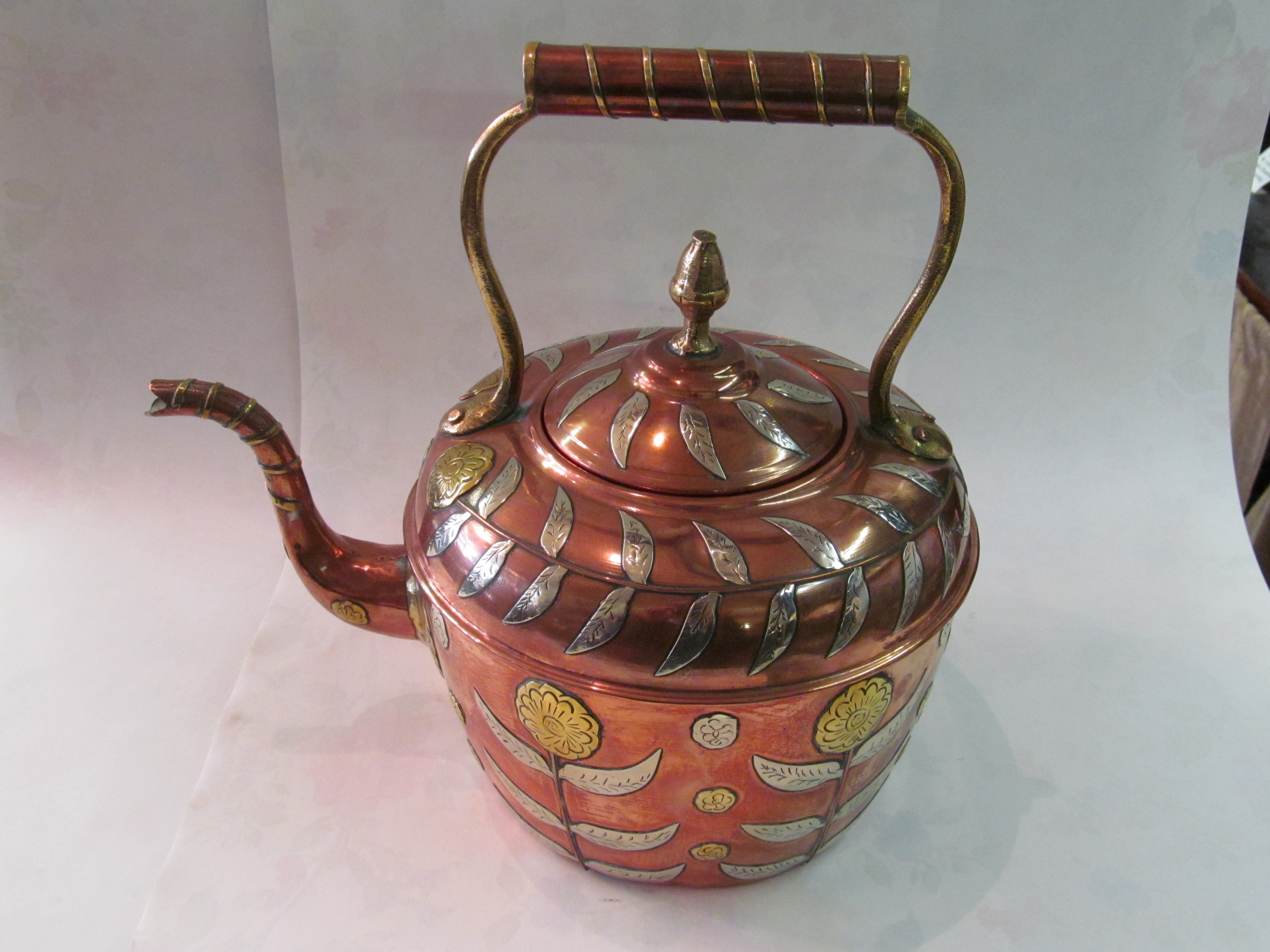 Very Rare English Mixed Metal Copper Tea Kettle.