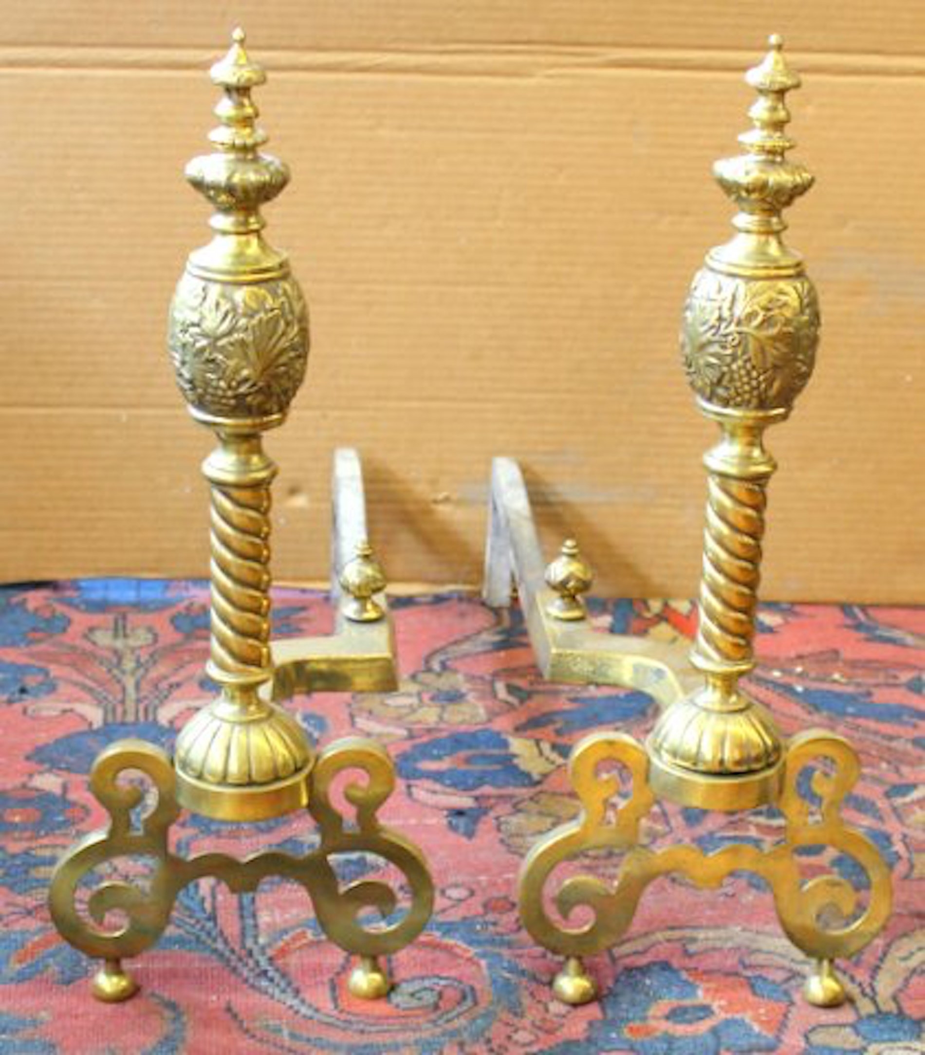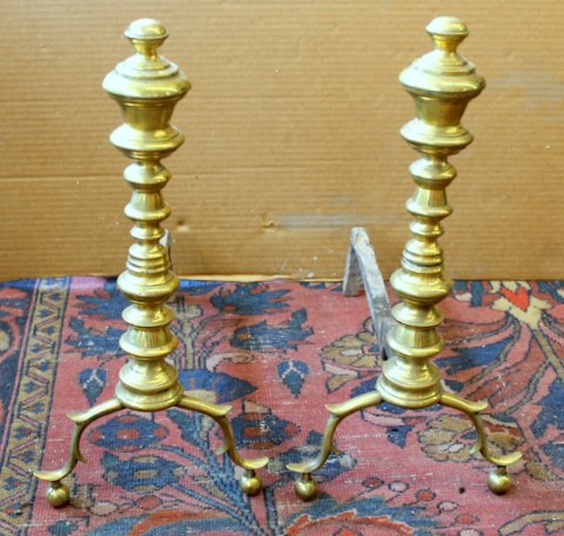 Fabulous PAIR of Early American Federal Style Brass Andirons