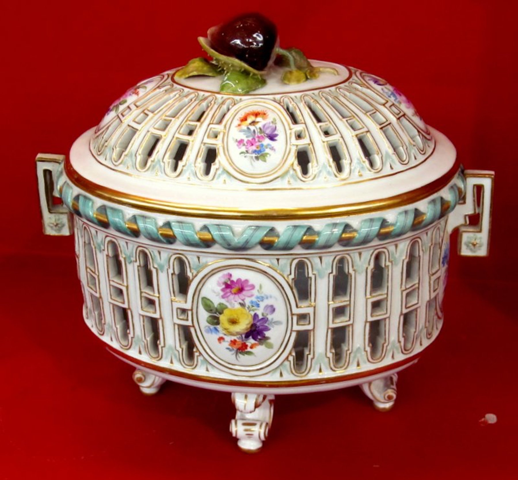 Antique Dresden/Meissen Porcelain Chestnut Basket or Tureen