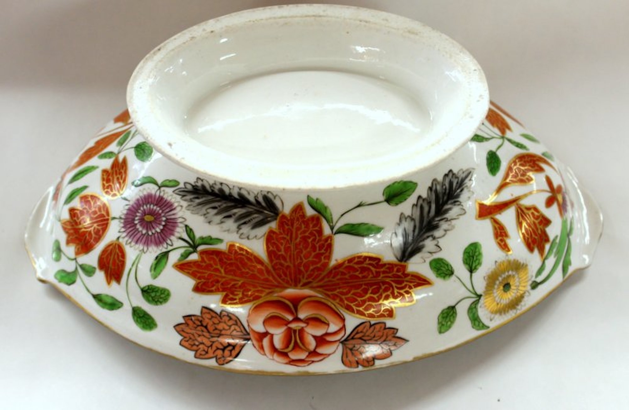 Please note fabulous hand painted floral decor inside and on underside exterior.