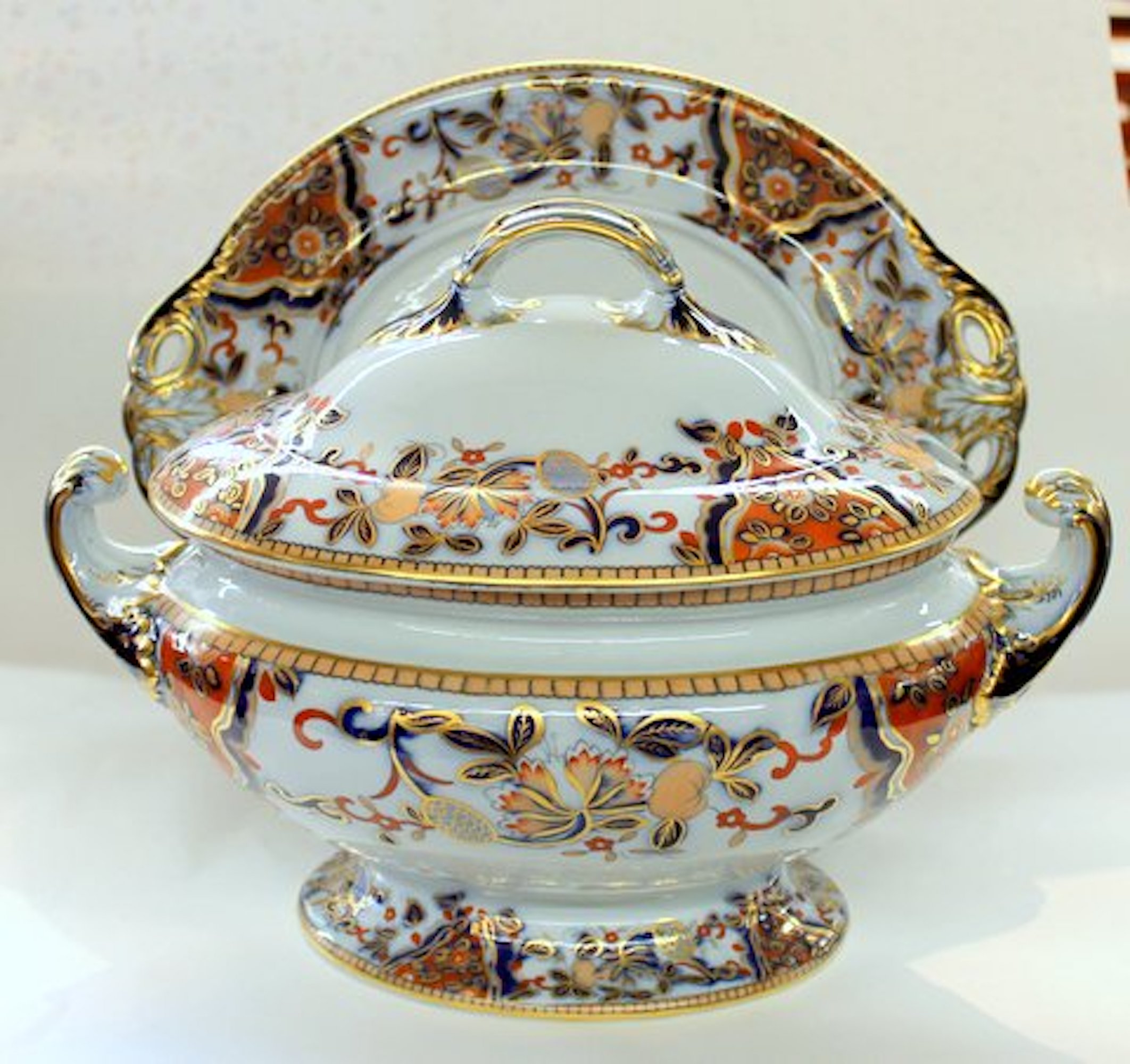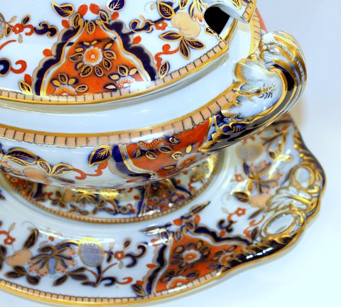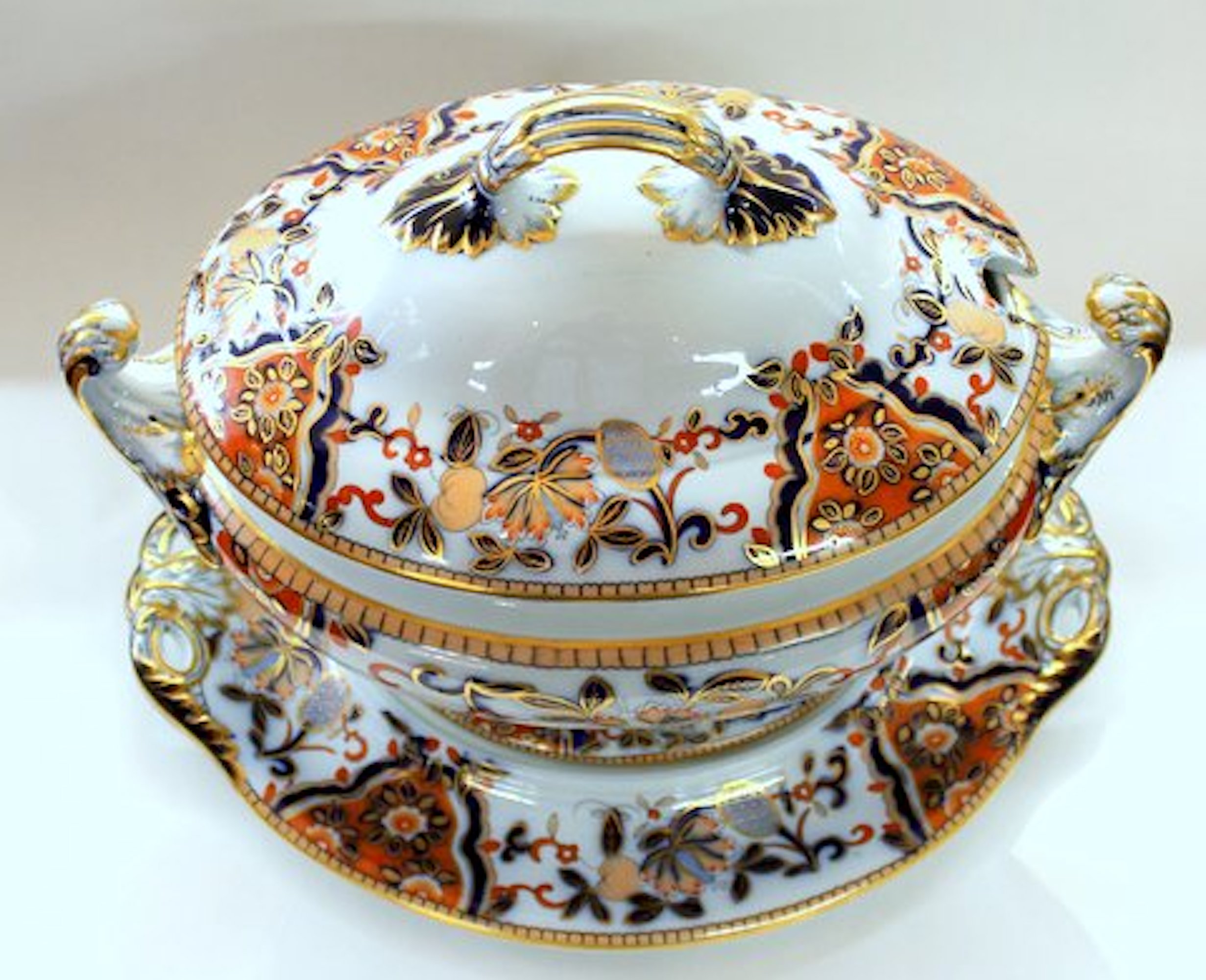Antique English Davenport Ironstone Hand Decorated Imari Soup Tureen and Stand
