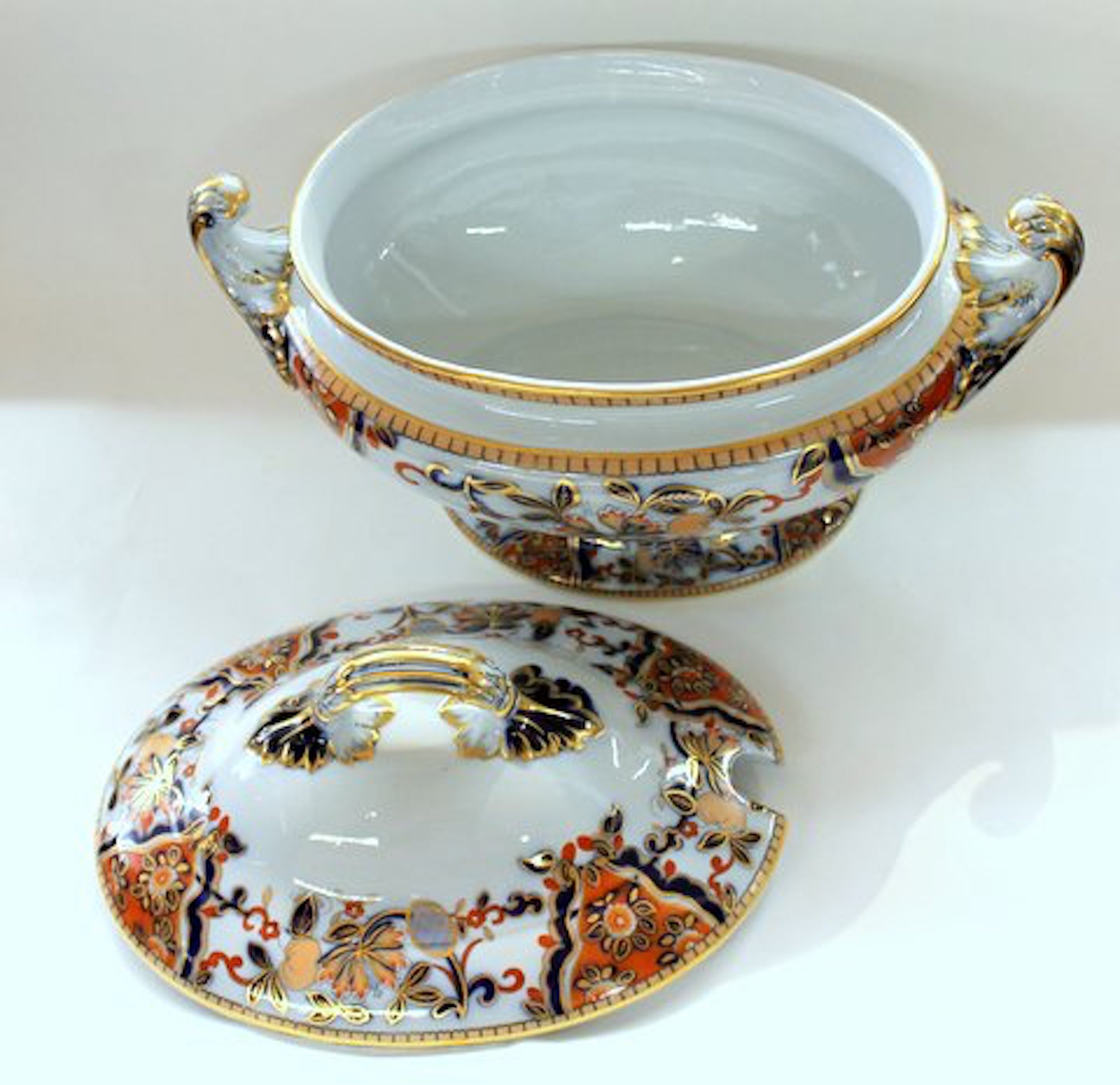 Antique English Davenport Ironstone Hand Decorated Imari Soup Tureen and Stand - Image 2