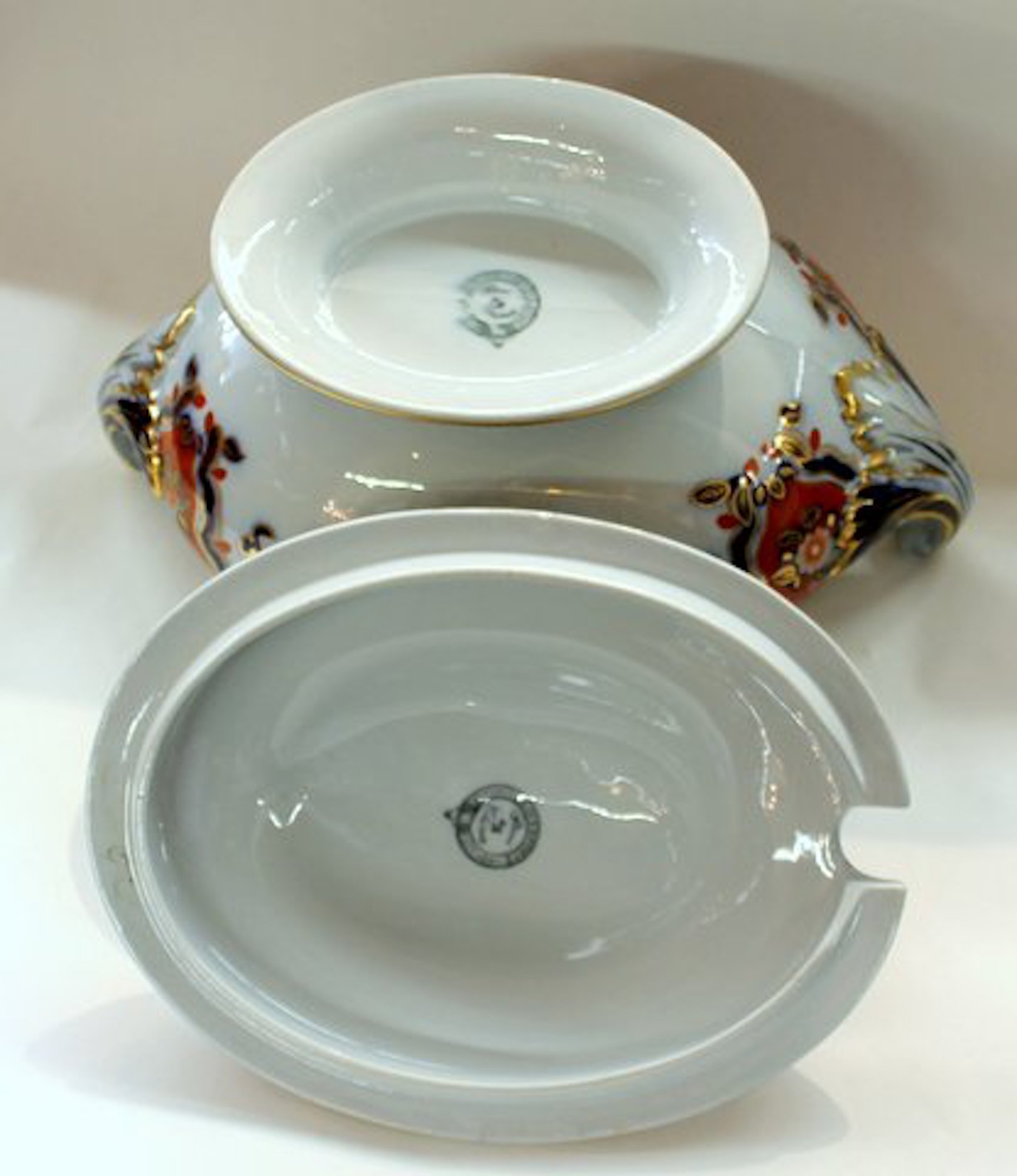 Exceptional Quality Antique English Davenport Ironstone Hand Decorated Imari Soup Tureen and Stand with Rare Printed Mark