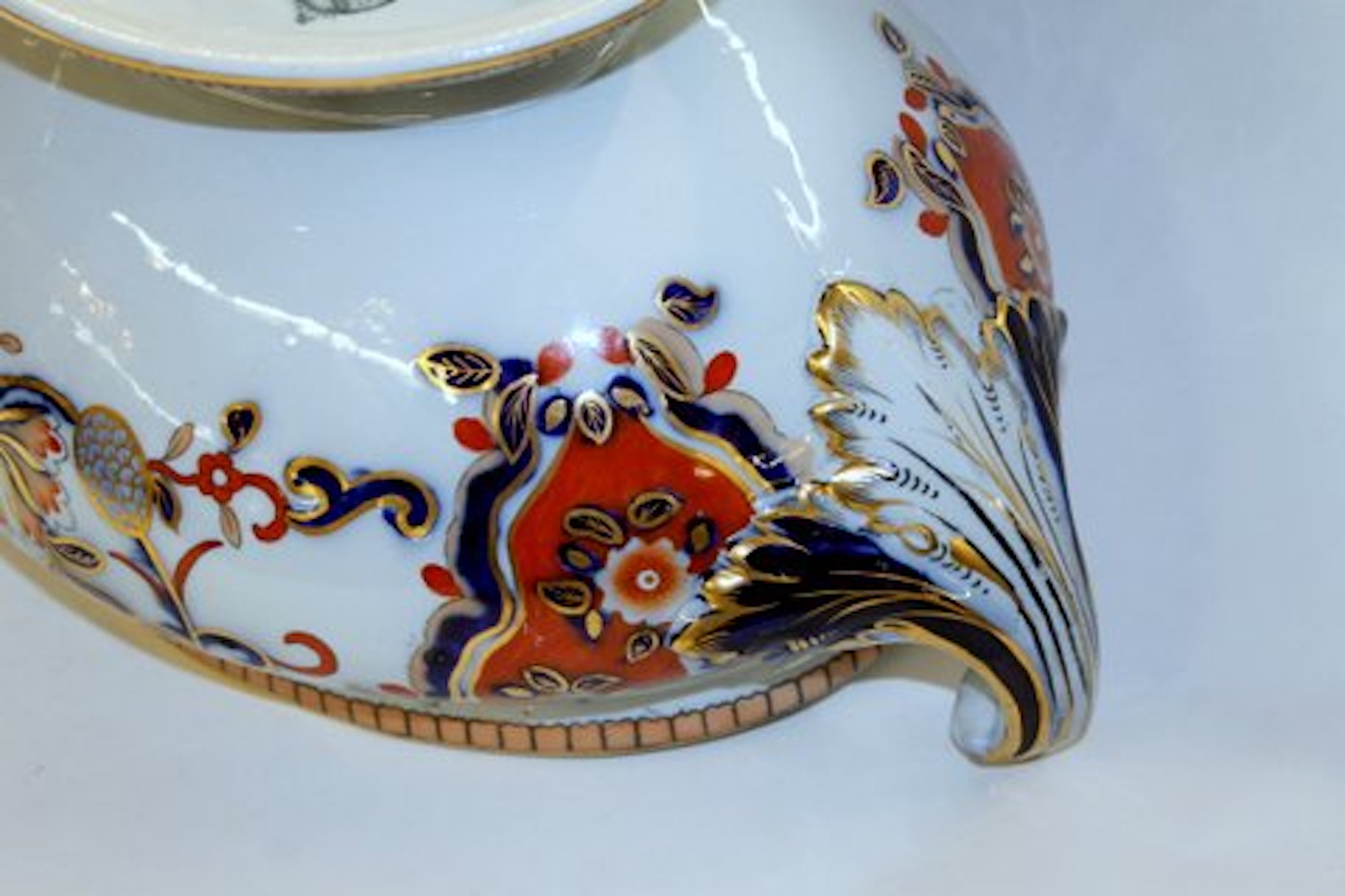 Antique English Davenport Ironstone Hand Decorated Imari Soup Tureen and Stand - Image 4