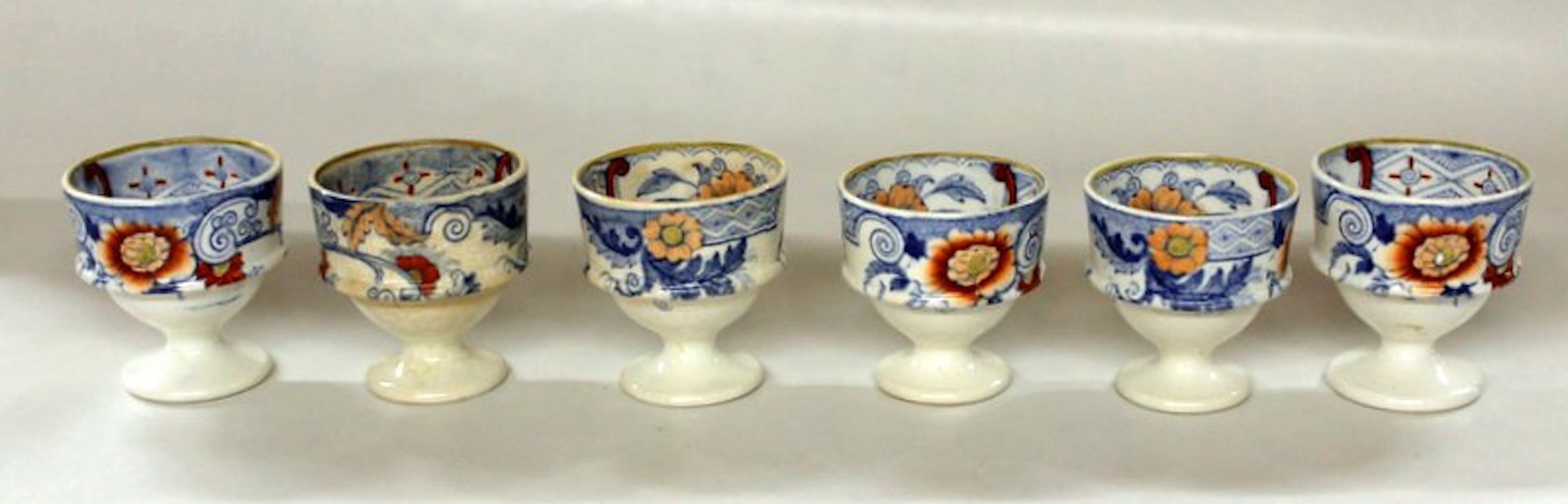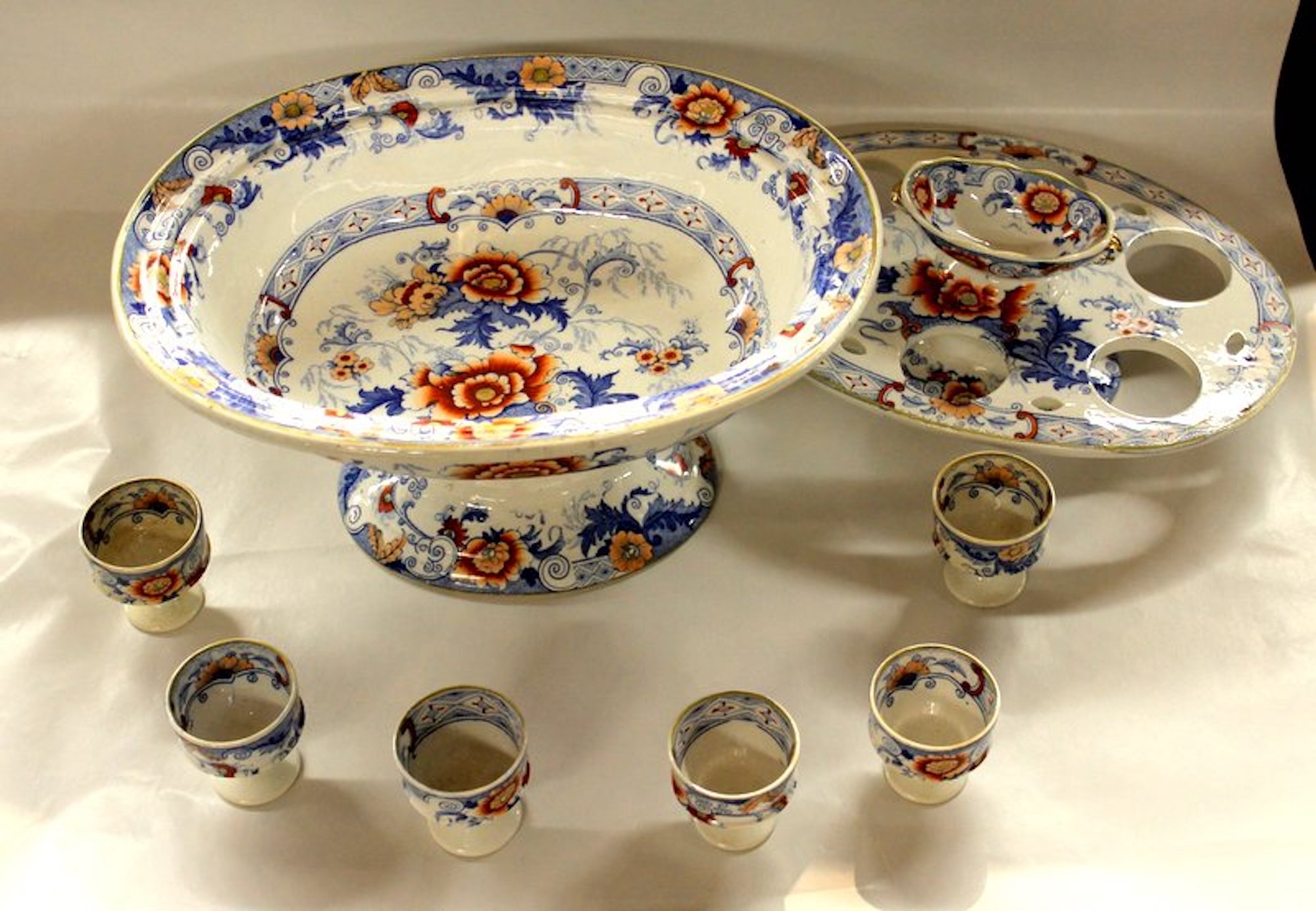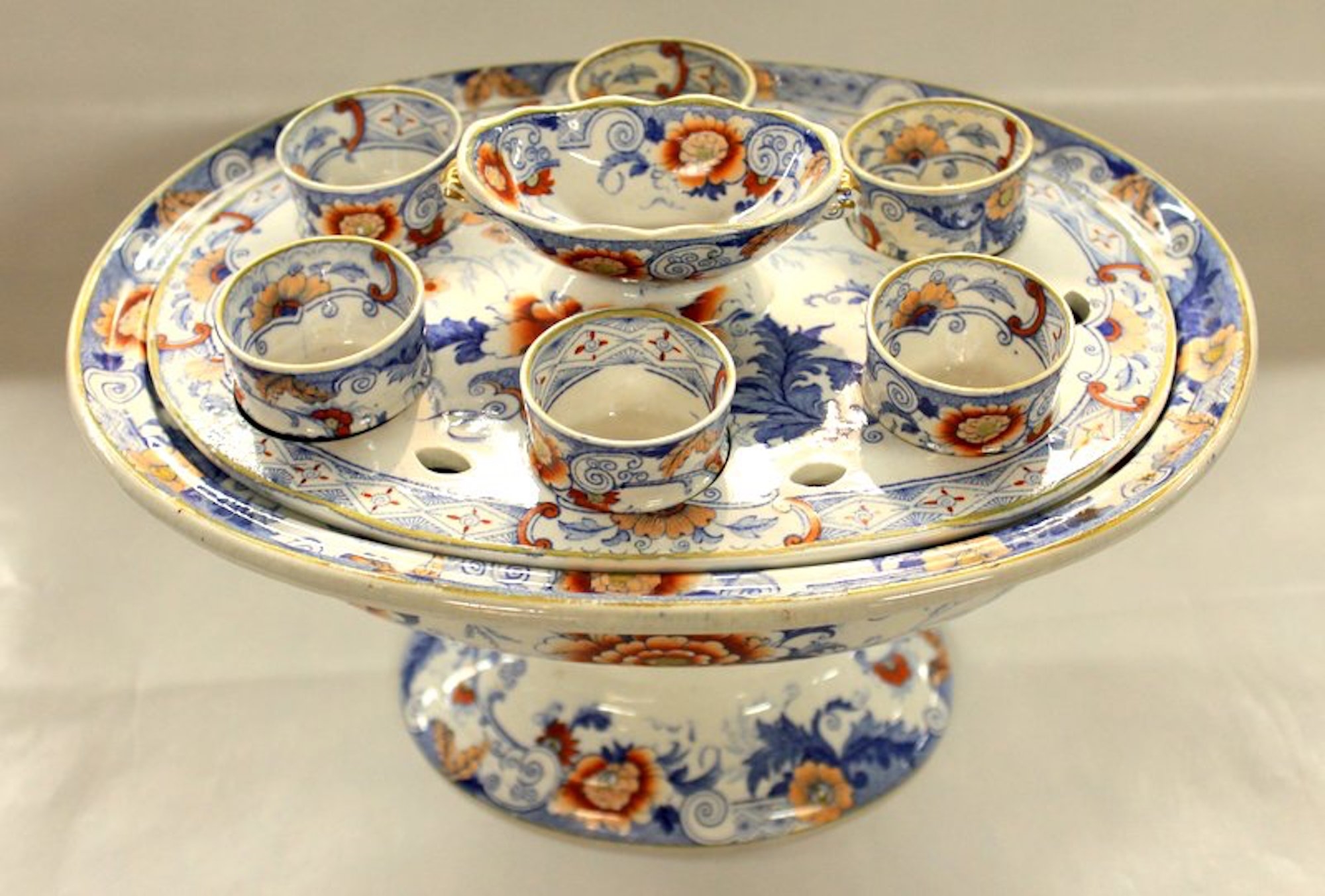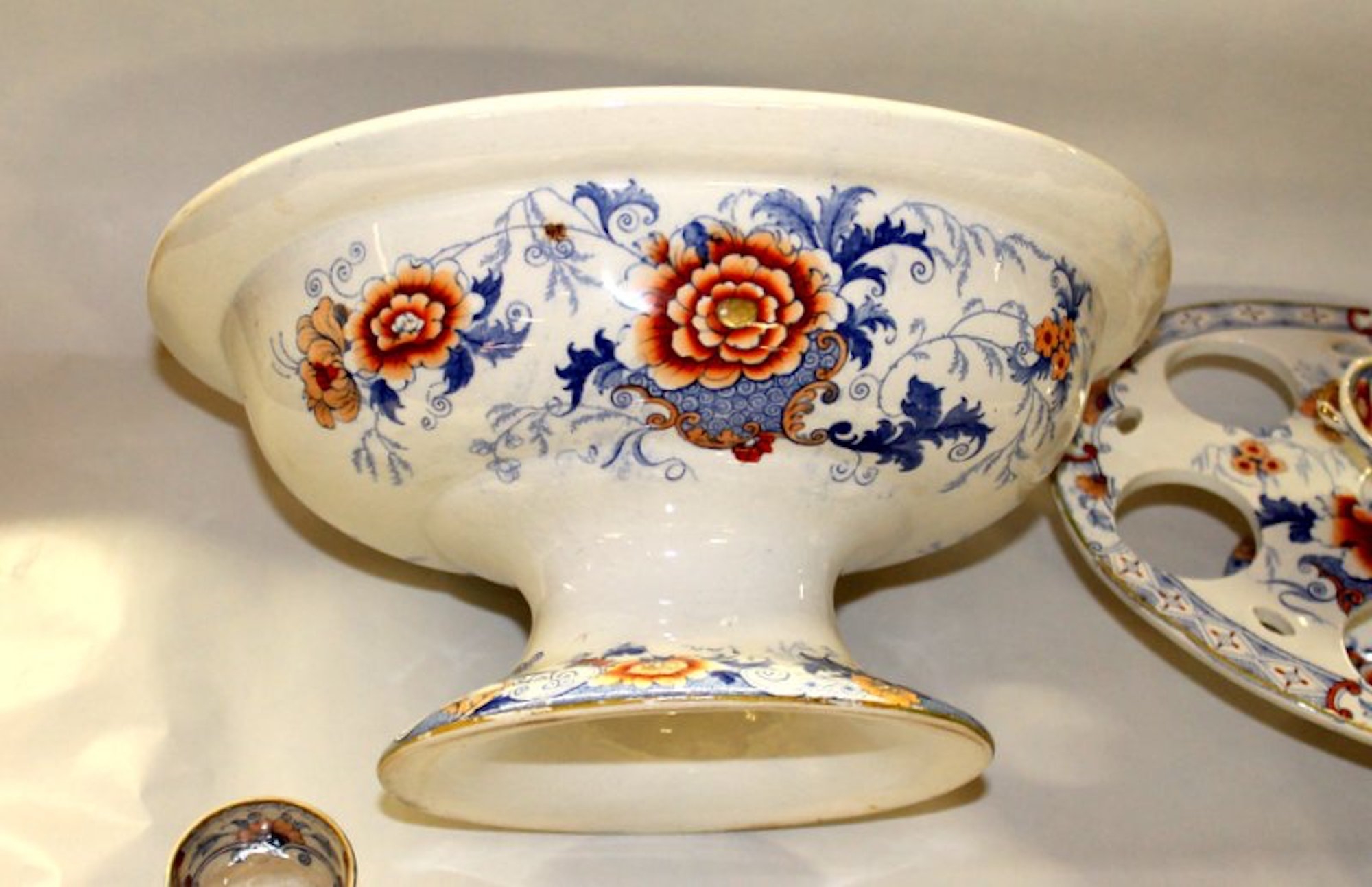 Fabulous Quality Rare and Important Antique English Earthenware or Ironstone Imari Decor Six-Cup Egg Cruet on Stand