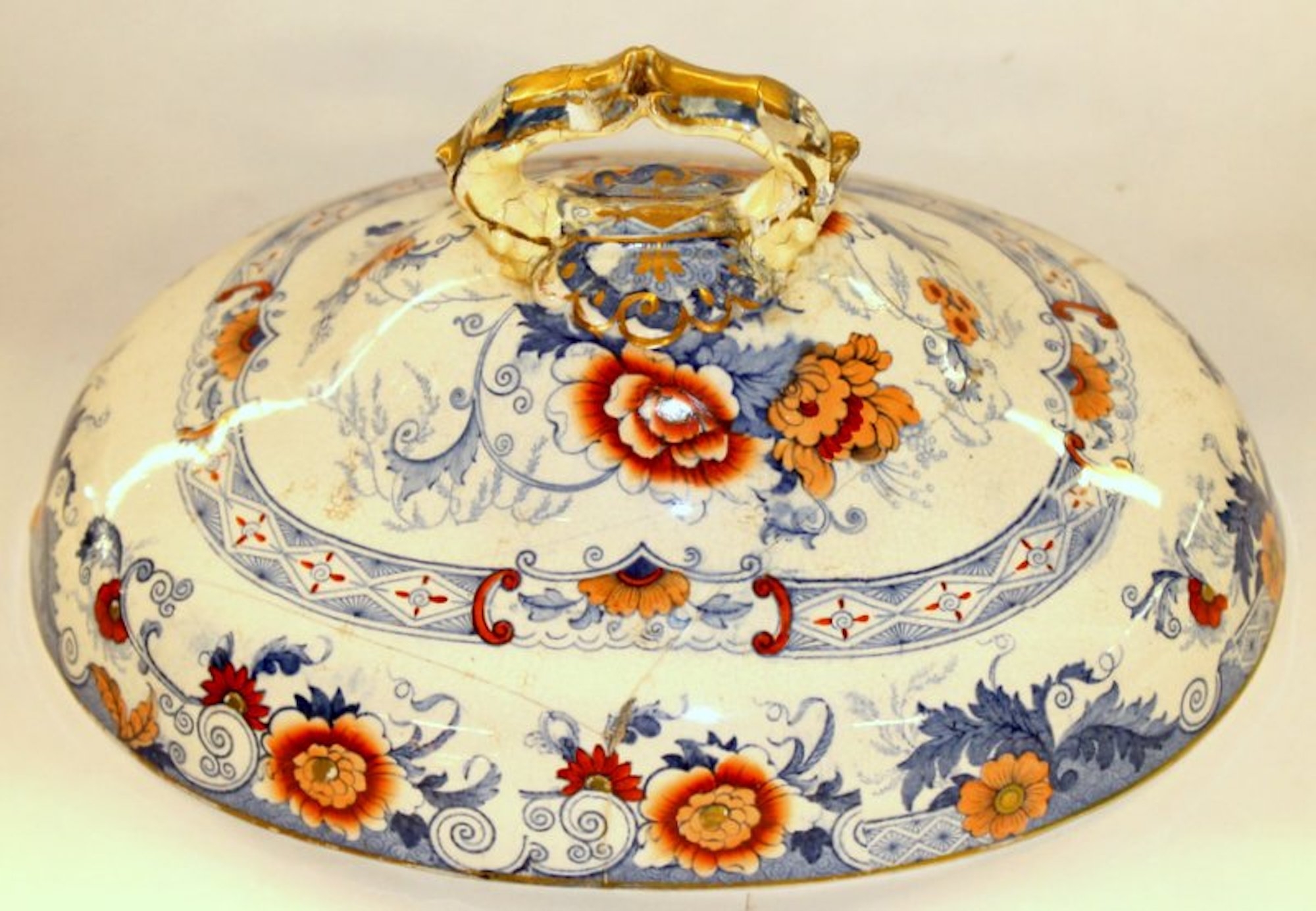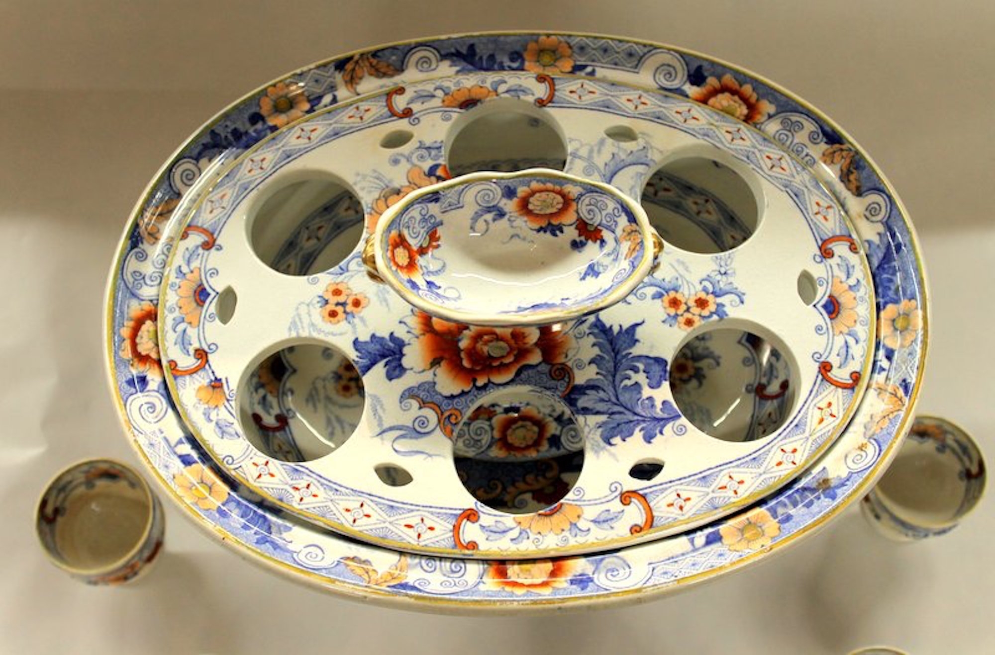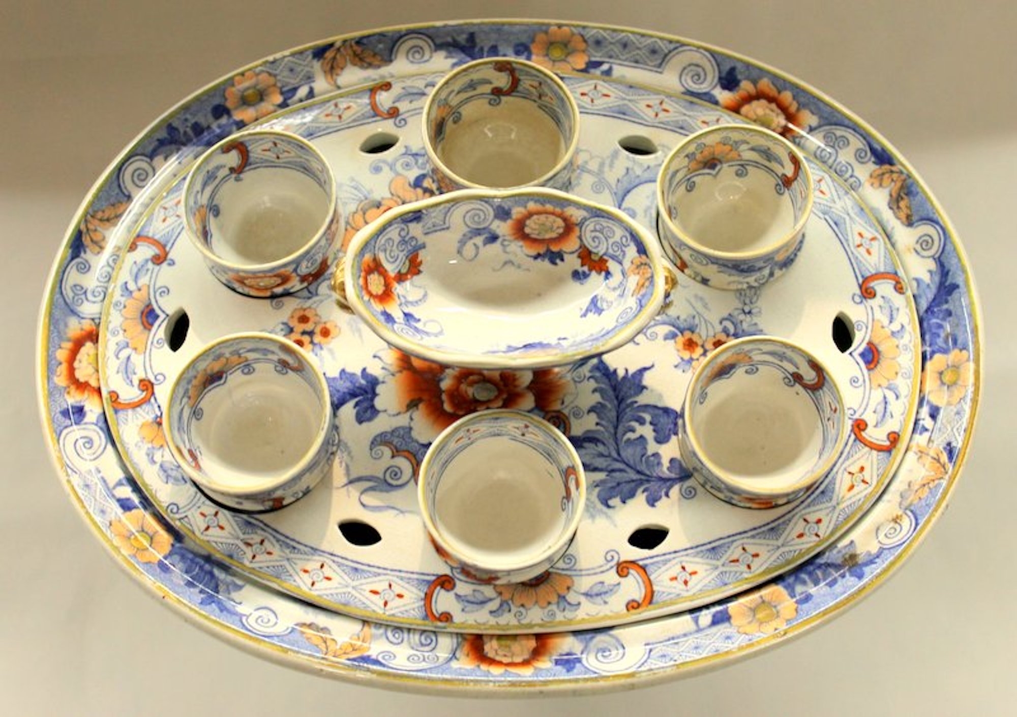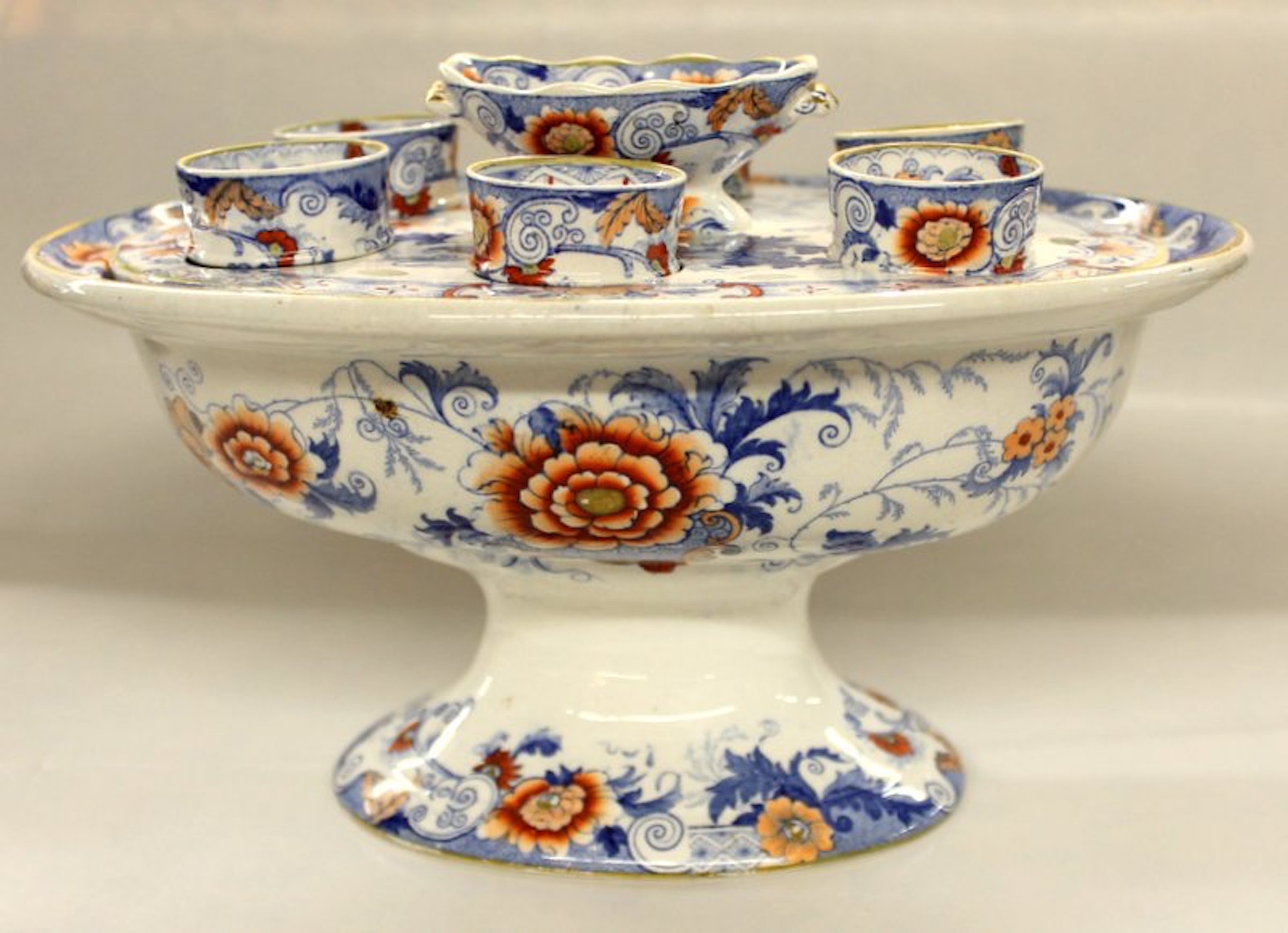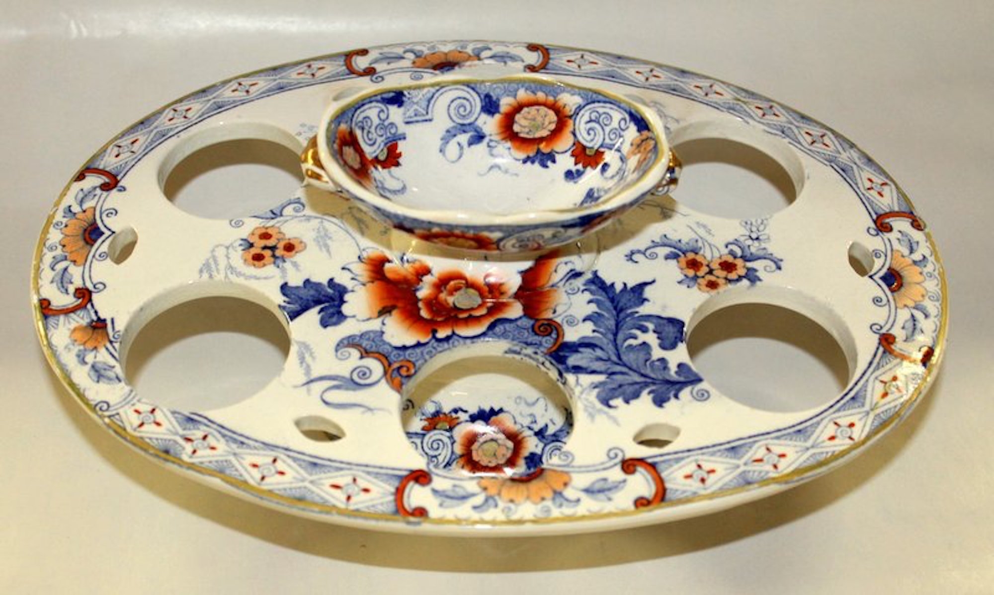 Fabulous Quality Rare and Important Antique English Earthenware or Ironstone Imari Decor Six-Cup Egg Cruet on Stand