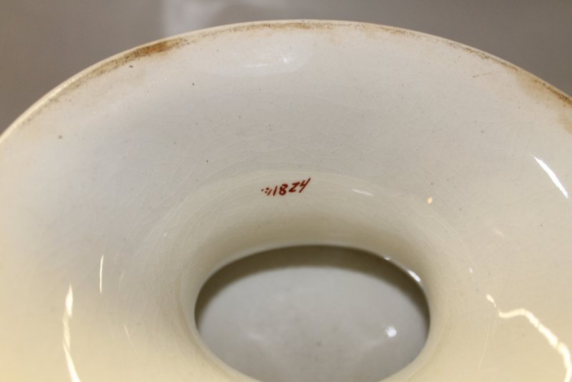 There is some crazing to two of the cups otherwise the condition is nearly pristine. ( The original lid is available, however the lid has been broken and professionally mended years ago the price is commensurate to the set without the lid. ) Please also note the oval footed open salt cellar which is affixed to the stand. The six original egg spoons are missing but could be easily replaced with six demitasse spoons.