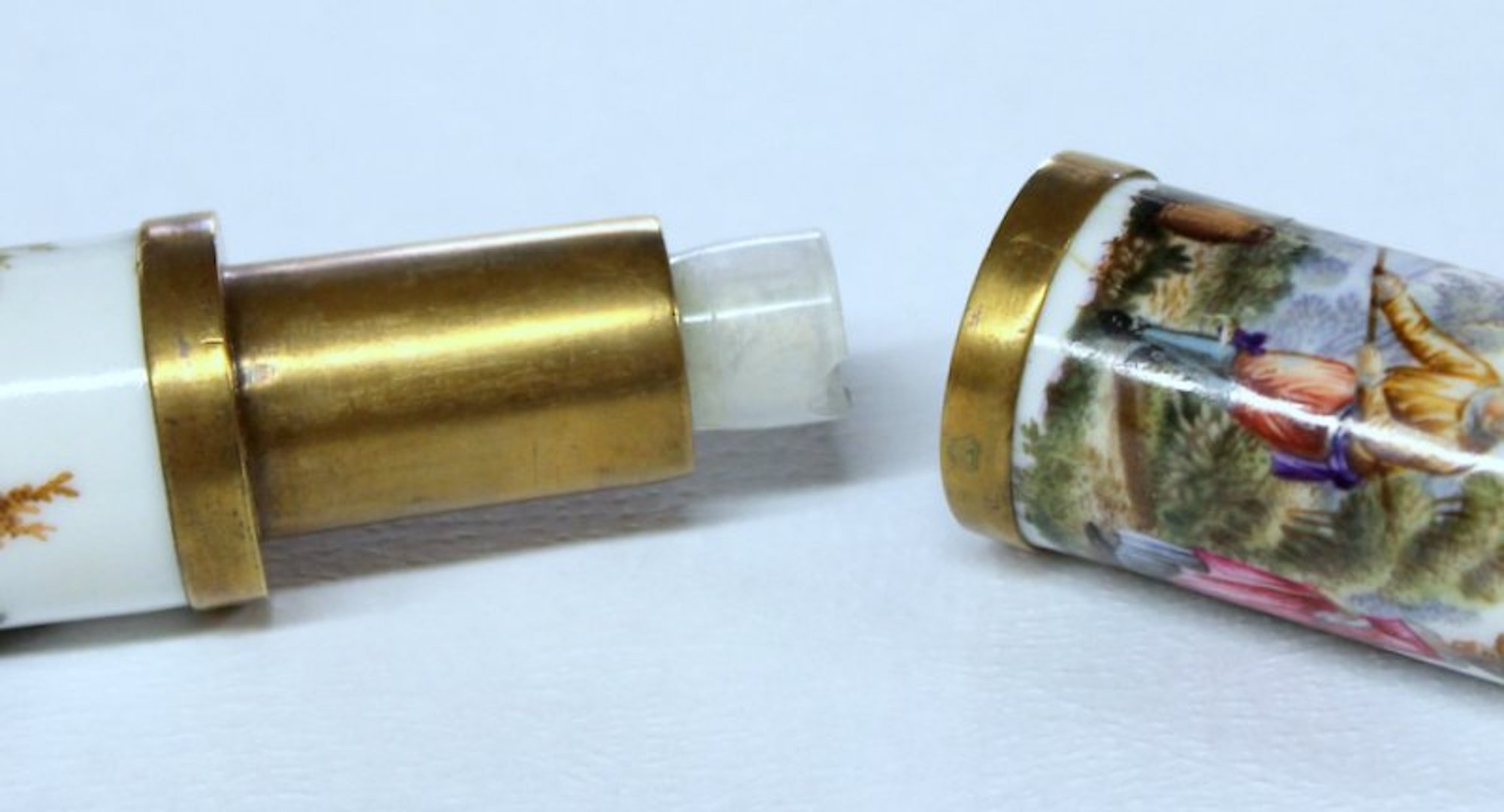 You are here: Home / Personal Accessories / Antique English Hand Painted Porcelain Bodkin or Billet-Doux Case