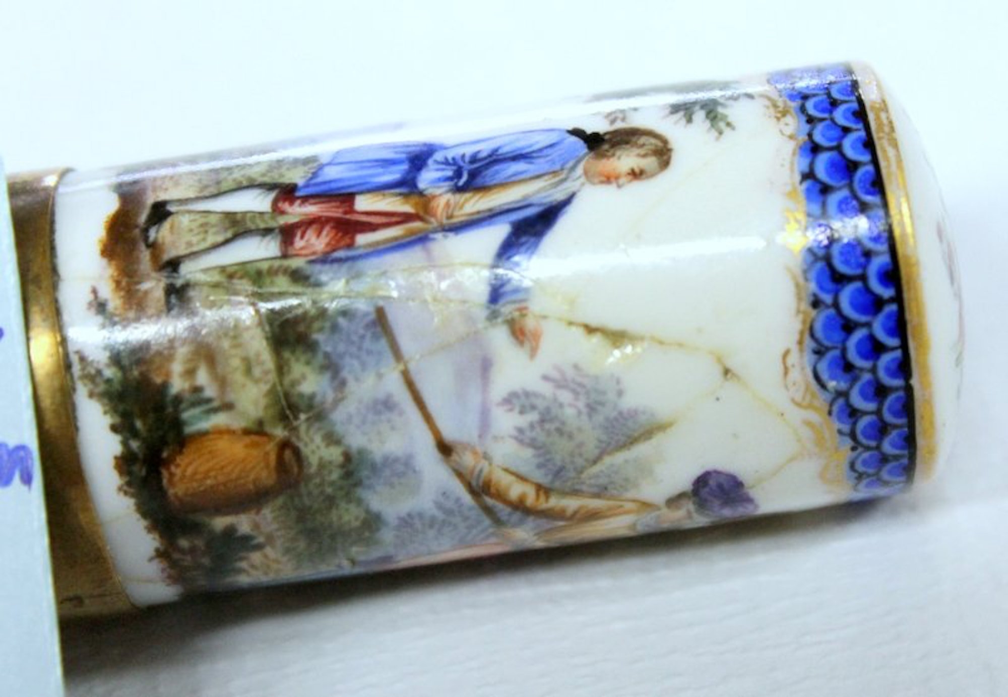 Antique English Hand Painted Porcelain Bodkin or Billet-Doux Case - Image 10
