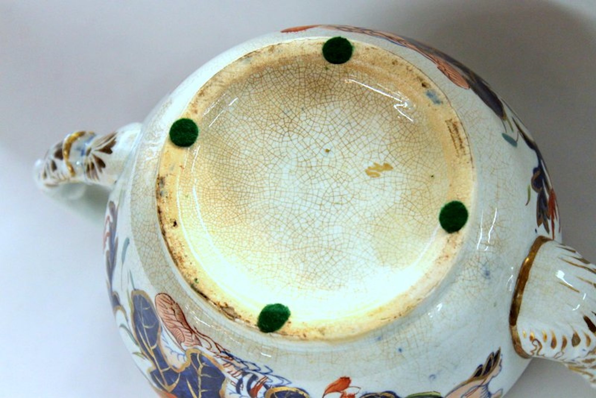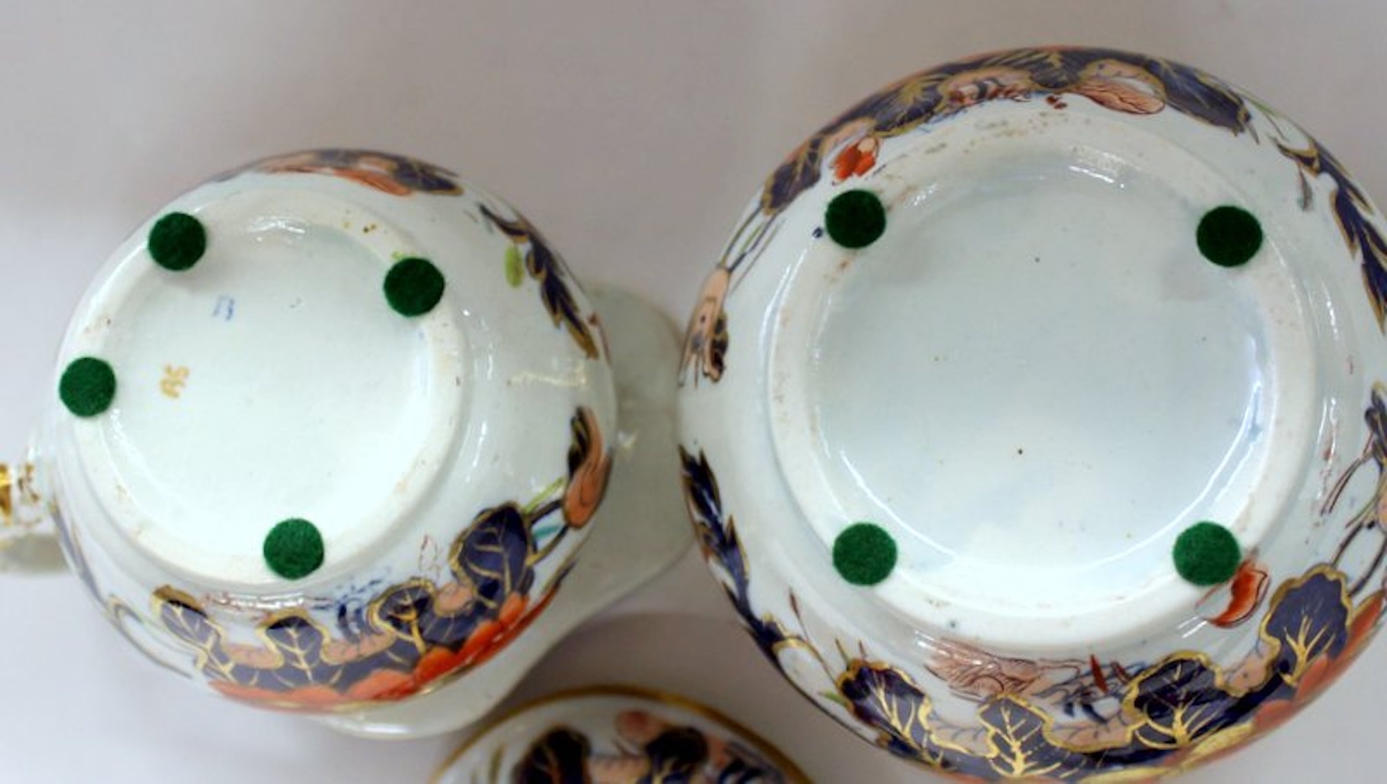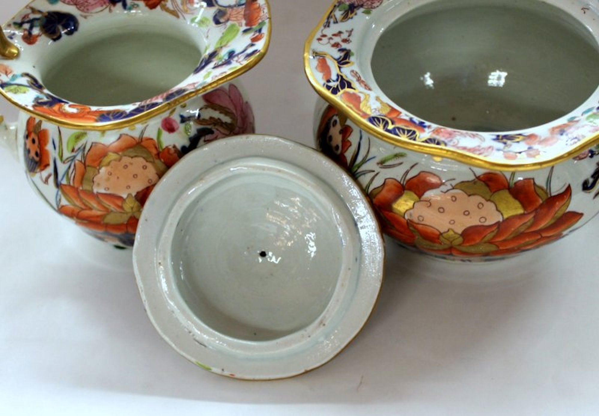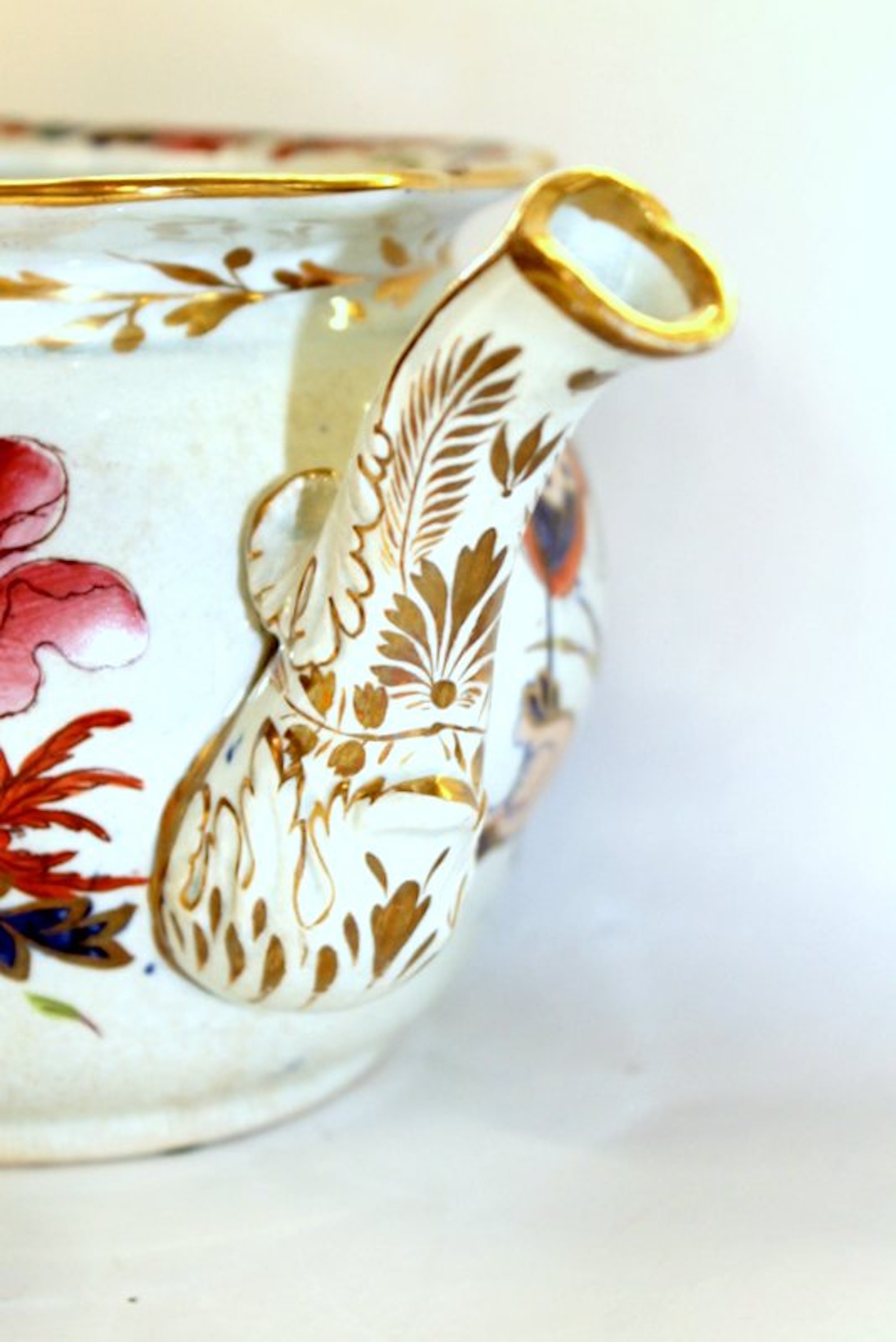 Rare and Important Antique English Mason’s Ironstone “Water Lily” Pattern Four Piece Tea Set including teapot, covered sugar, cream jug and waste bowl.