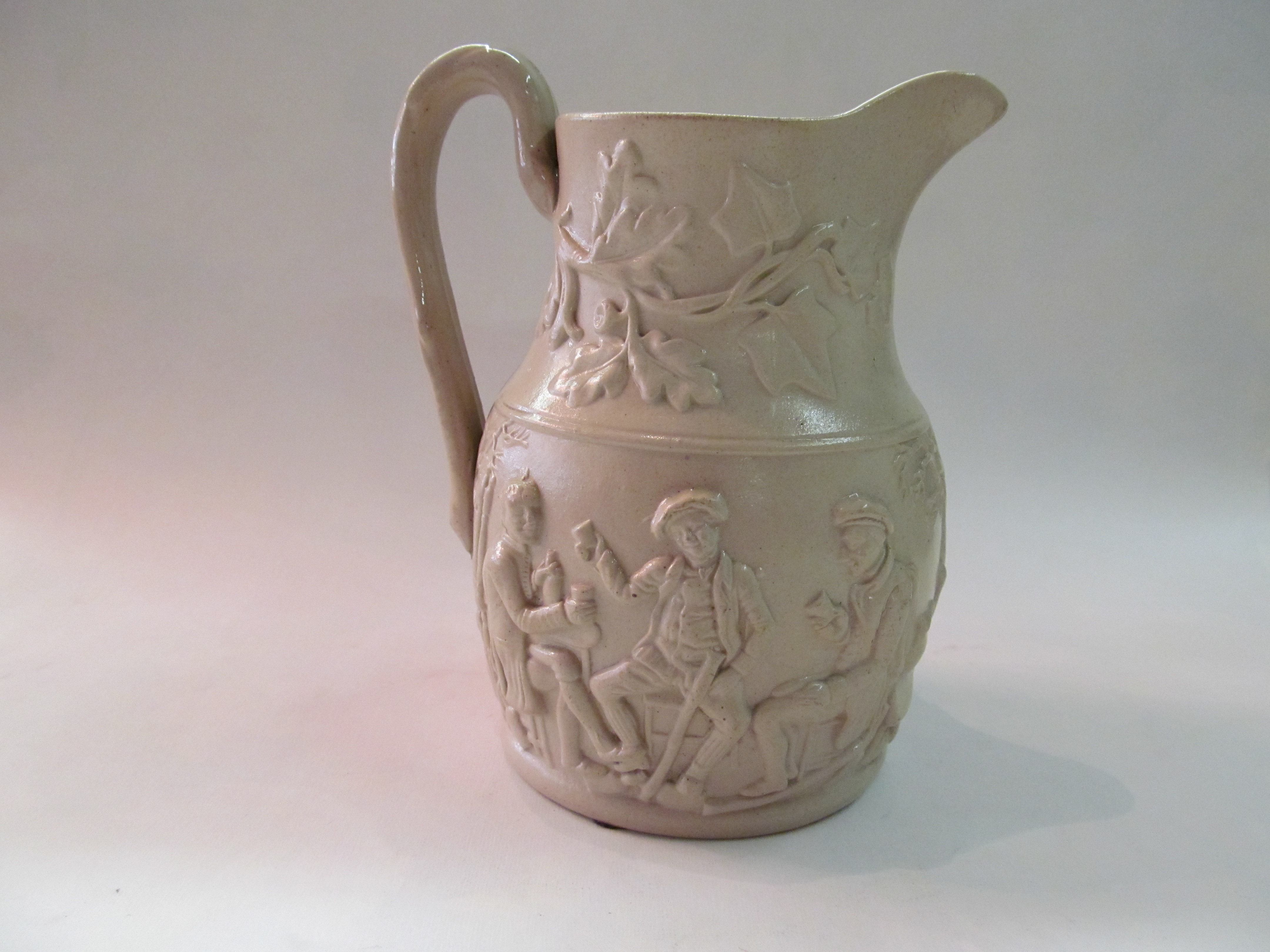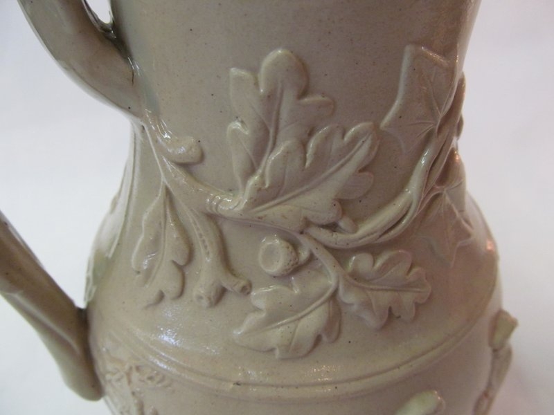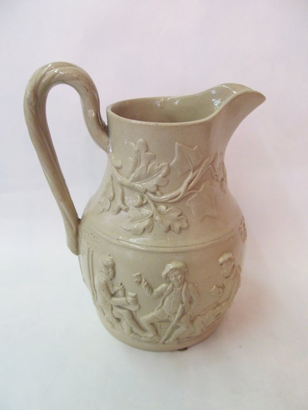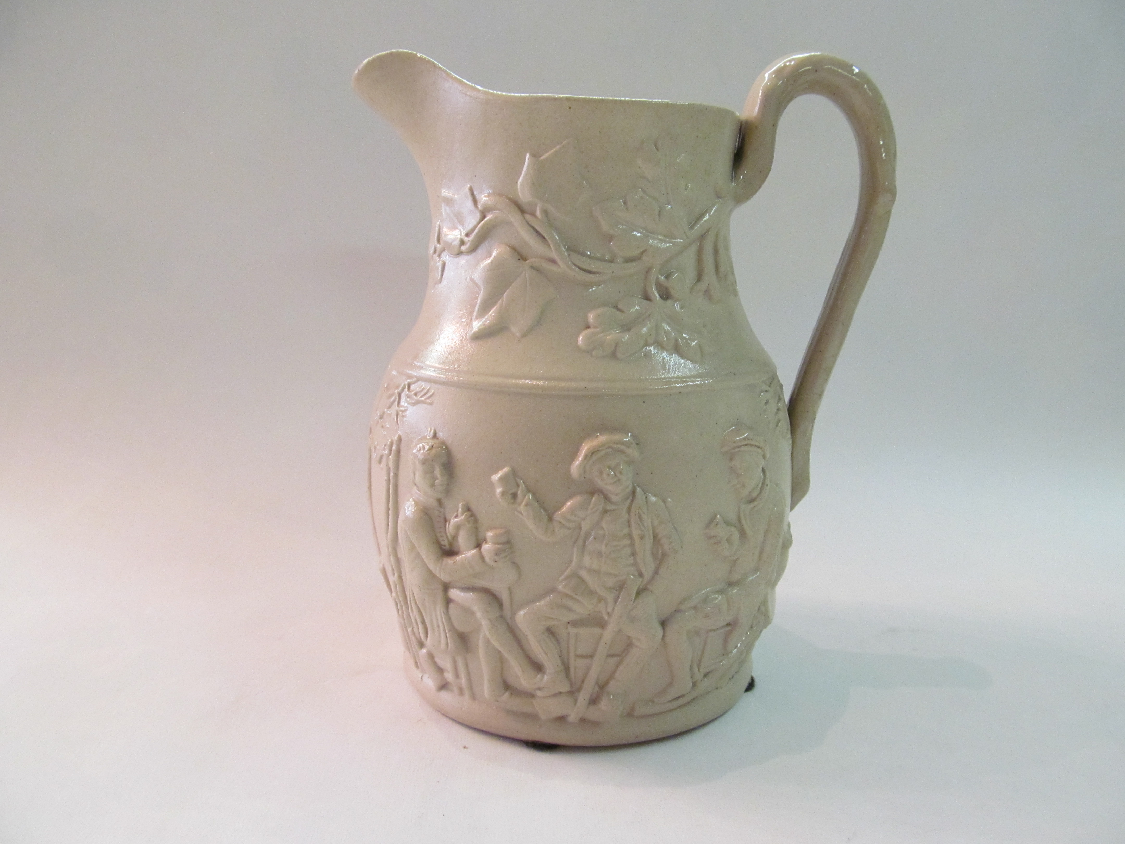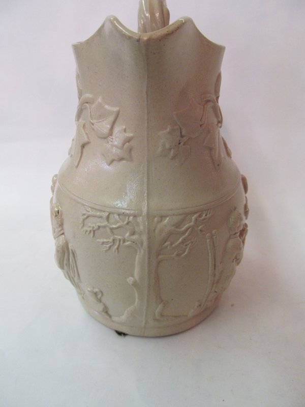 Left (A) Fine Antique English Salt Glaze Relief Moulded Jug