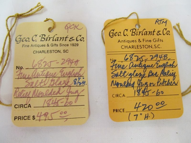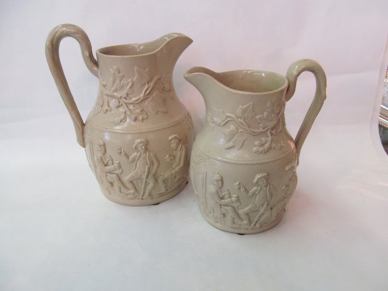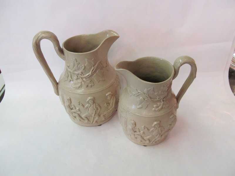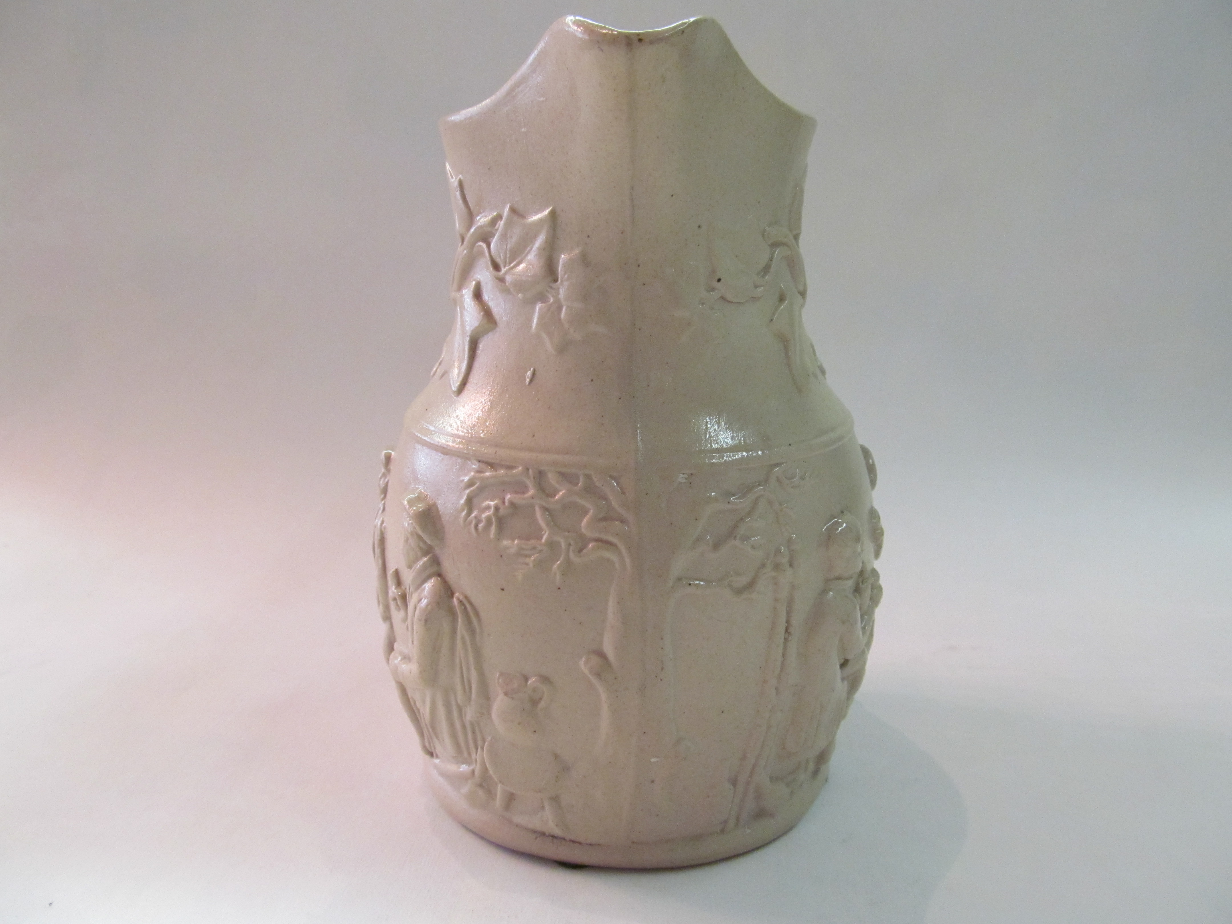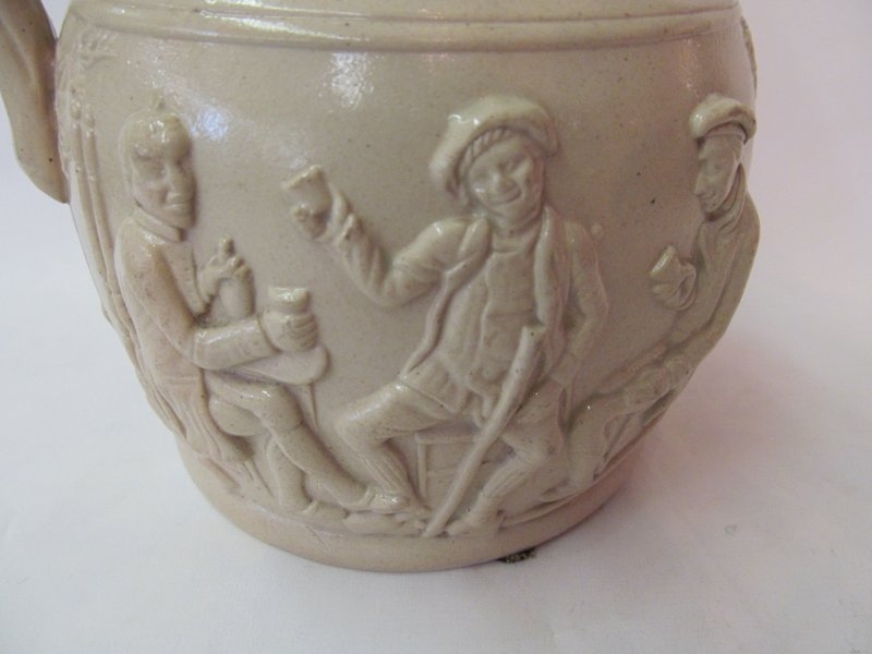 Left (A) Fine Antique English Salt Glaze Relief Moulded Jug