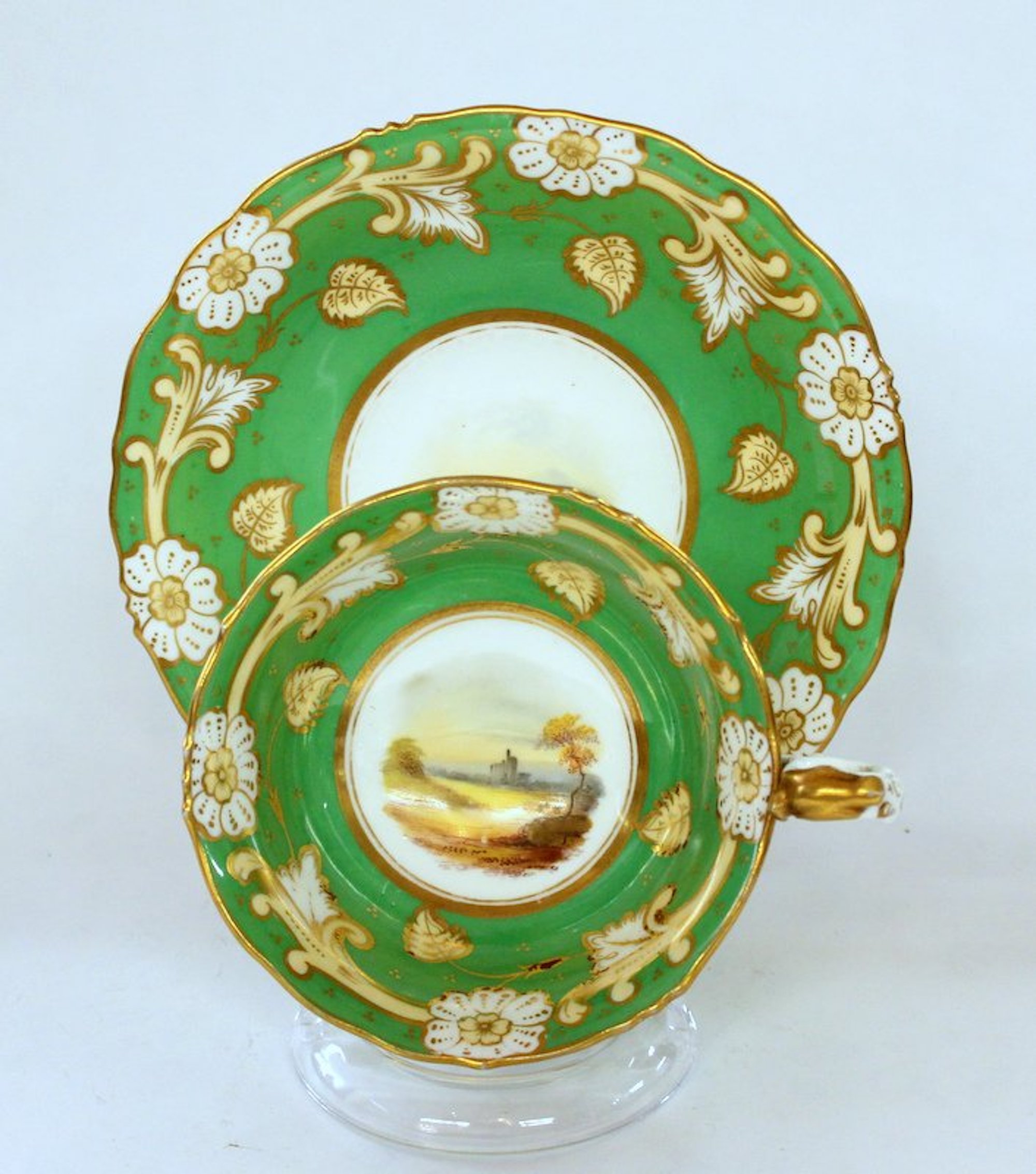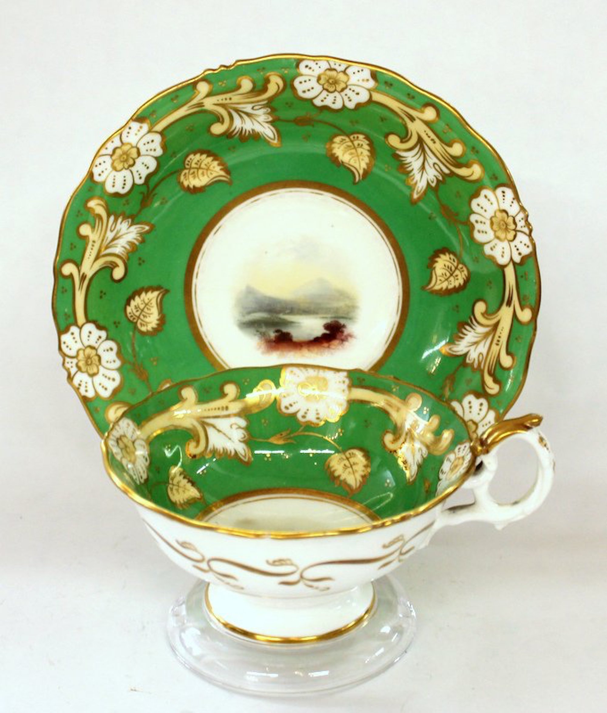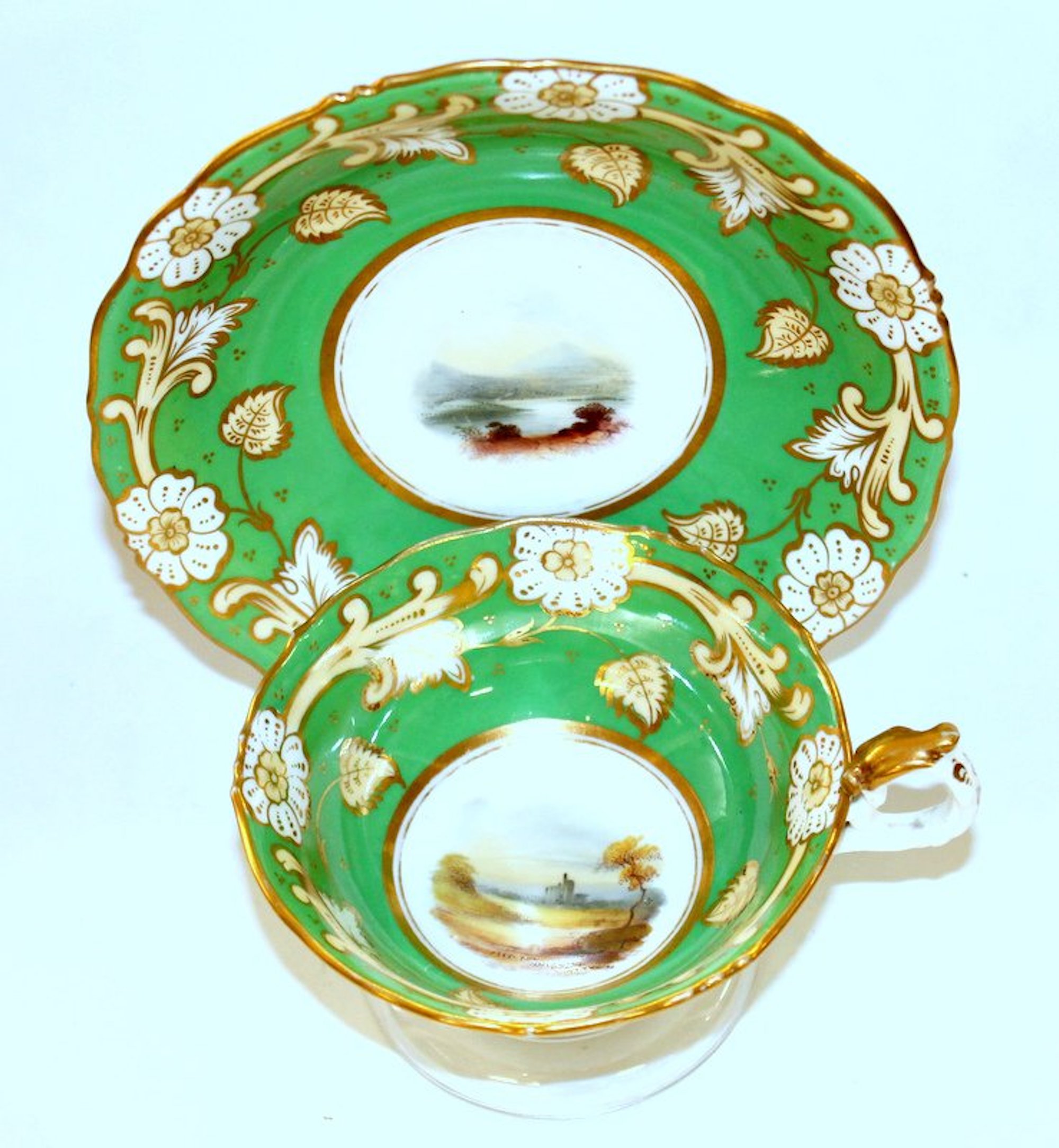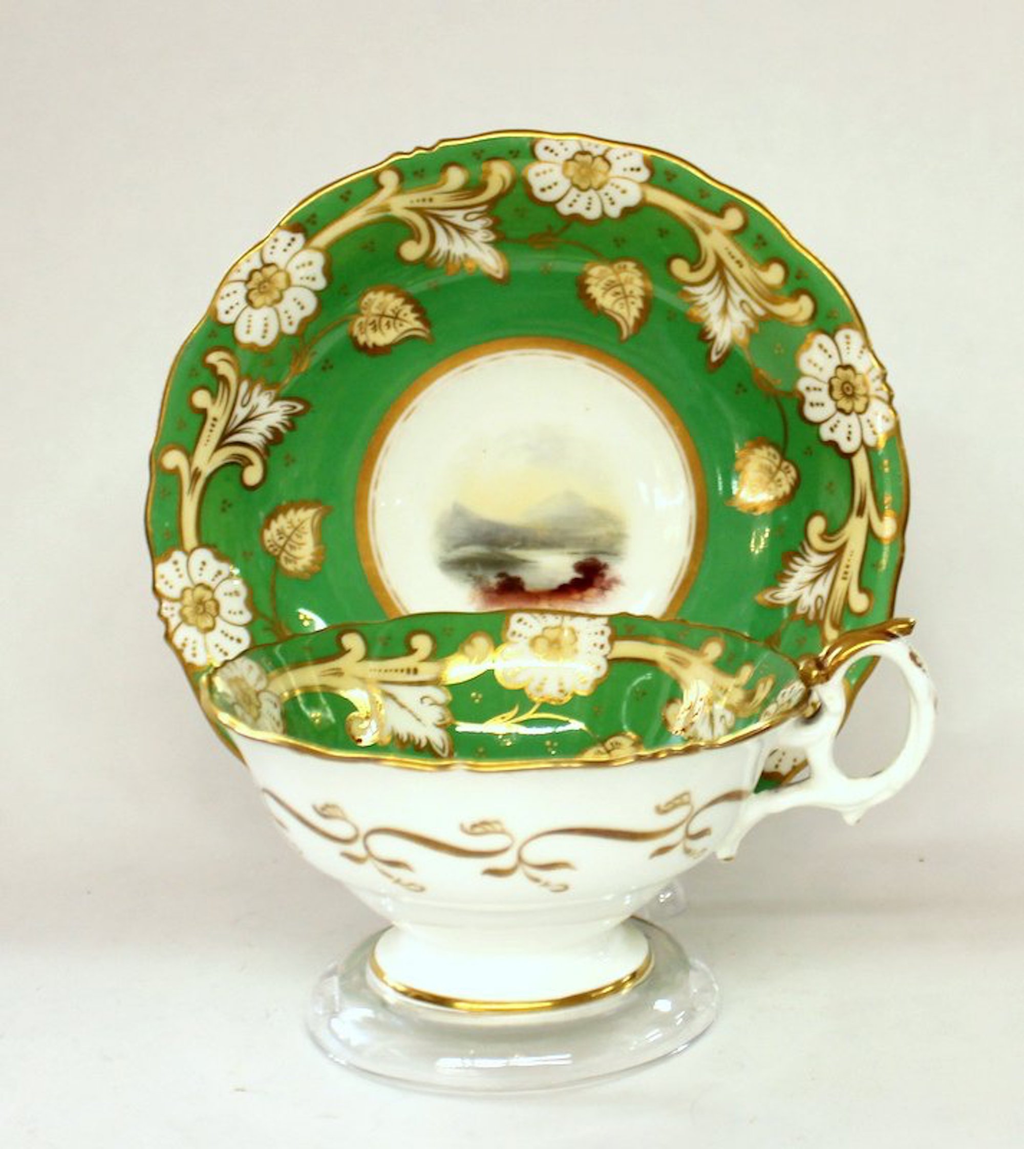 Superb Antique English Samuel Alcock Hand Painted Porcelain Scenic Cup and Saucer