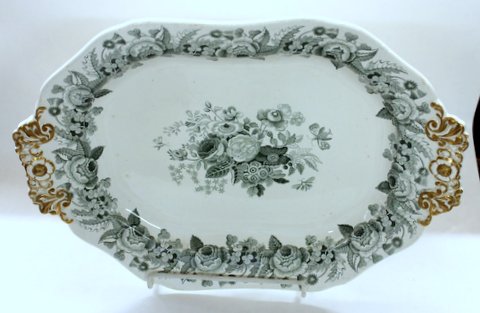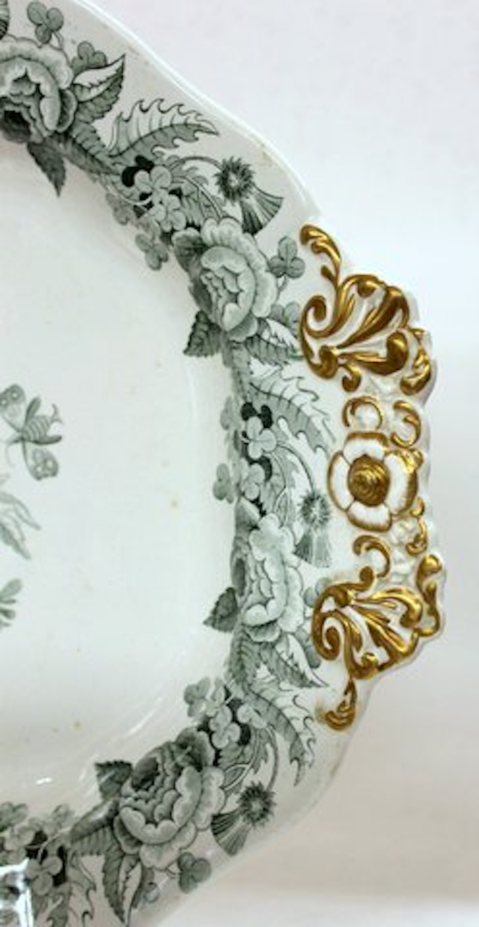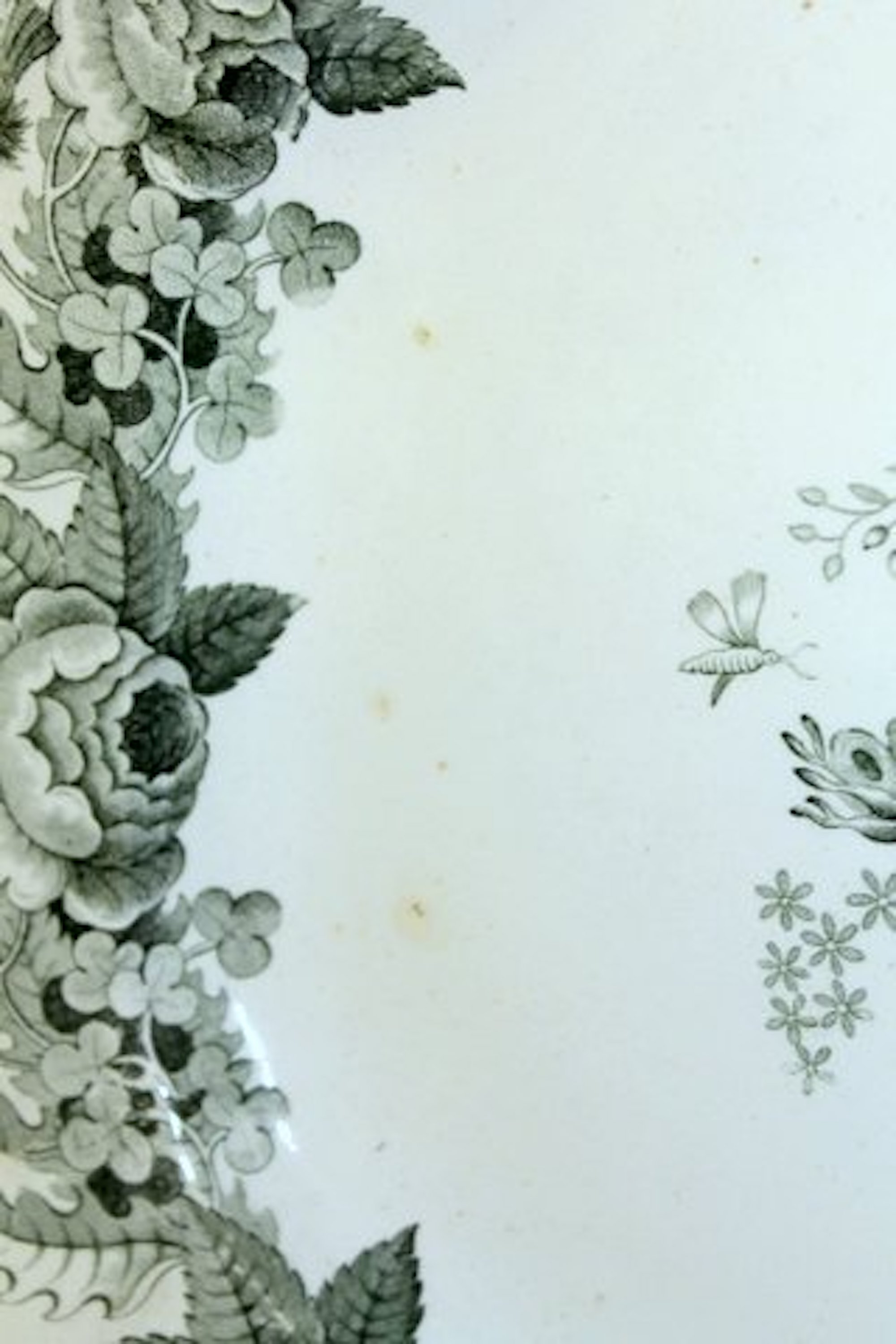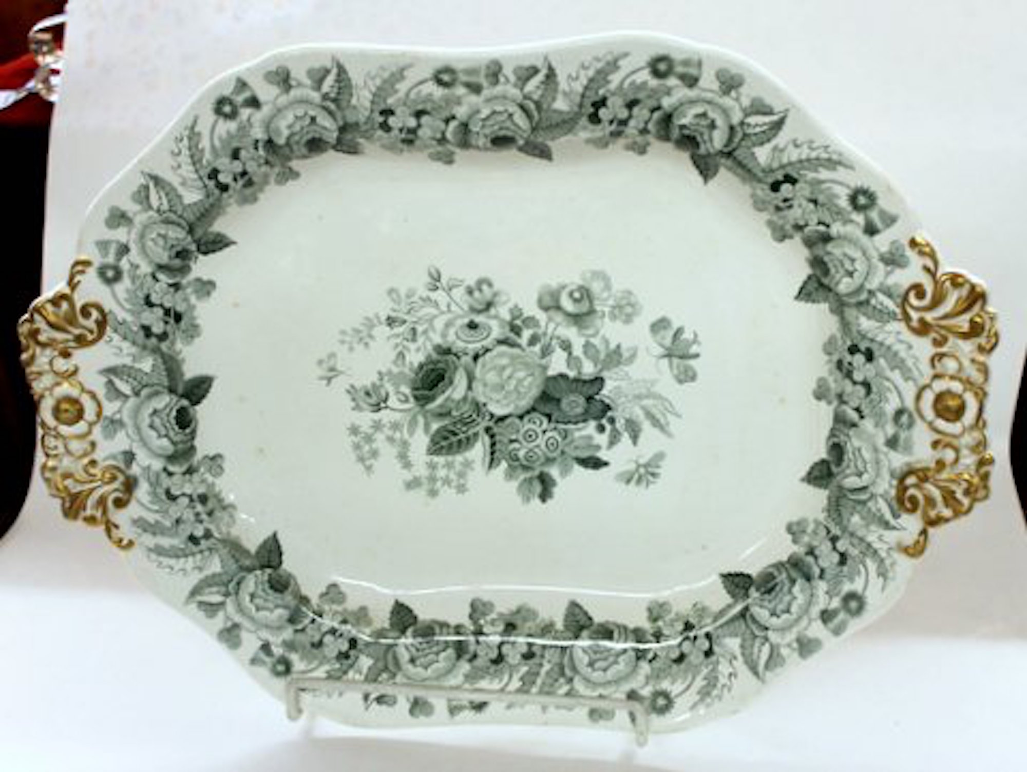 Rare Antique English Spode Transfer Earthenware Green and White Platter