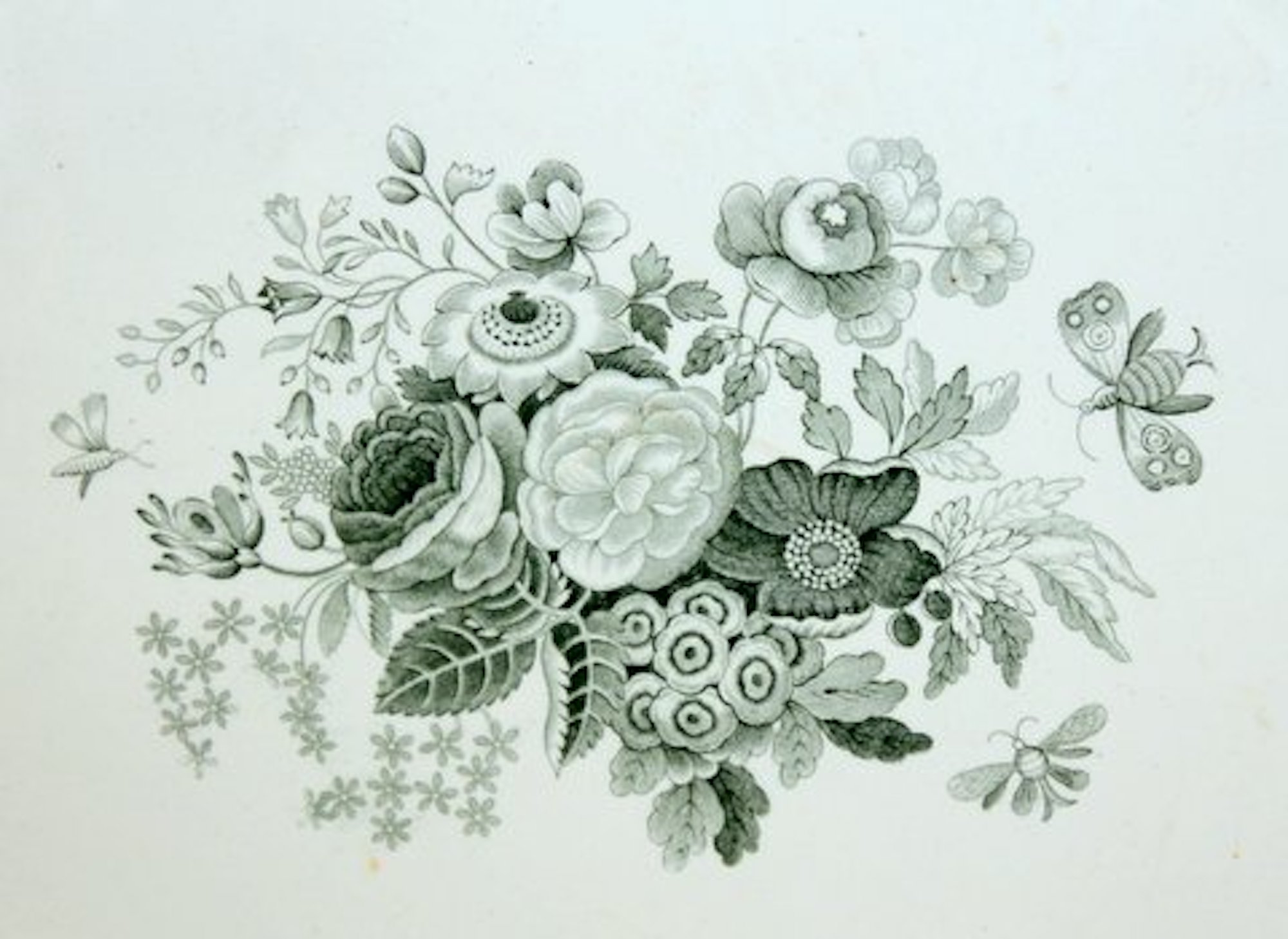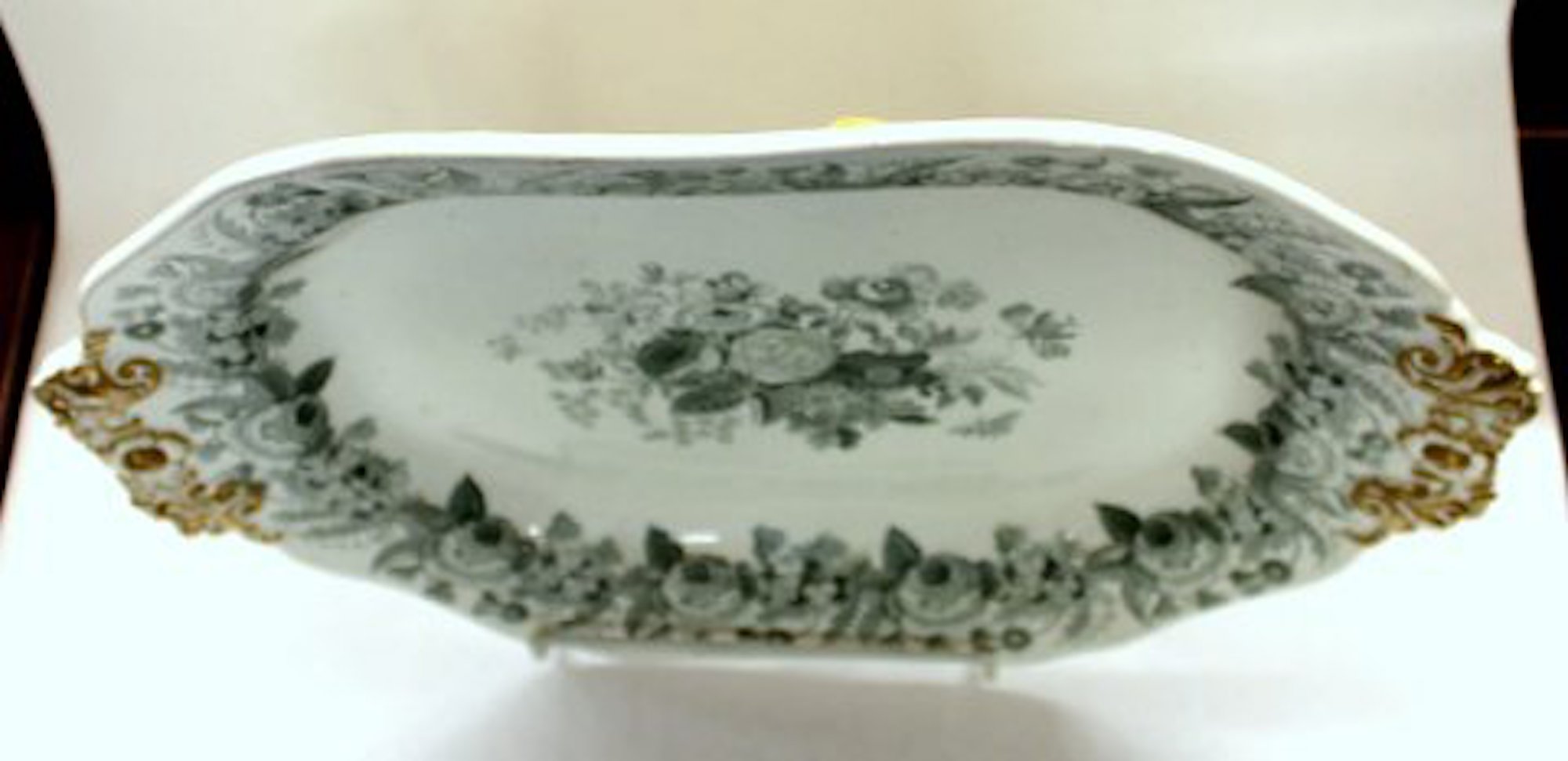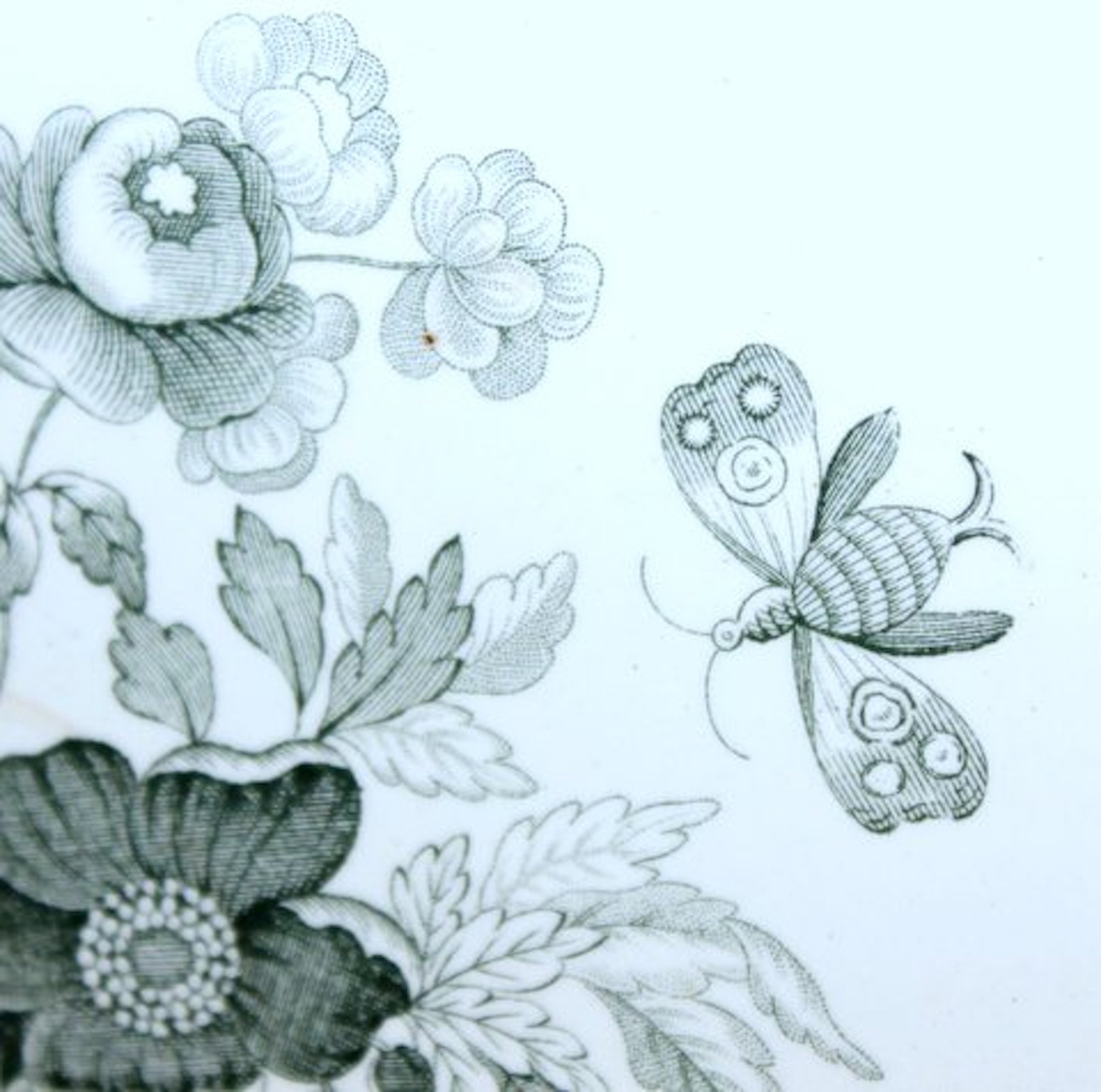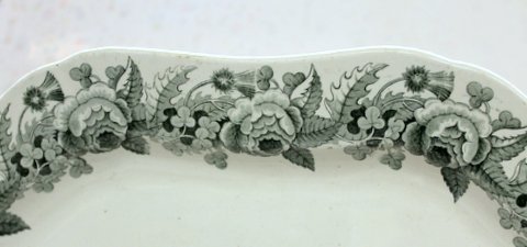Rare Antique English Spode Transfer Earthenware Green and White Platter