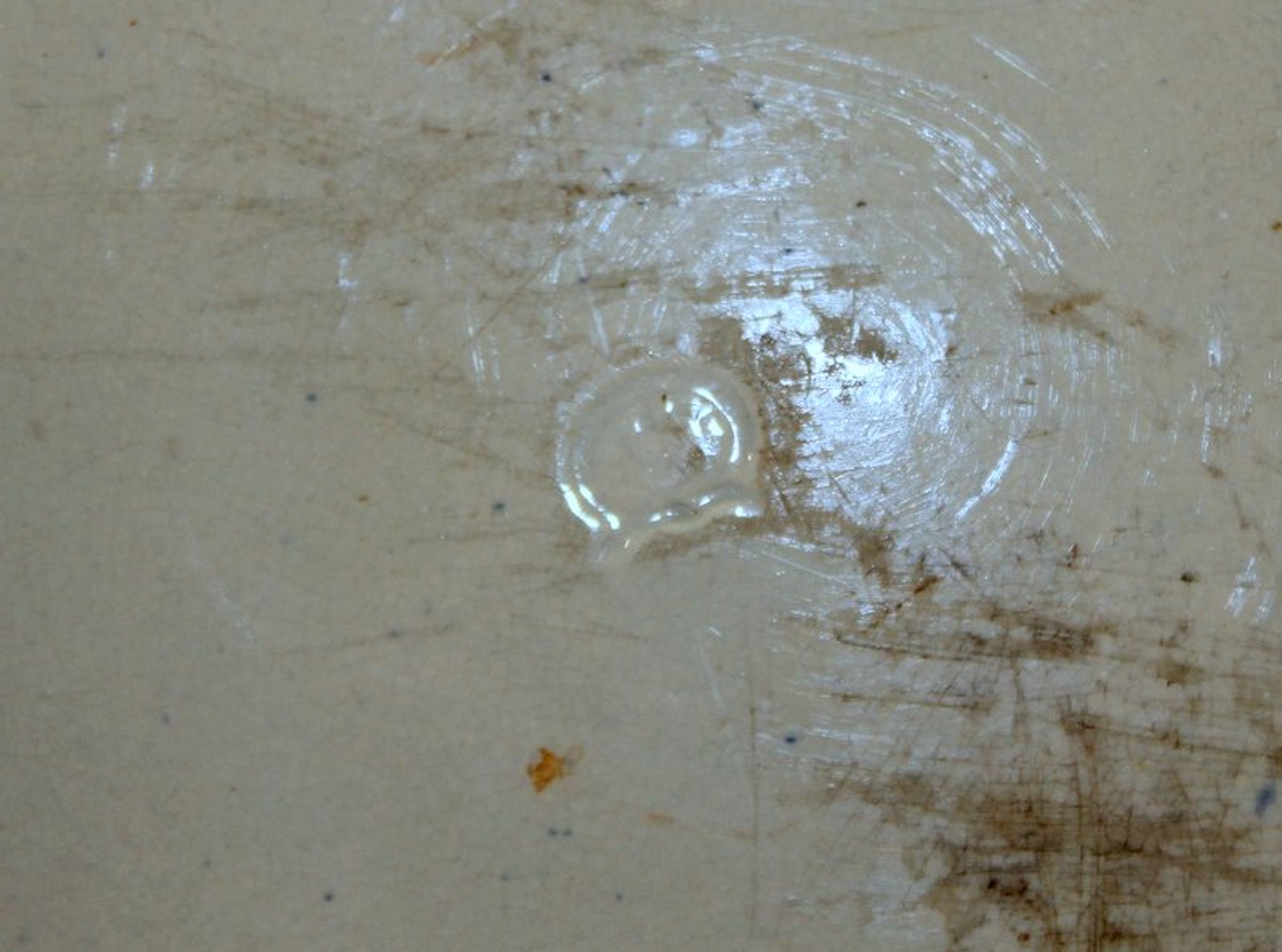There is a “suspicious” area about two inches long x 1/4 inch high on the top edge where an very old top edge restoration “may” have taken place years ago. It also could be where the transfer pattern crudely overlapped, but it is mentioned for accuracy and priced accordingly.