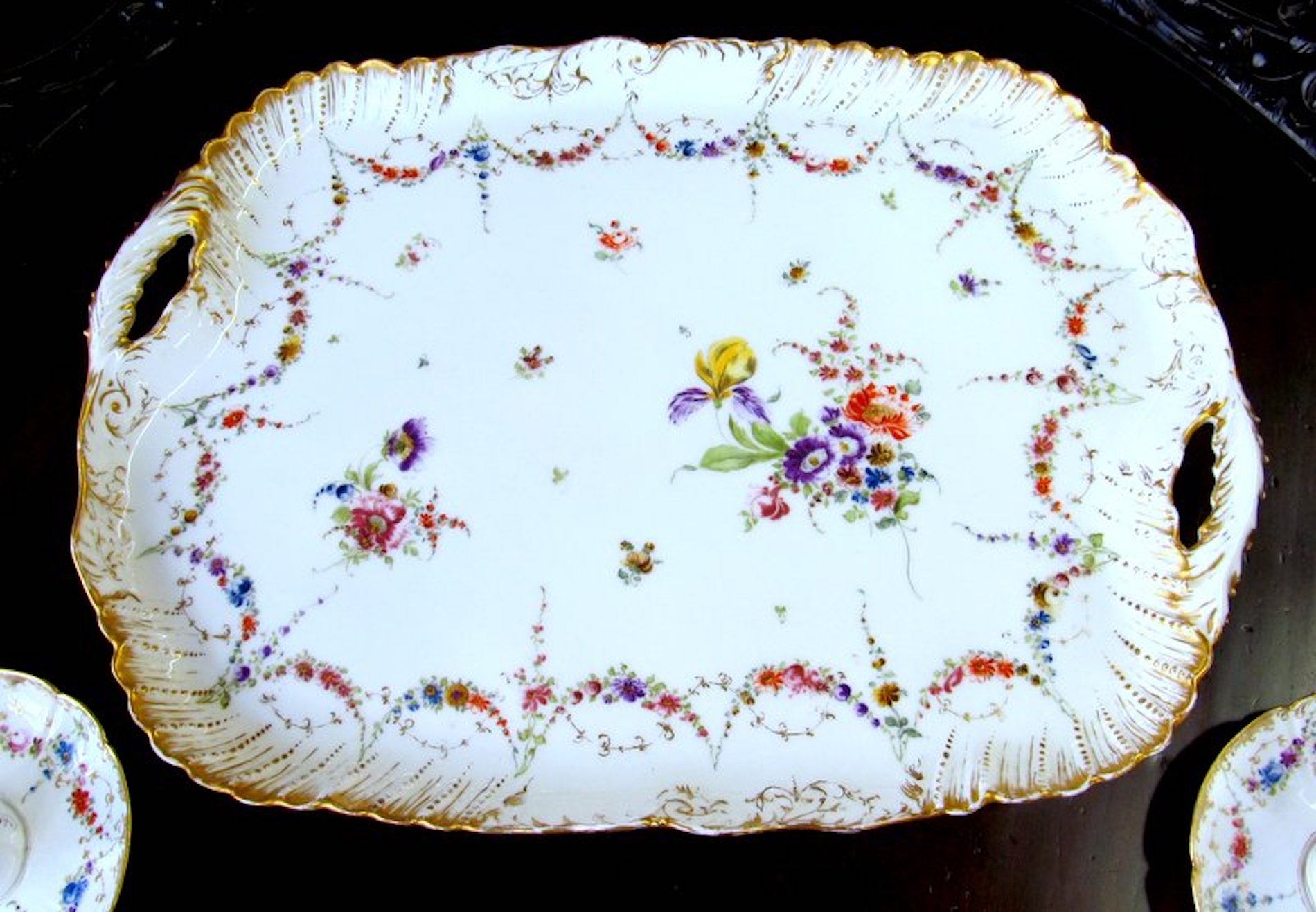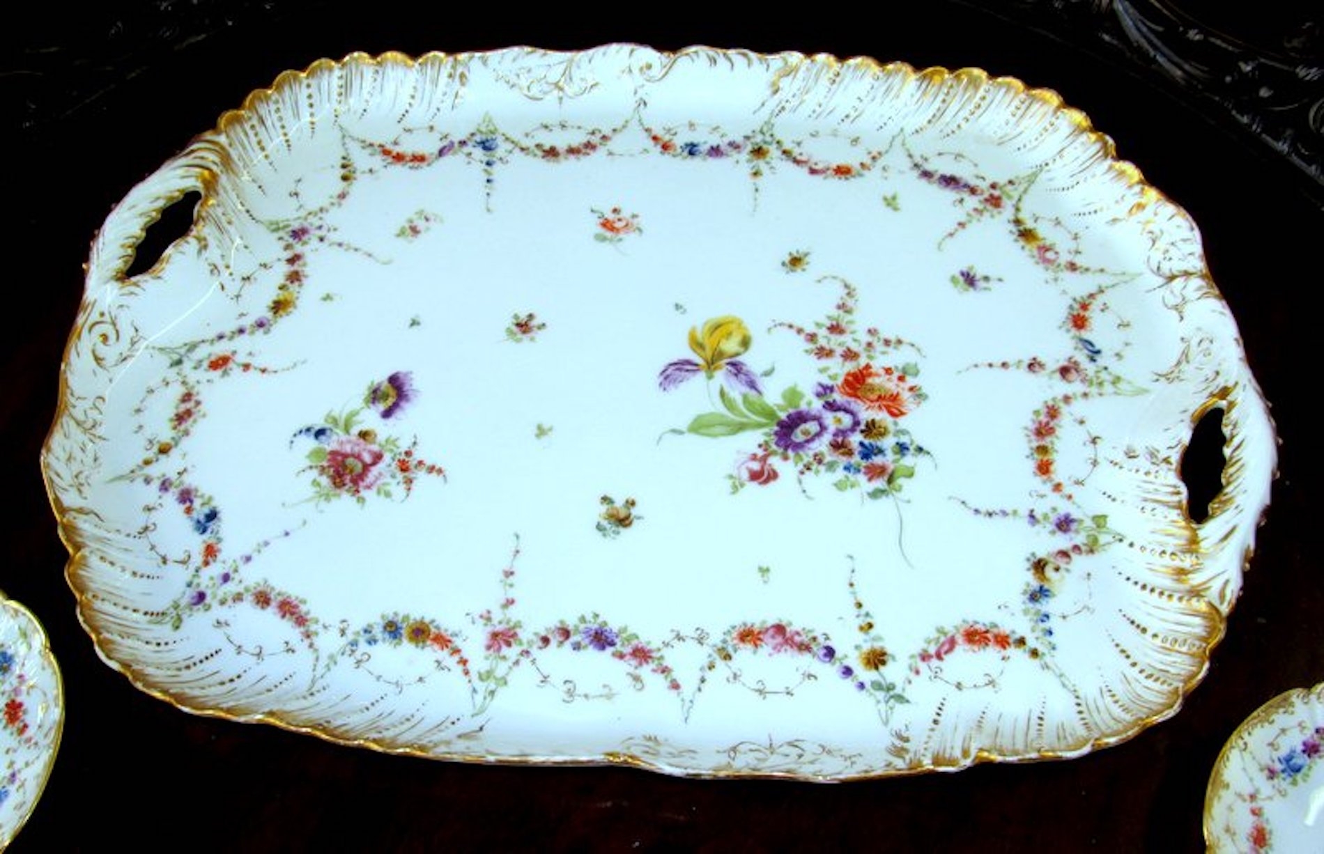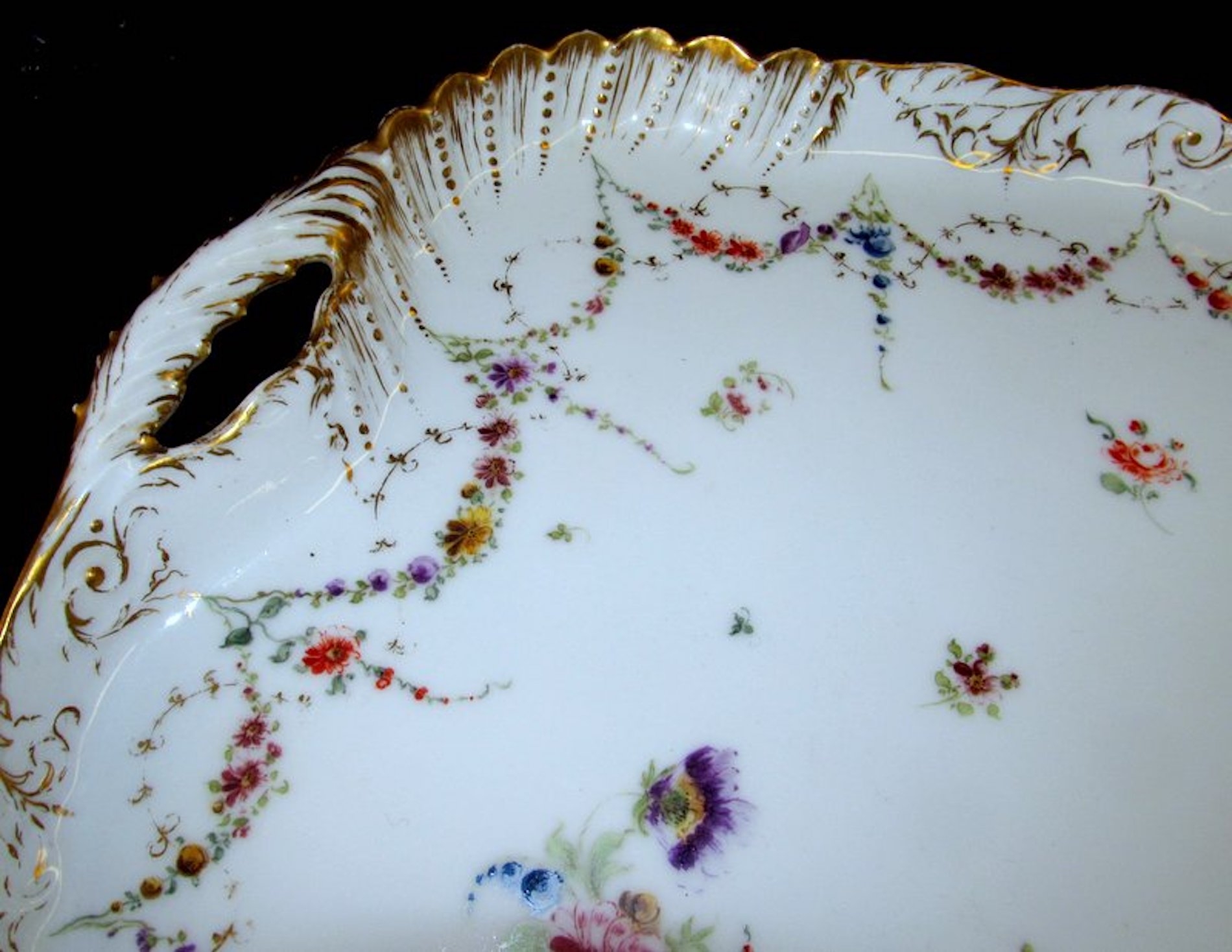 Please note exceptional hand painted floral garlands and sprays monogrammed by artist (unknown) on each piece.