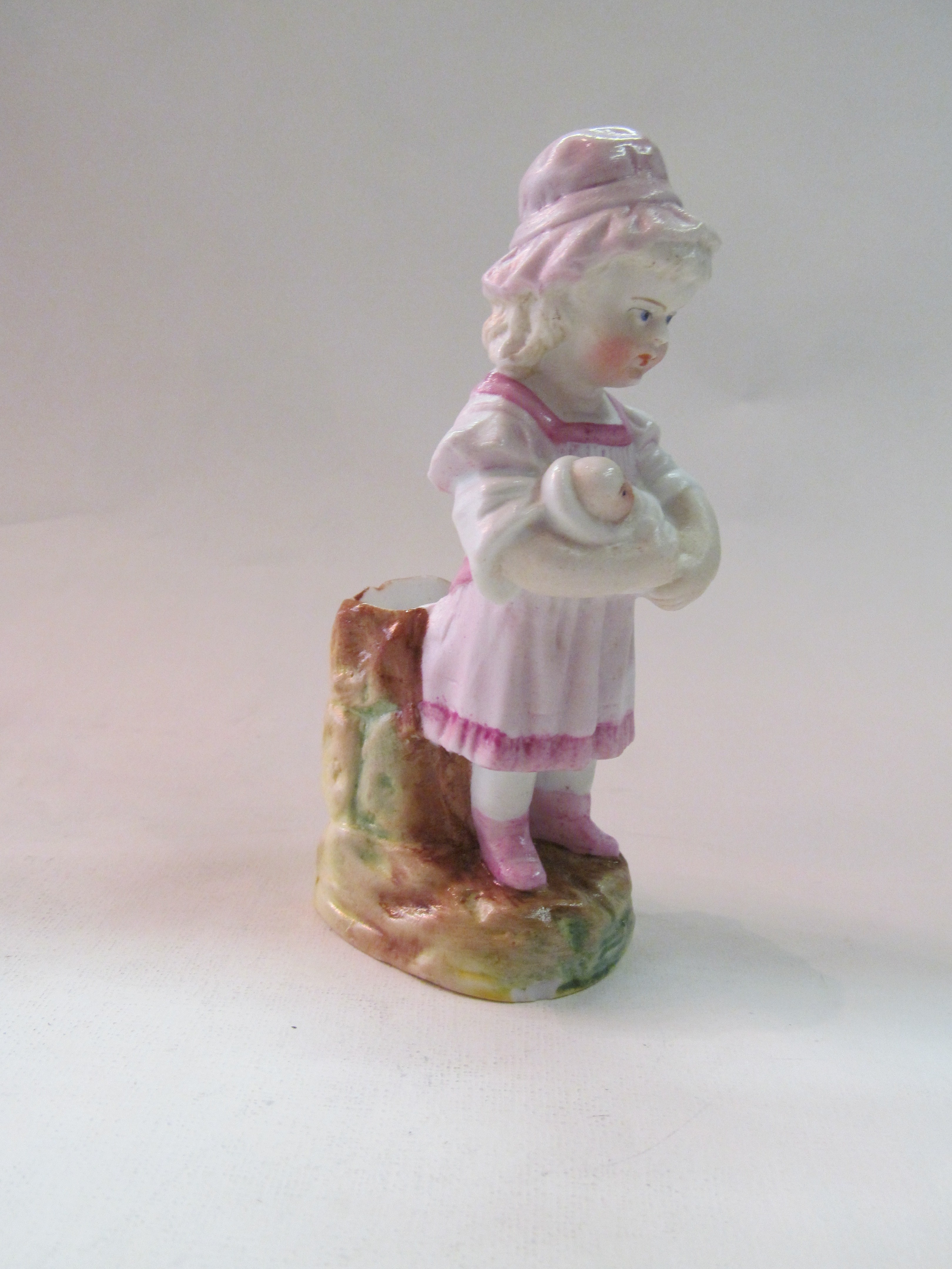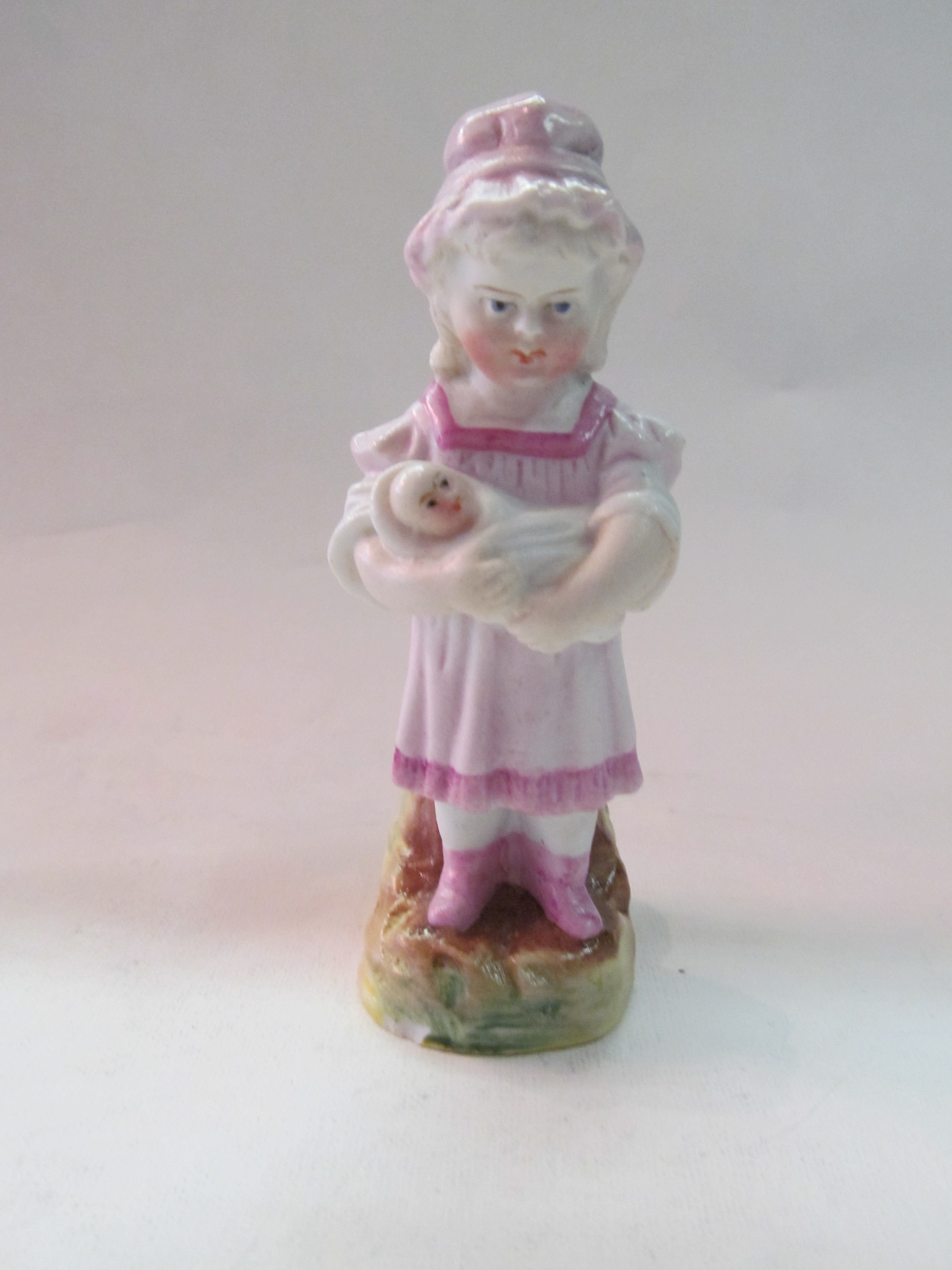Old Continental hand painted figure of a young girl with baby.