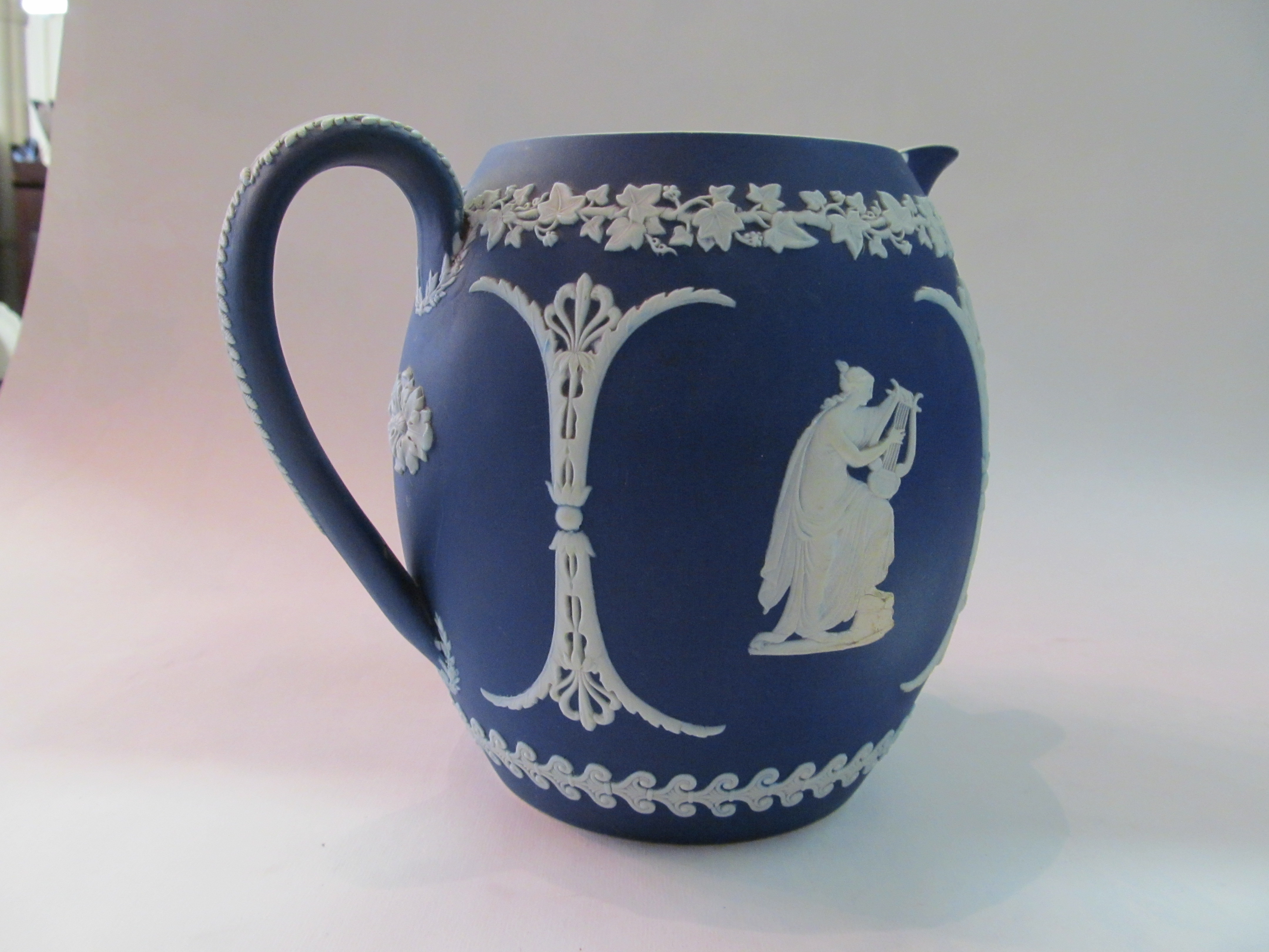 Fine Antique English Wedgwood dark blue Jasperware Jug