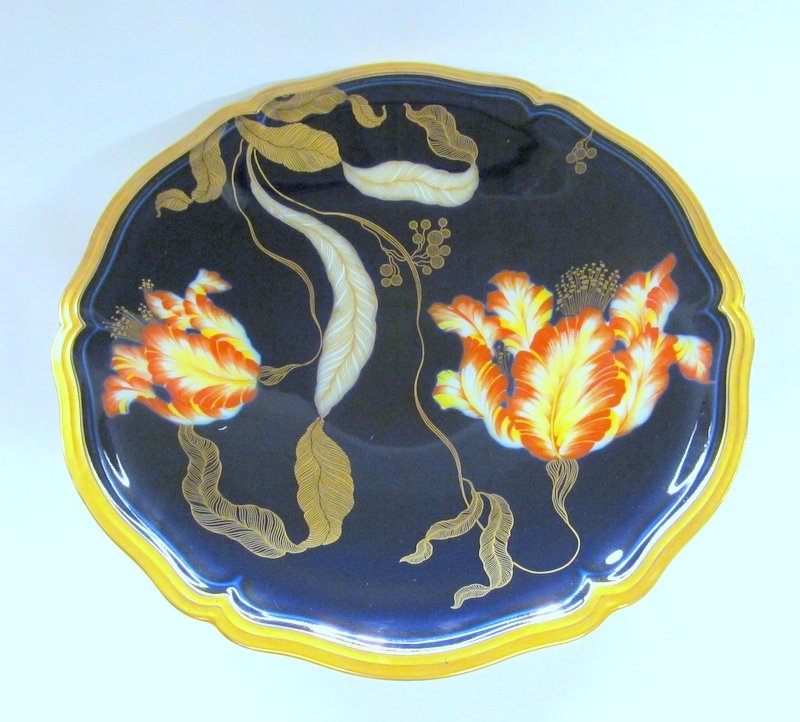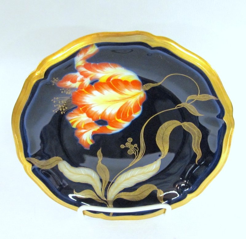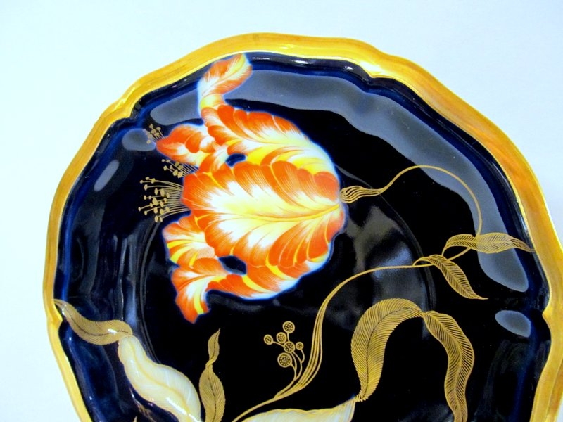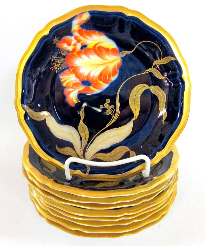 Fabulous Quality Old Rosenthal Hand Decorated German Porcelain Cobalt and Gold Art Deco Tulip Motif 11 Piece Dessert Set