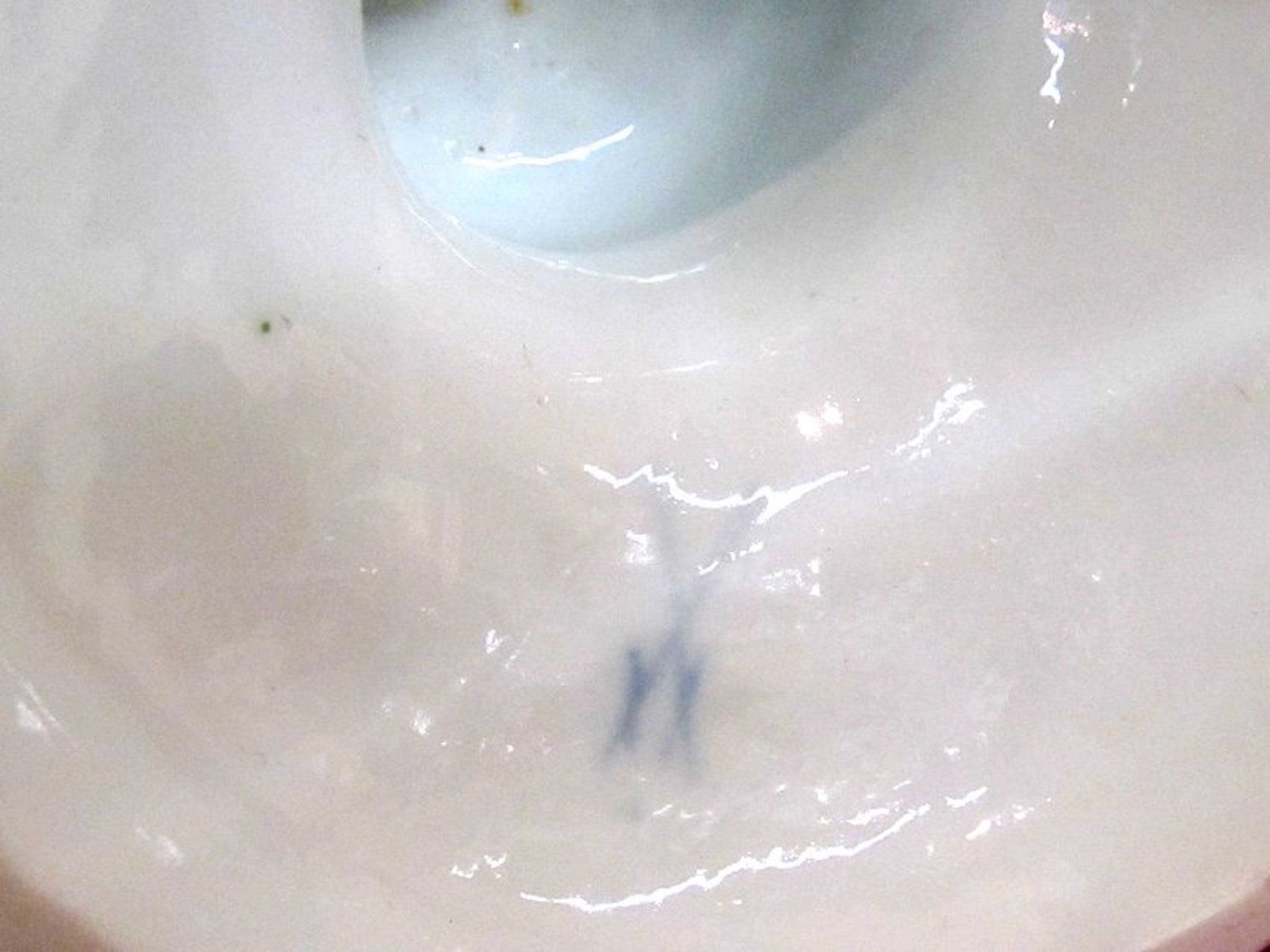 The mark on the base of each vase/urn is the 18th century mark from the “Dot” or “Academic” period of the Meissen factory, Circa 1763-1774 when a blue dot was painted between the hilts of the “swords” mark. The famous “crossed swords” mark (taken from the Arms of Saxony) was introduced in 1722 and has been the standard mark of the factory up to the present day.