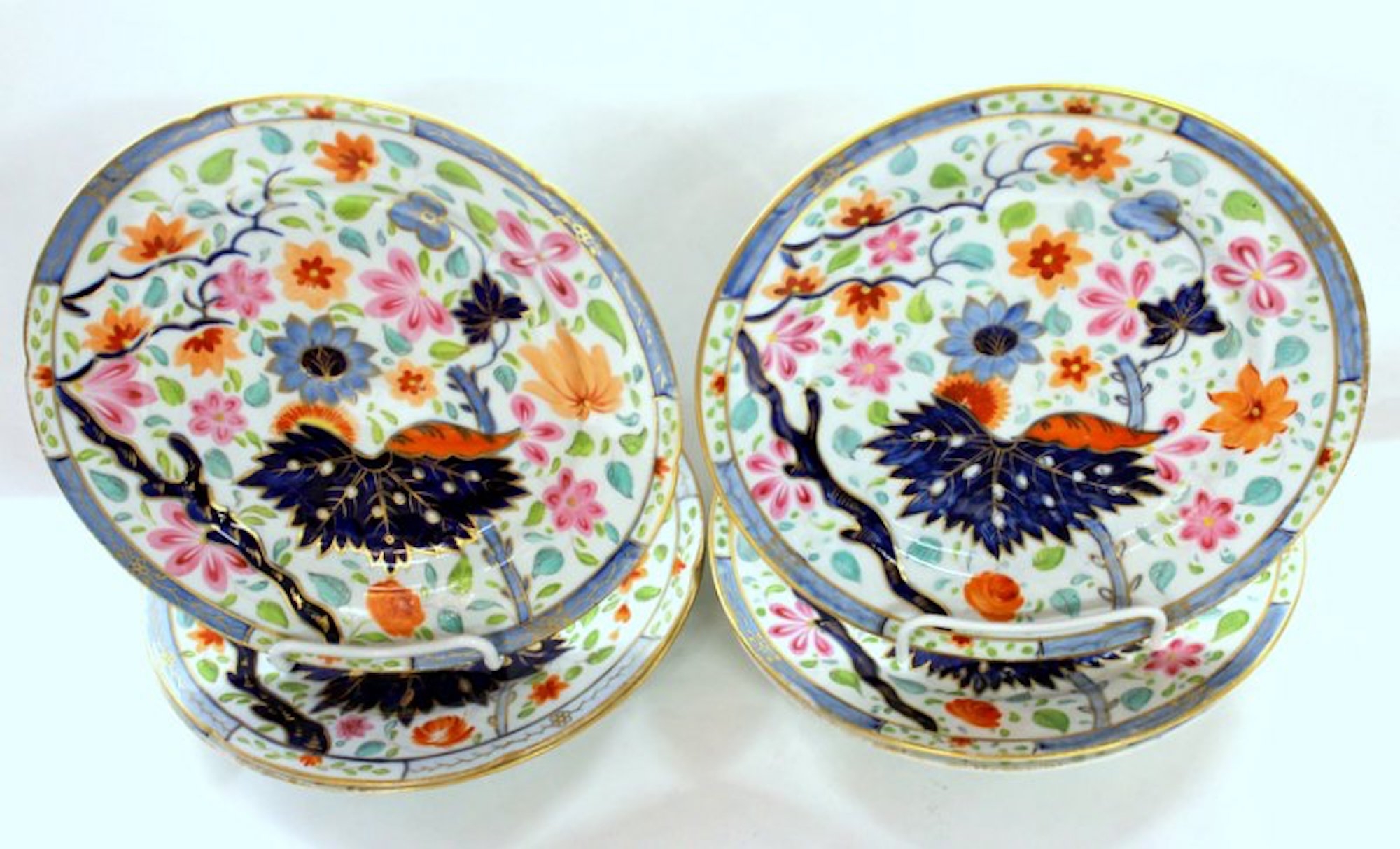 Set of Four Exceptional Antique English Hand Painted Porcelain Luncheon/Dessert Plates