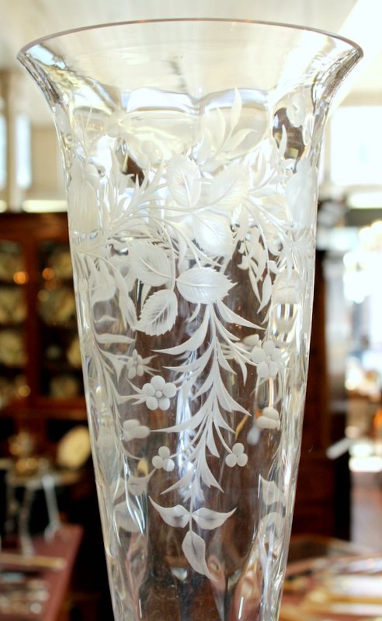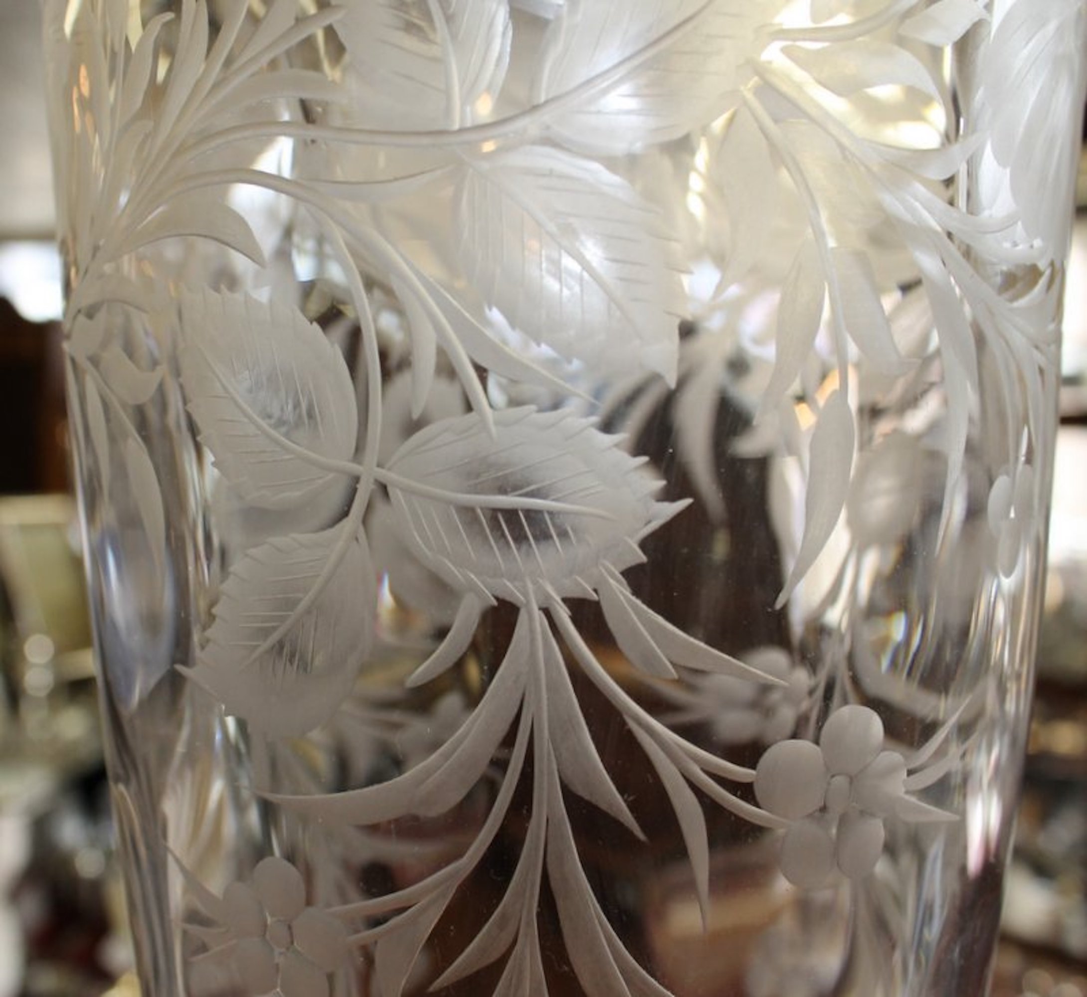 You are here: Home / All Inventory / American Palatial Size Engraved Crystal Signed Vase