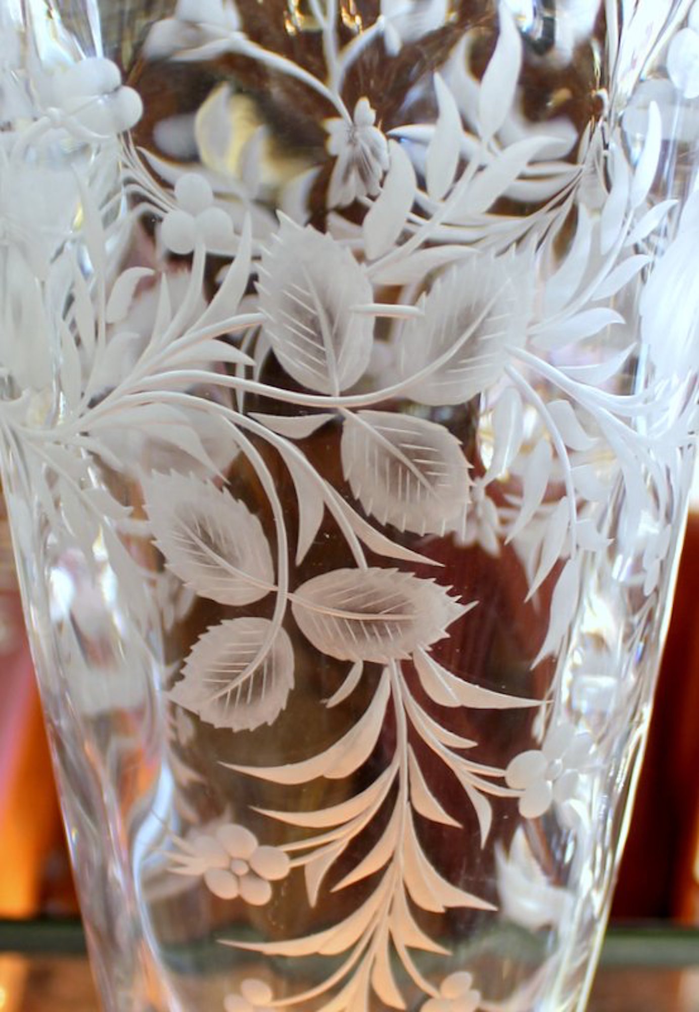 American Palatial Size Engraved Crystal Signed Vase - Image 9