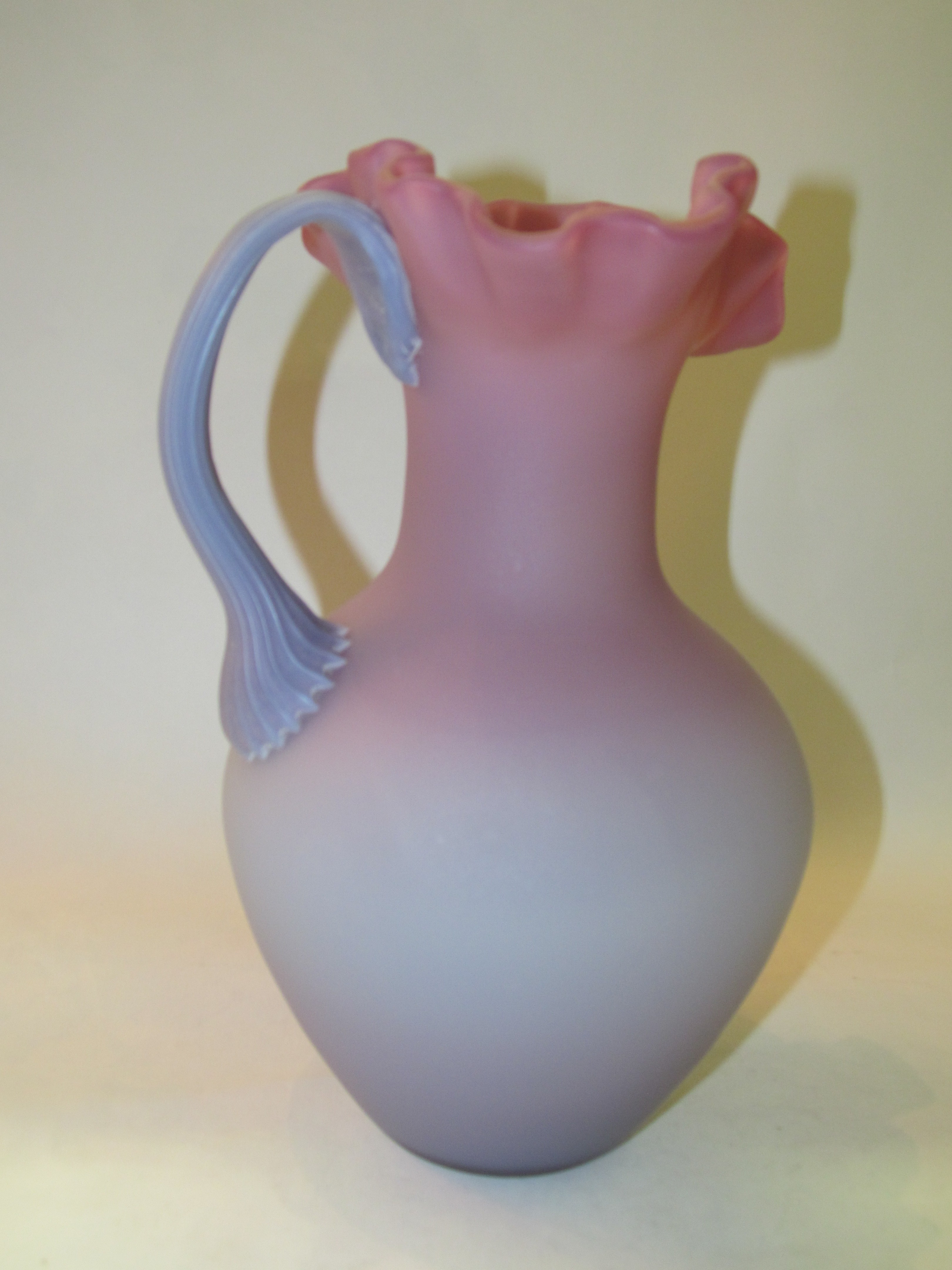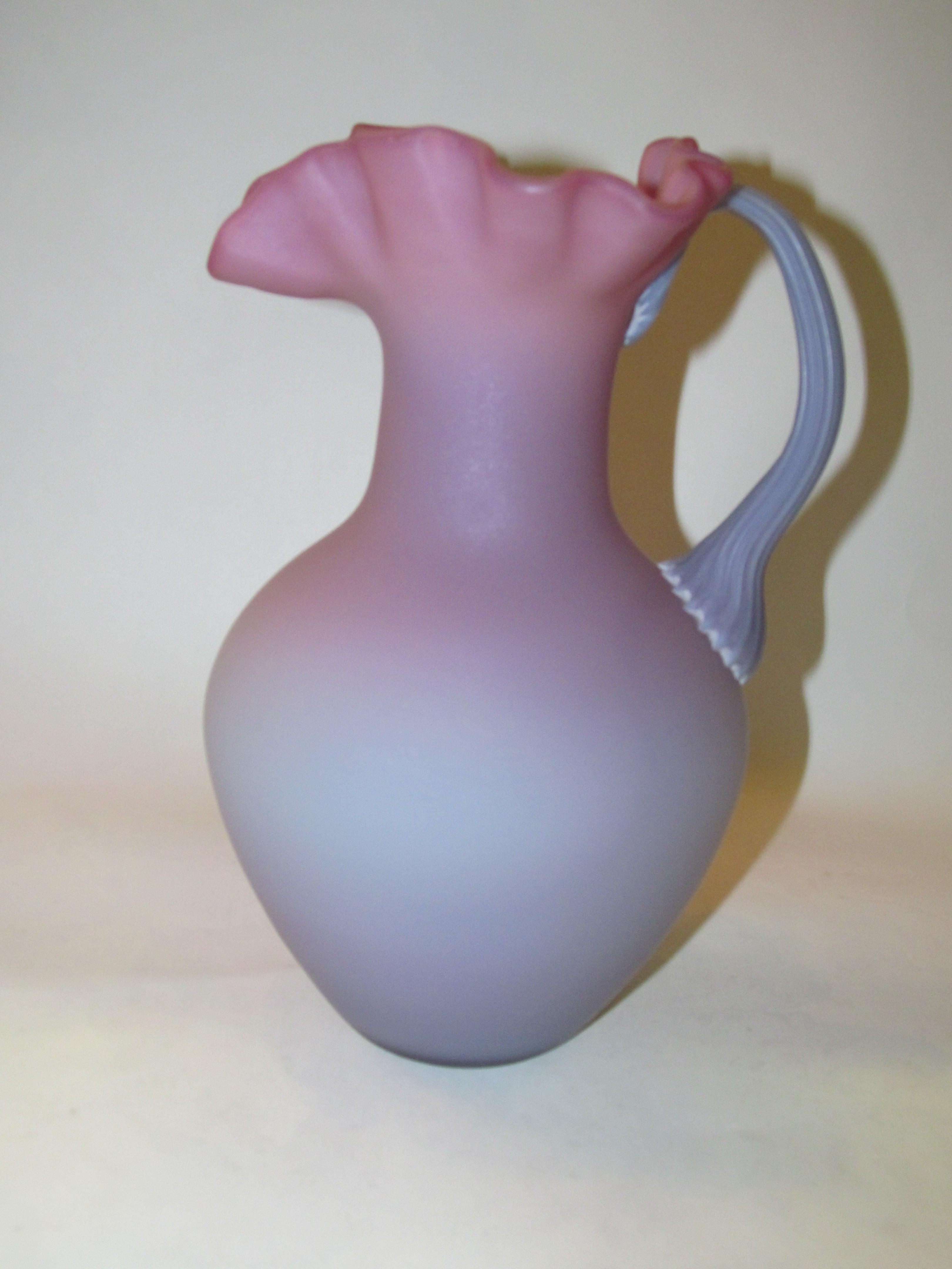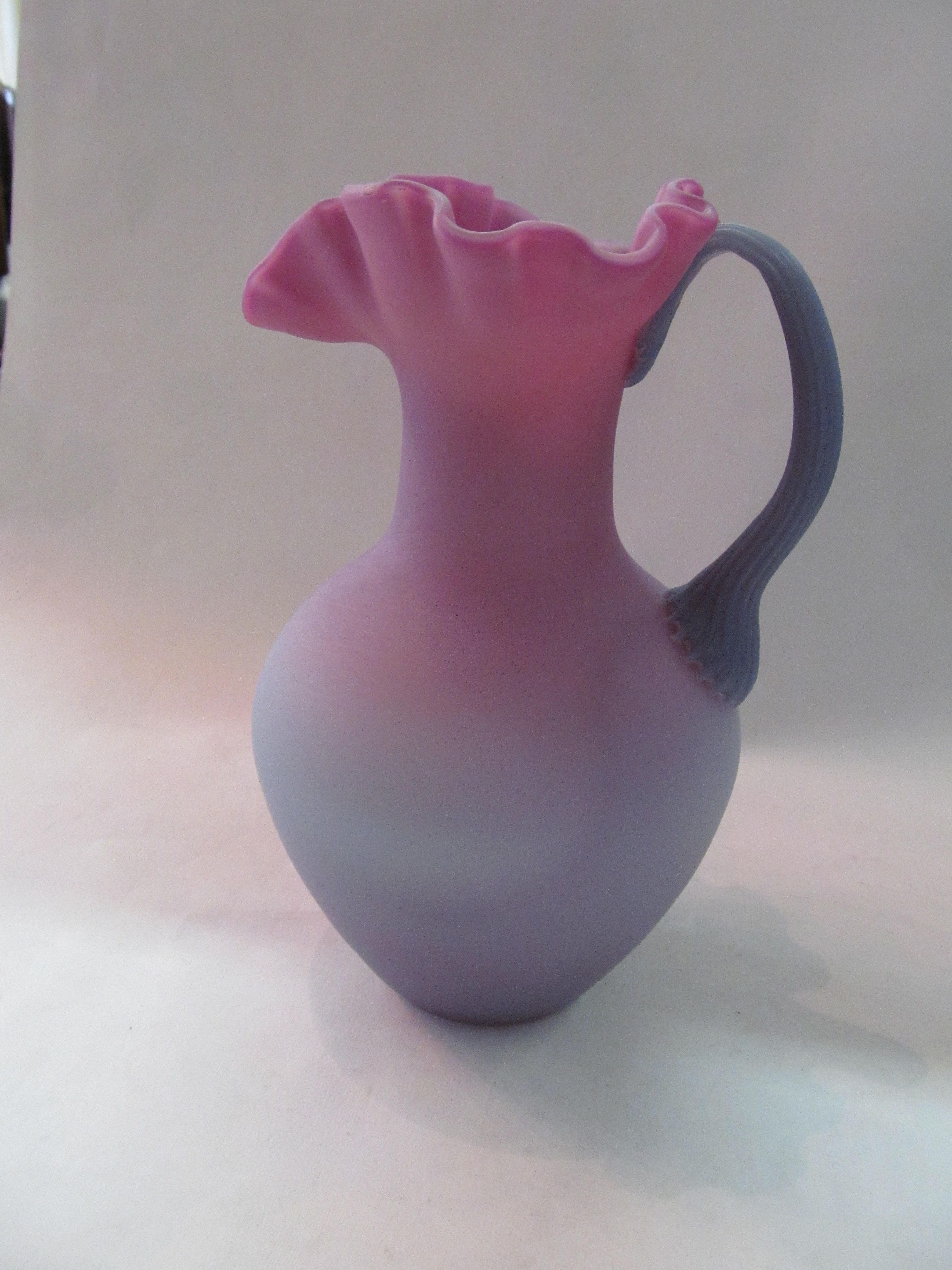 Fabulous Antique American Satin Glass Blue to Amethyst Pitcher.