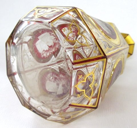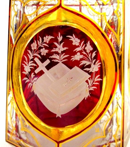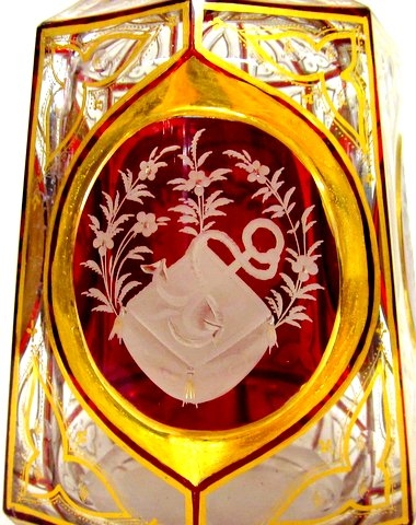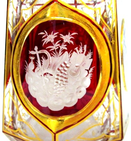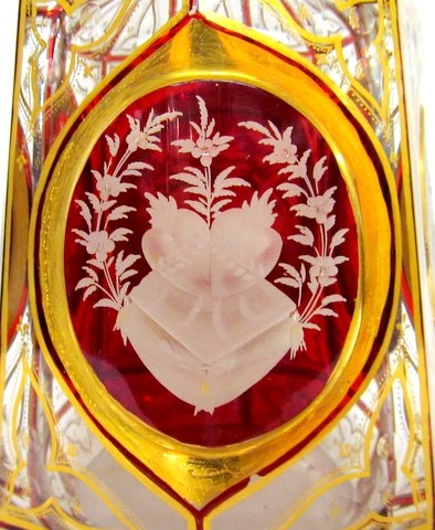 Finest Old Hand Cut and Engraved Ruby Overlay Ecclesiastical Decanter