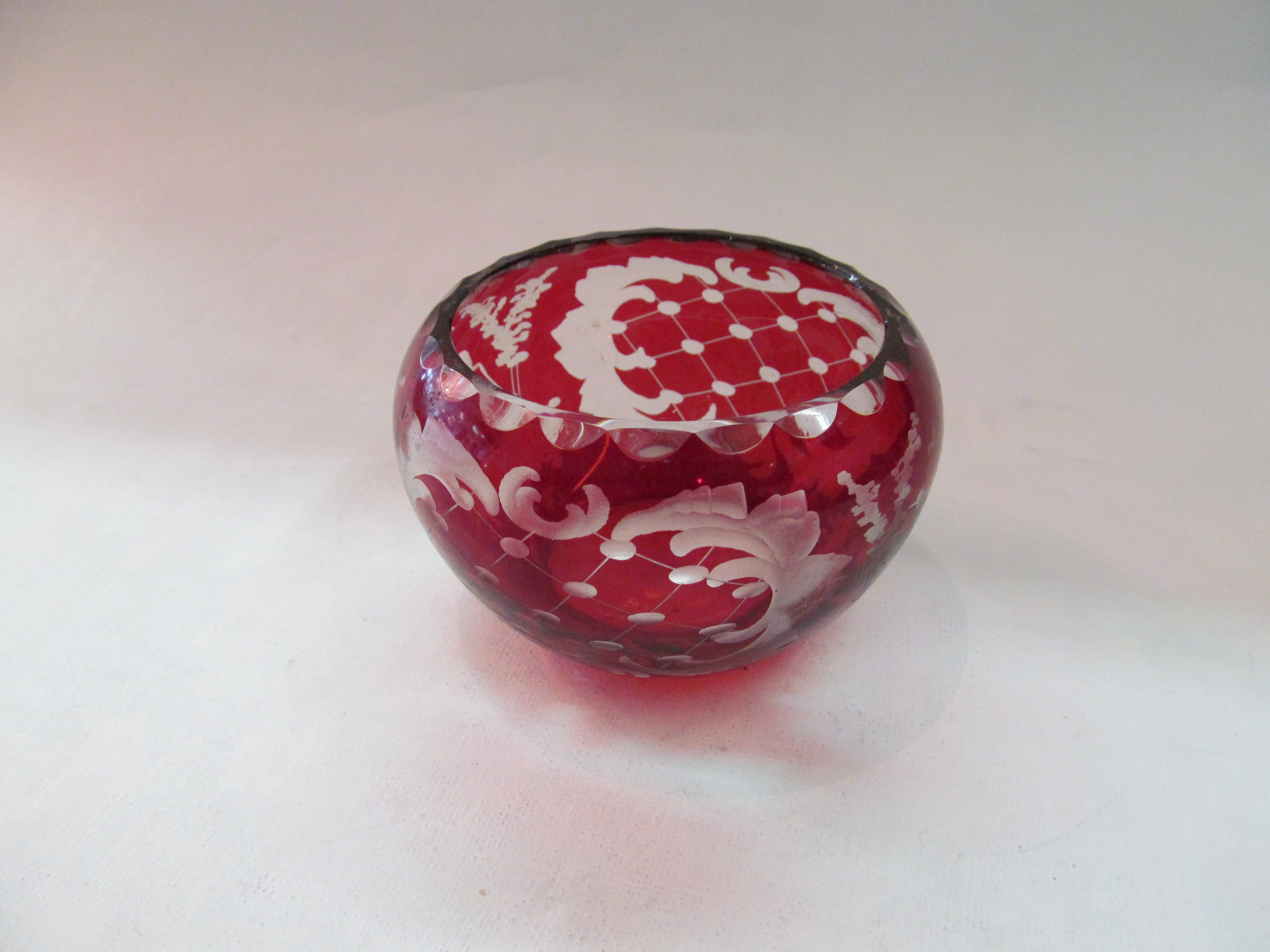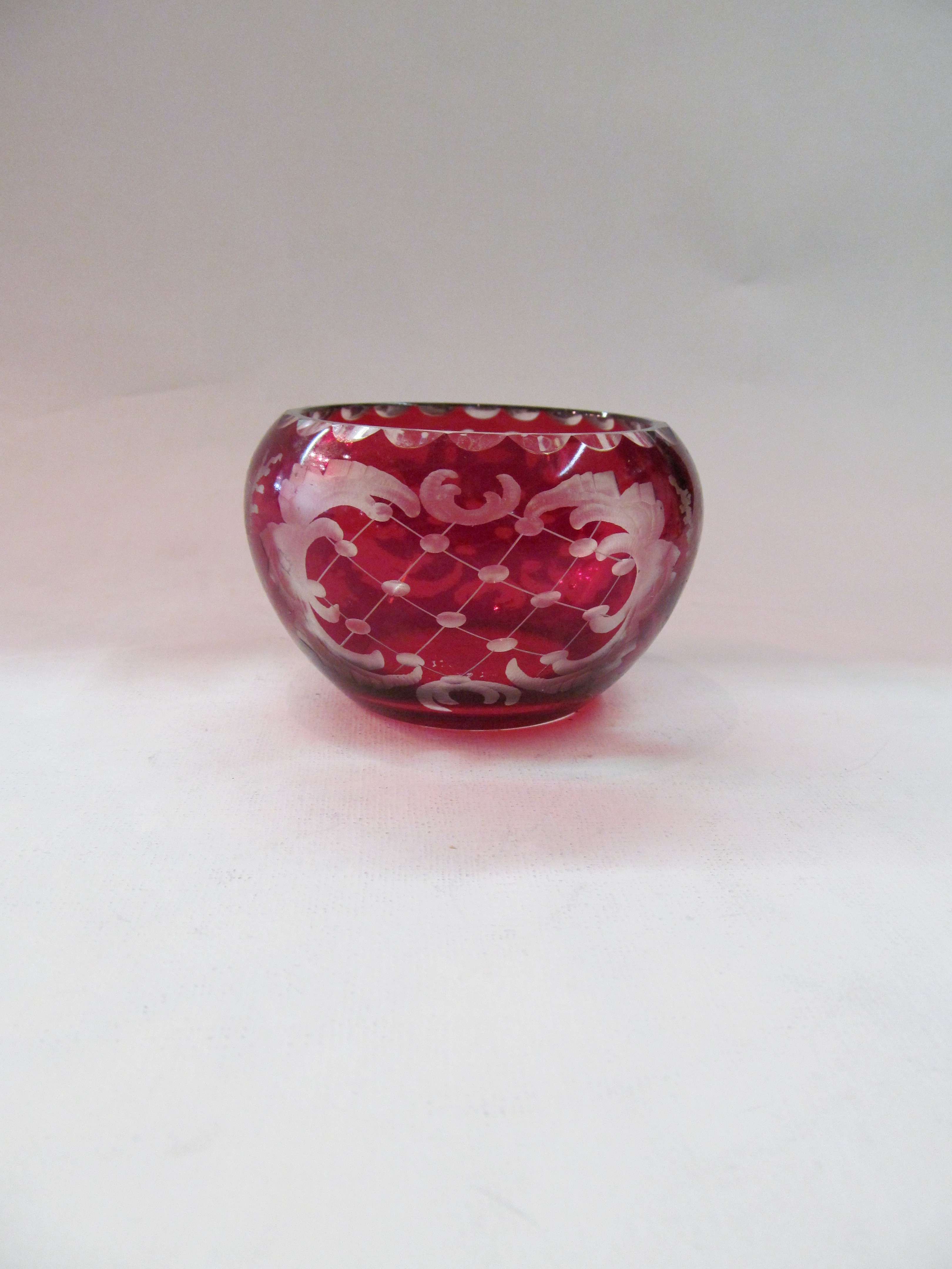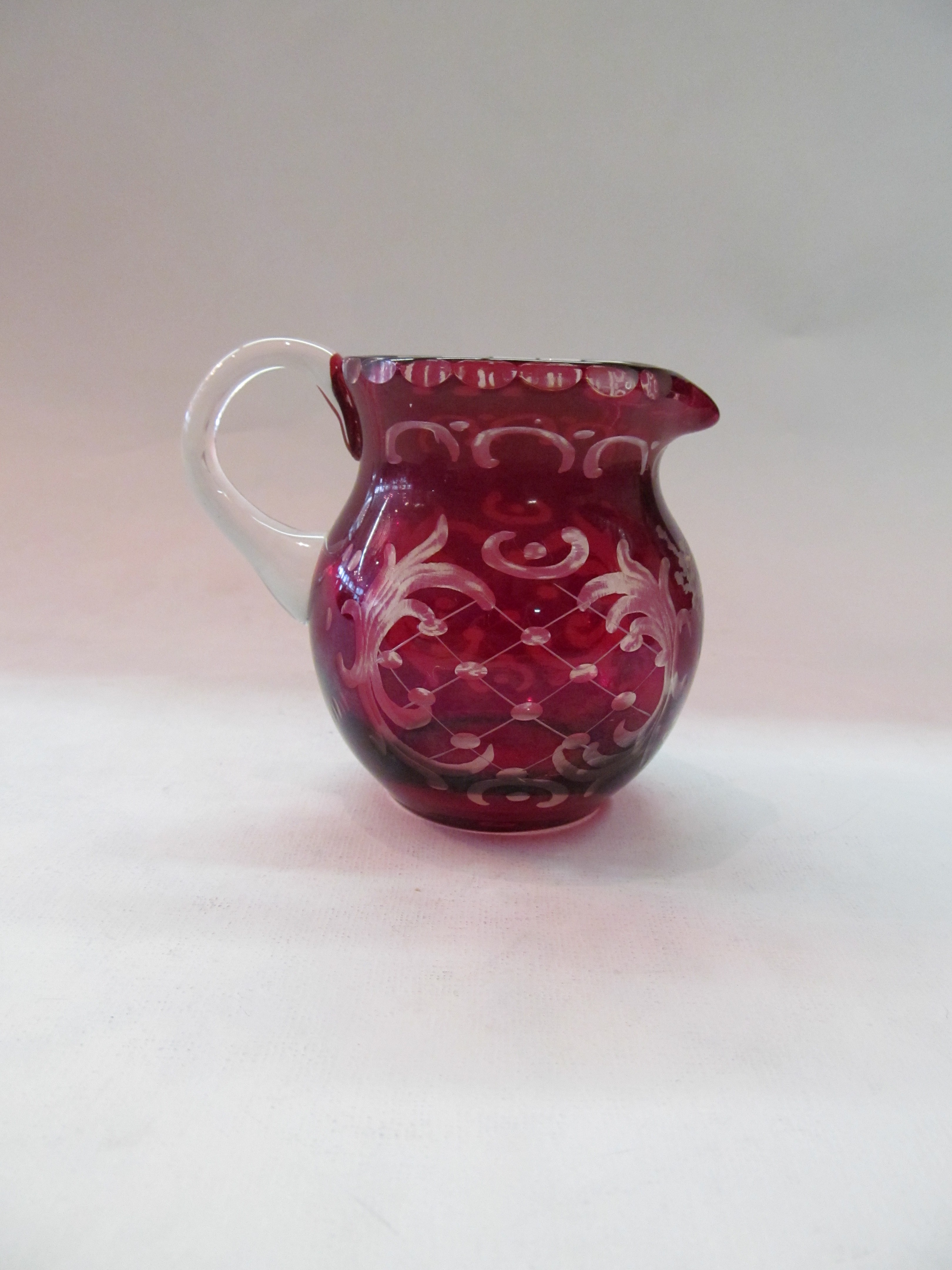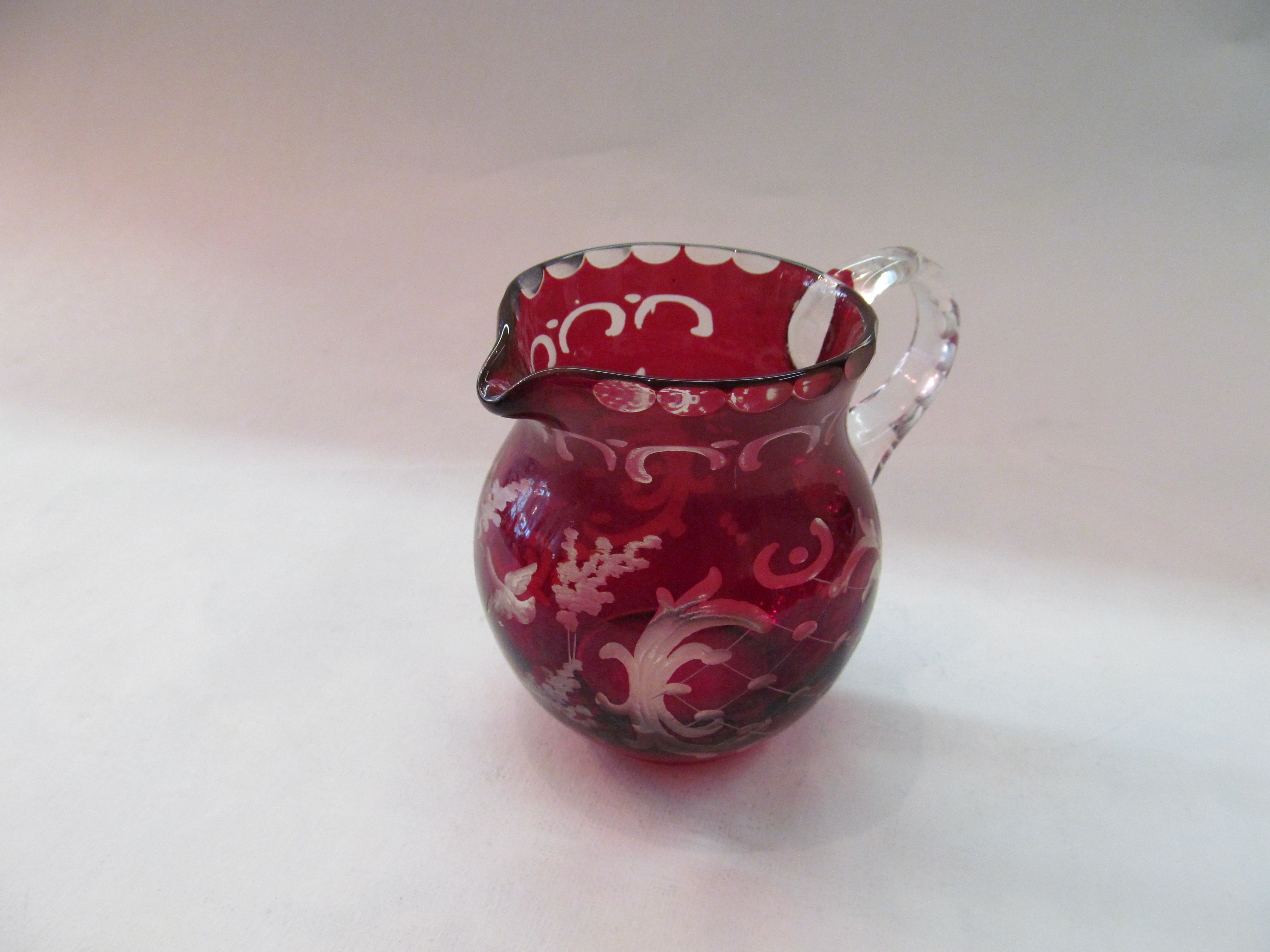Fine set of Old Bohemian Eggerman Ruby Cut Crystal Sugar and Creamer.