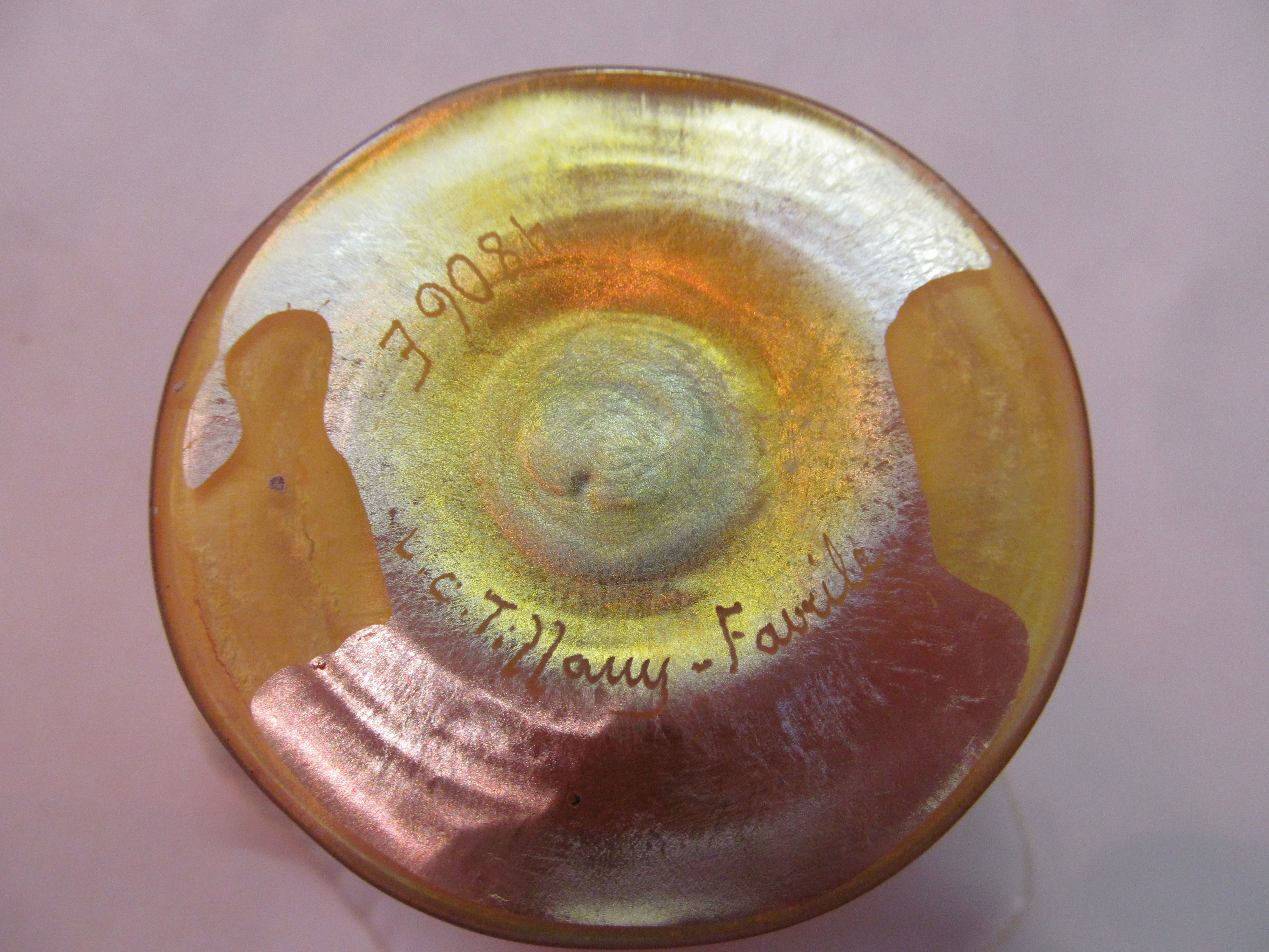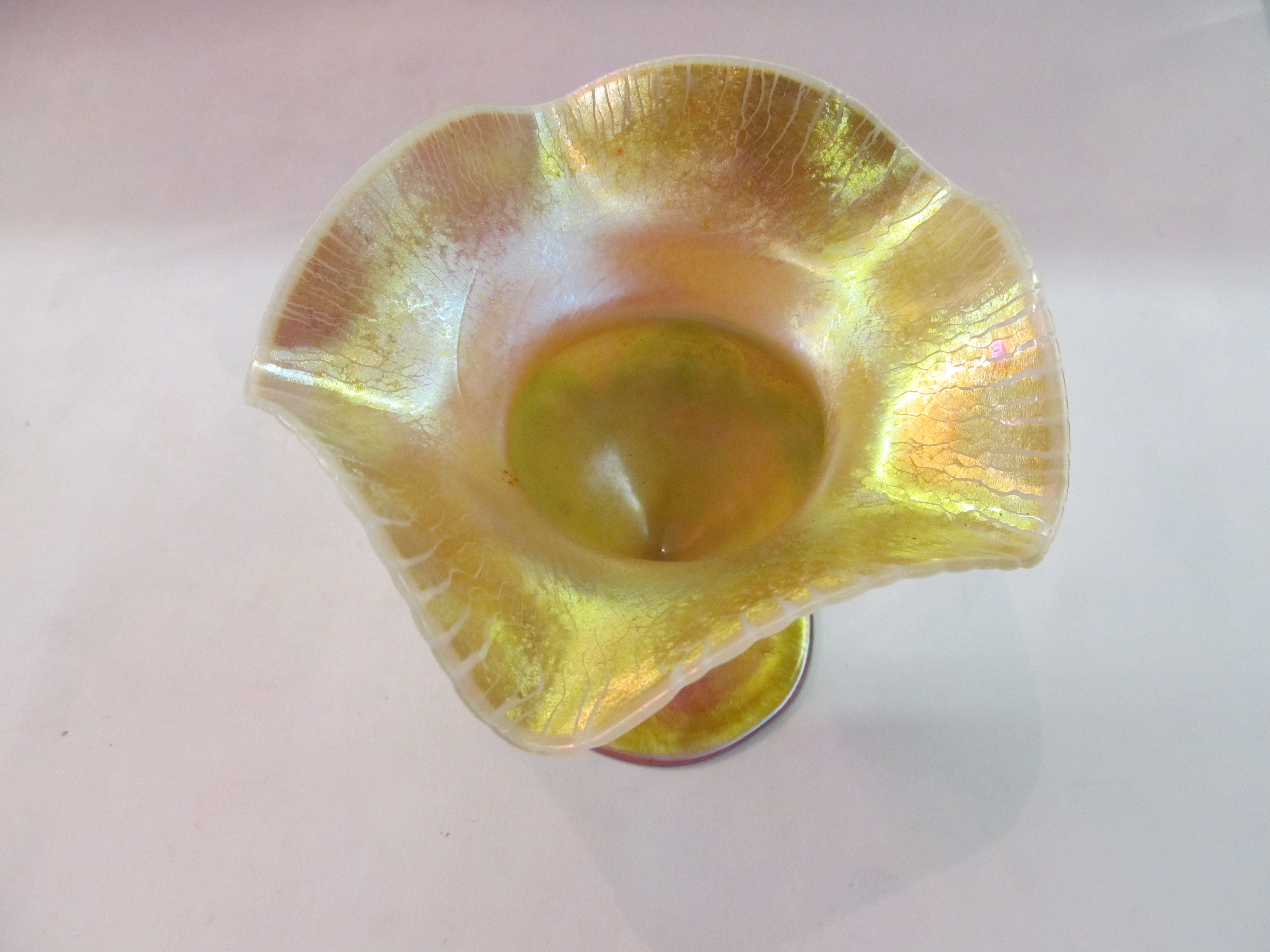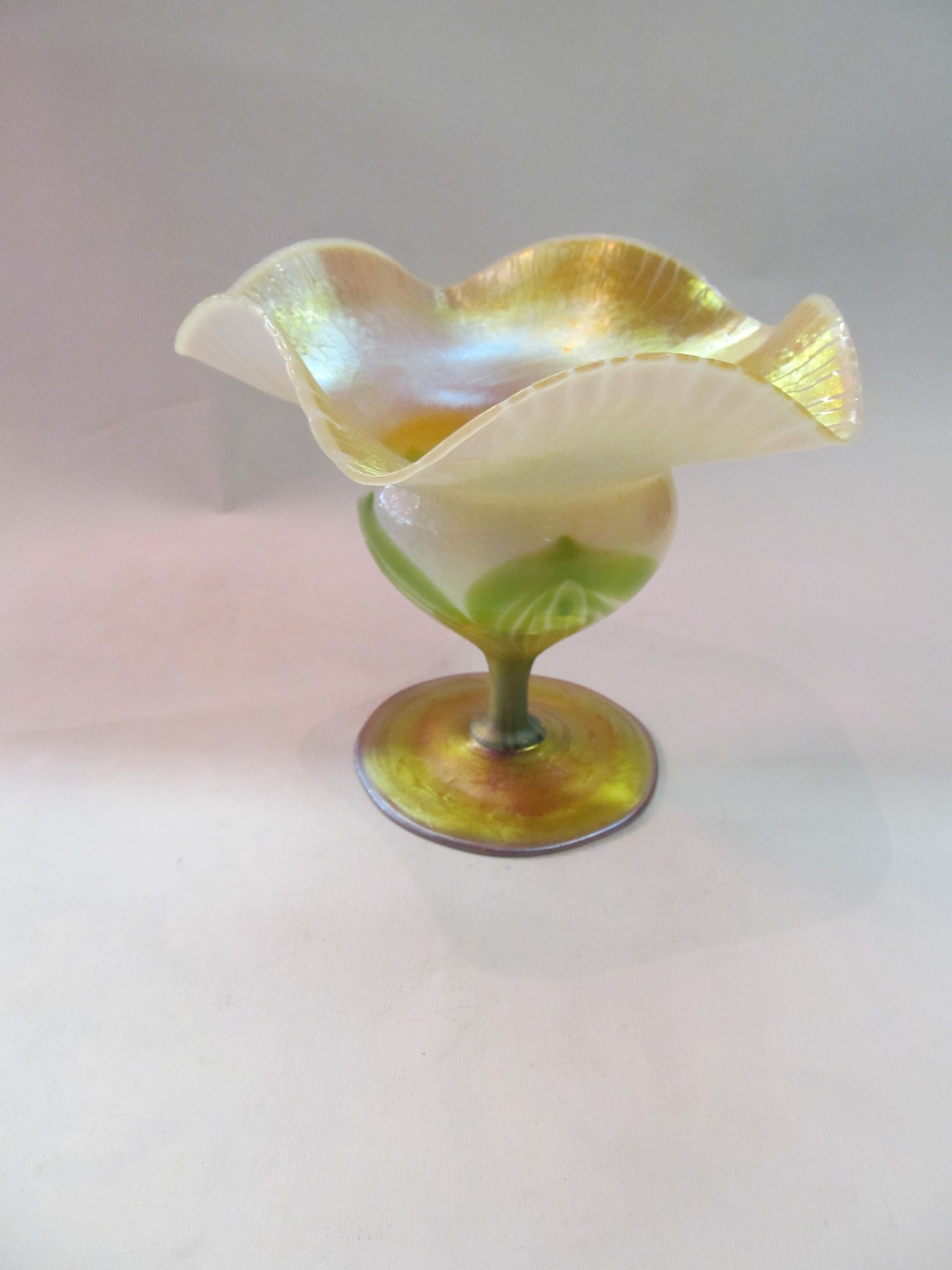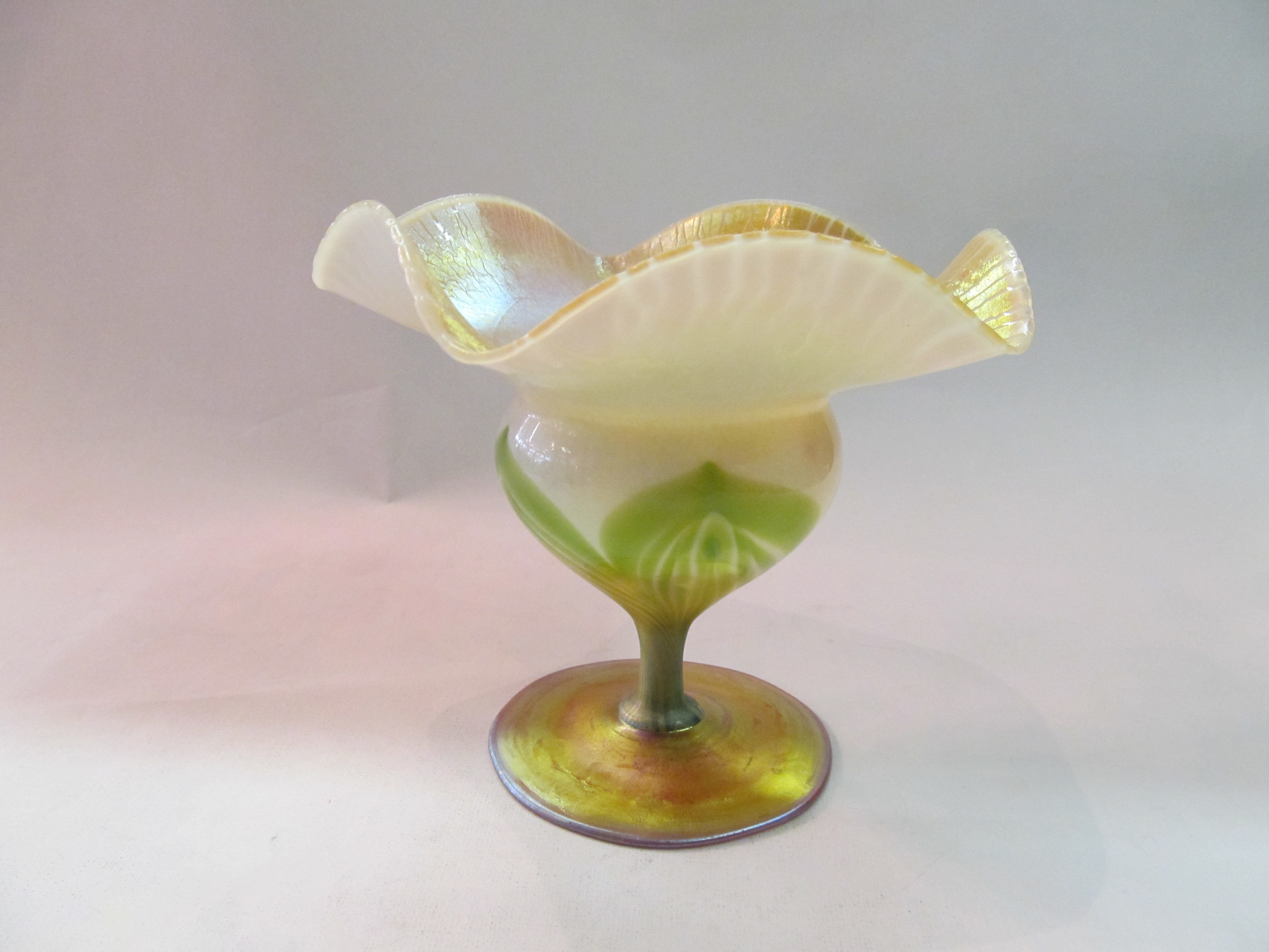 Very Fine and Rare Old Signed Louis comfort Tiffany “Favrille” glass ruffled pedestal vase.