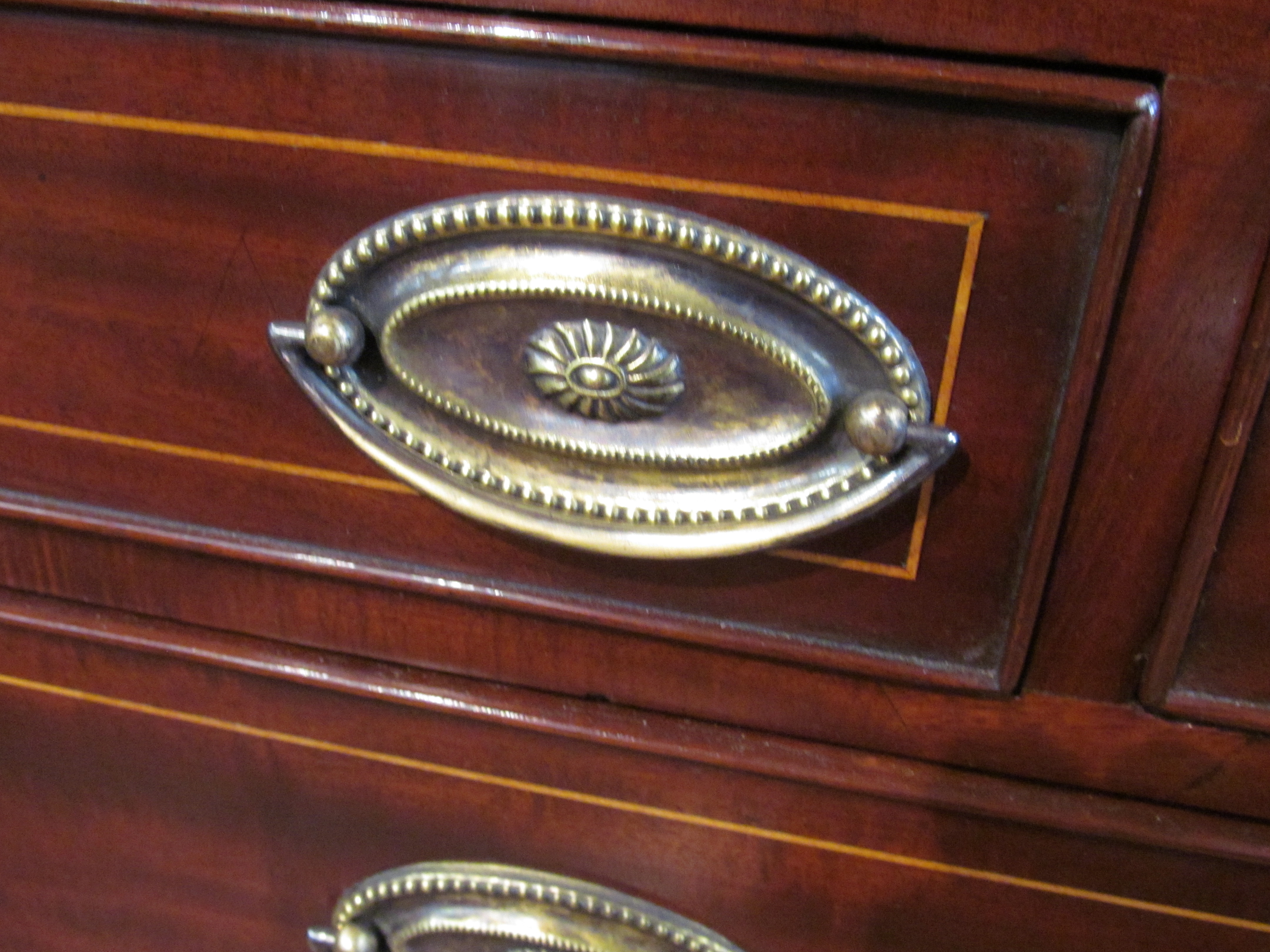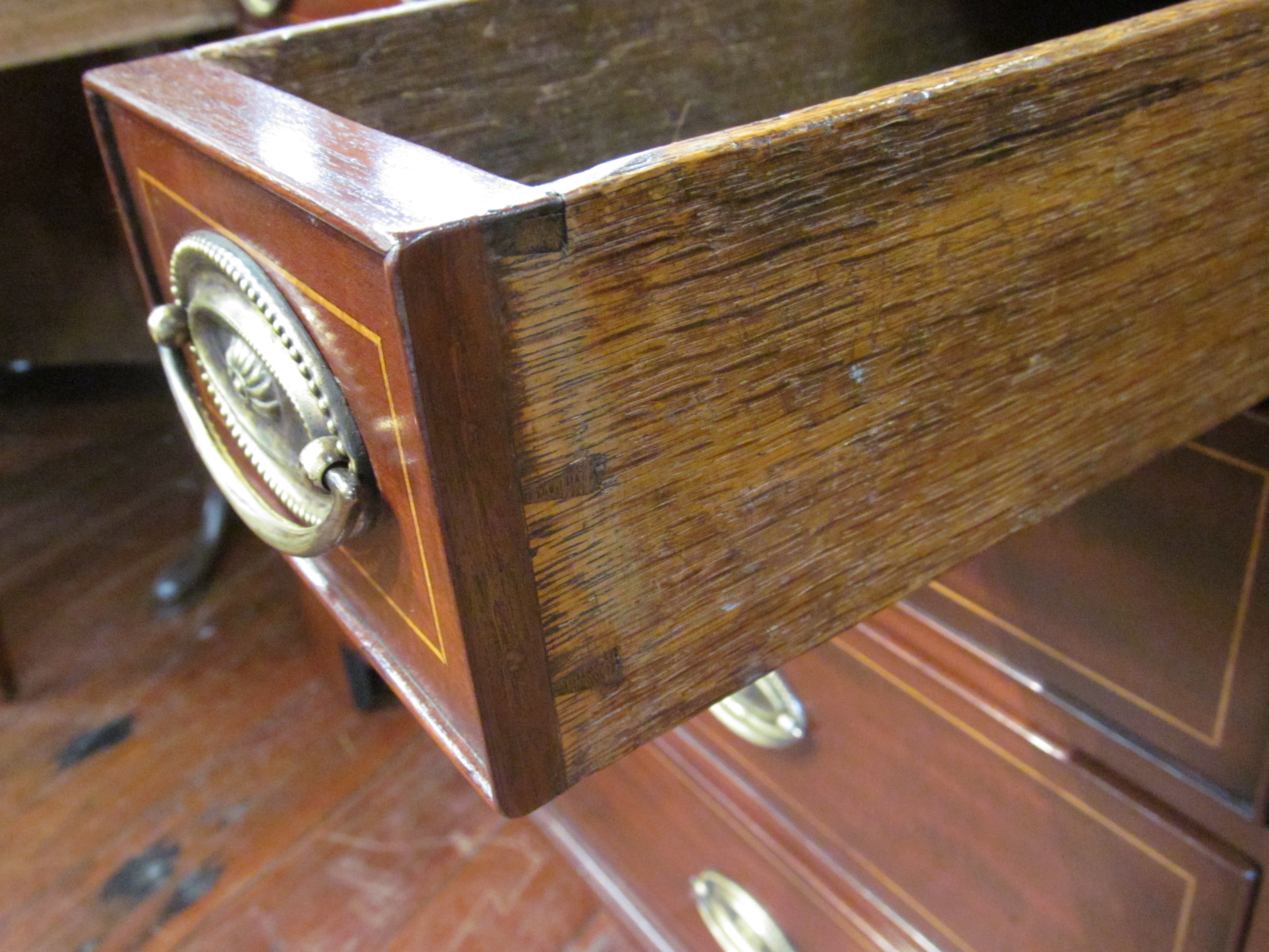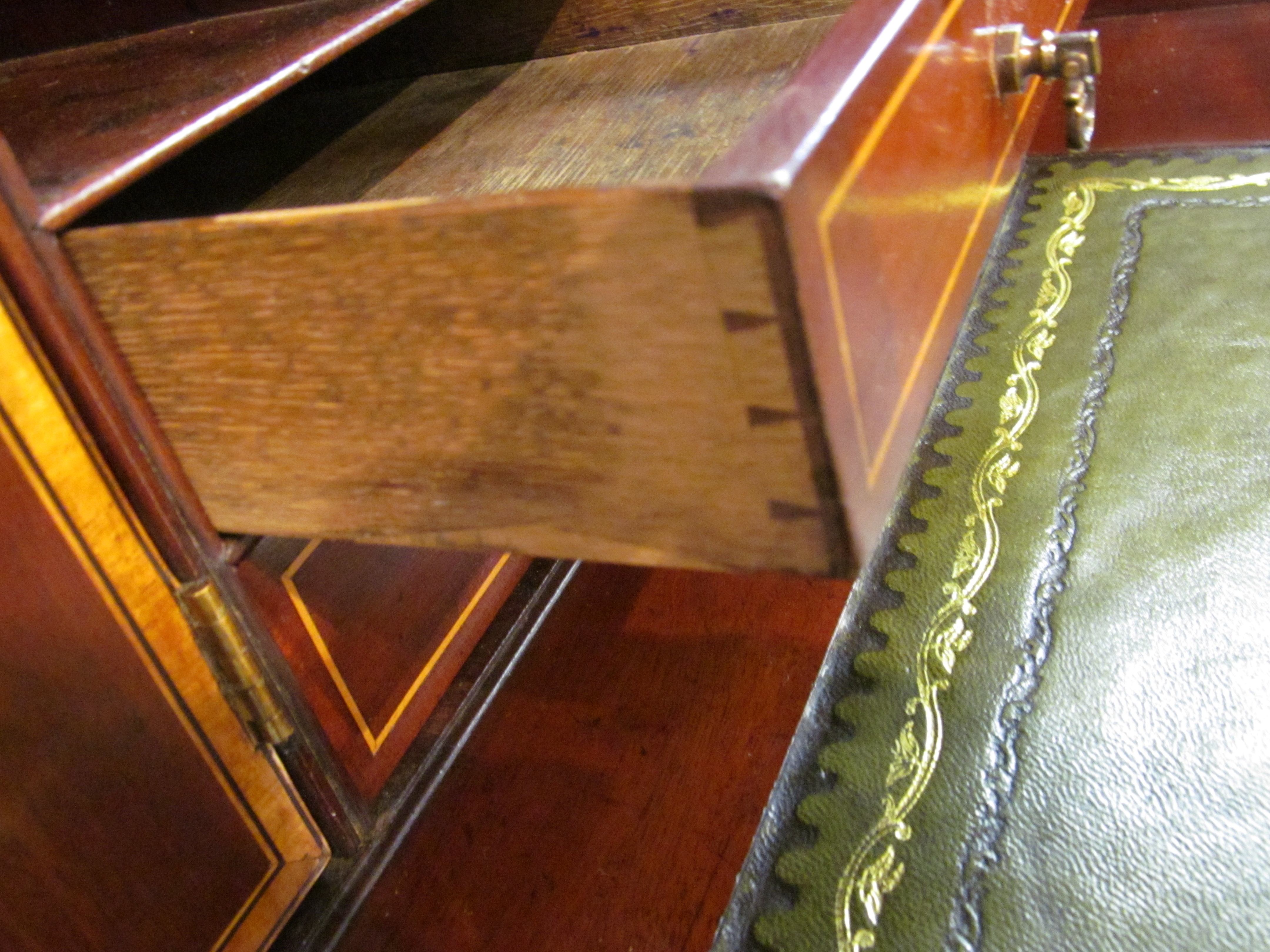 Wonderful “x” cross barring. Please note lovely marquetry inlaid prospect cupboard door and leather writing surface.