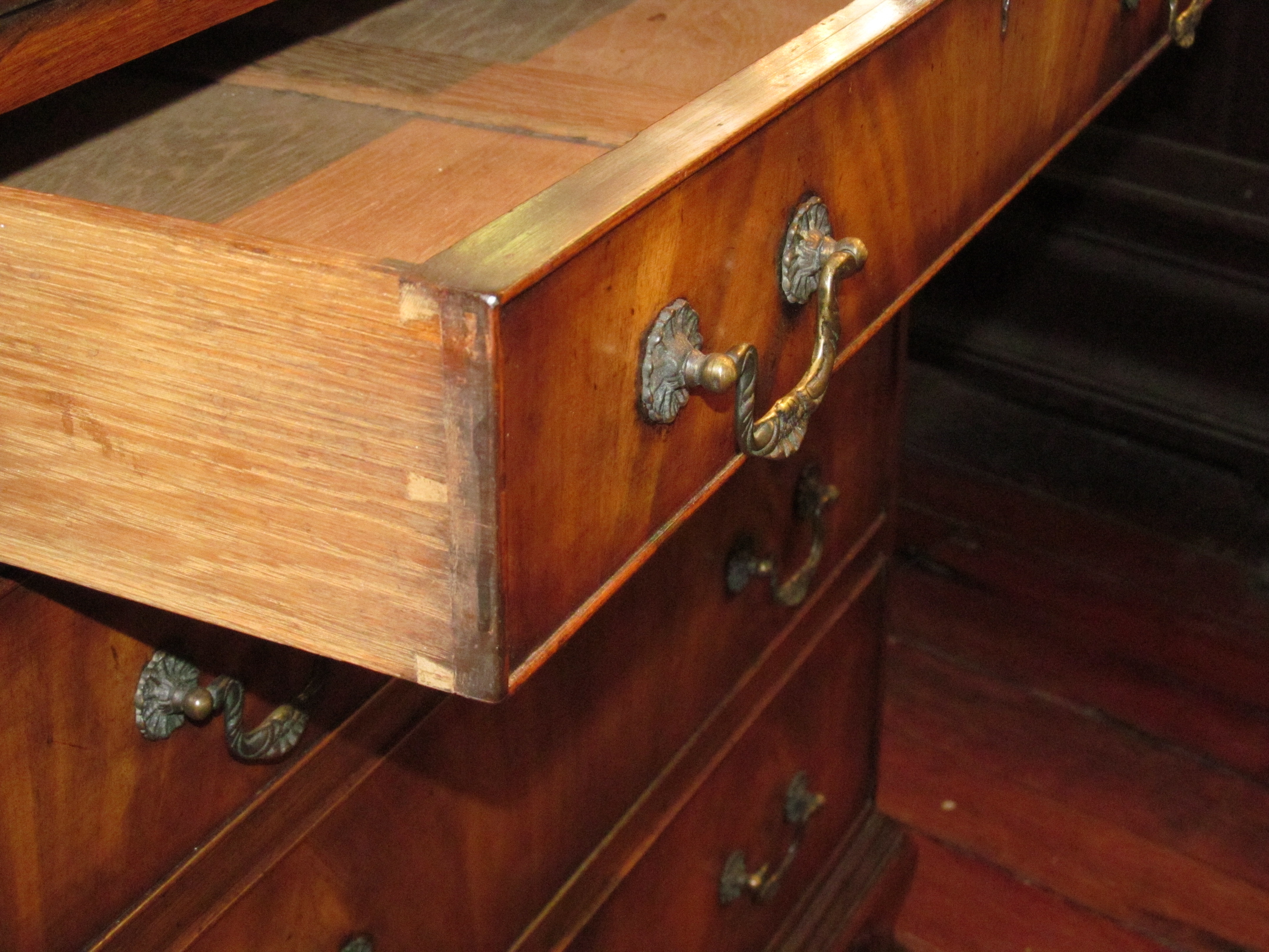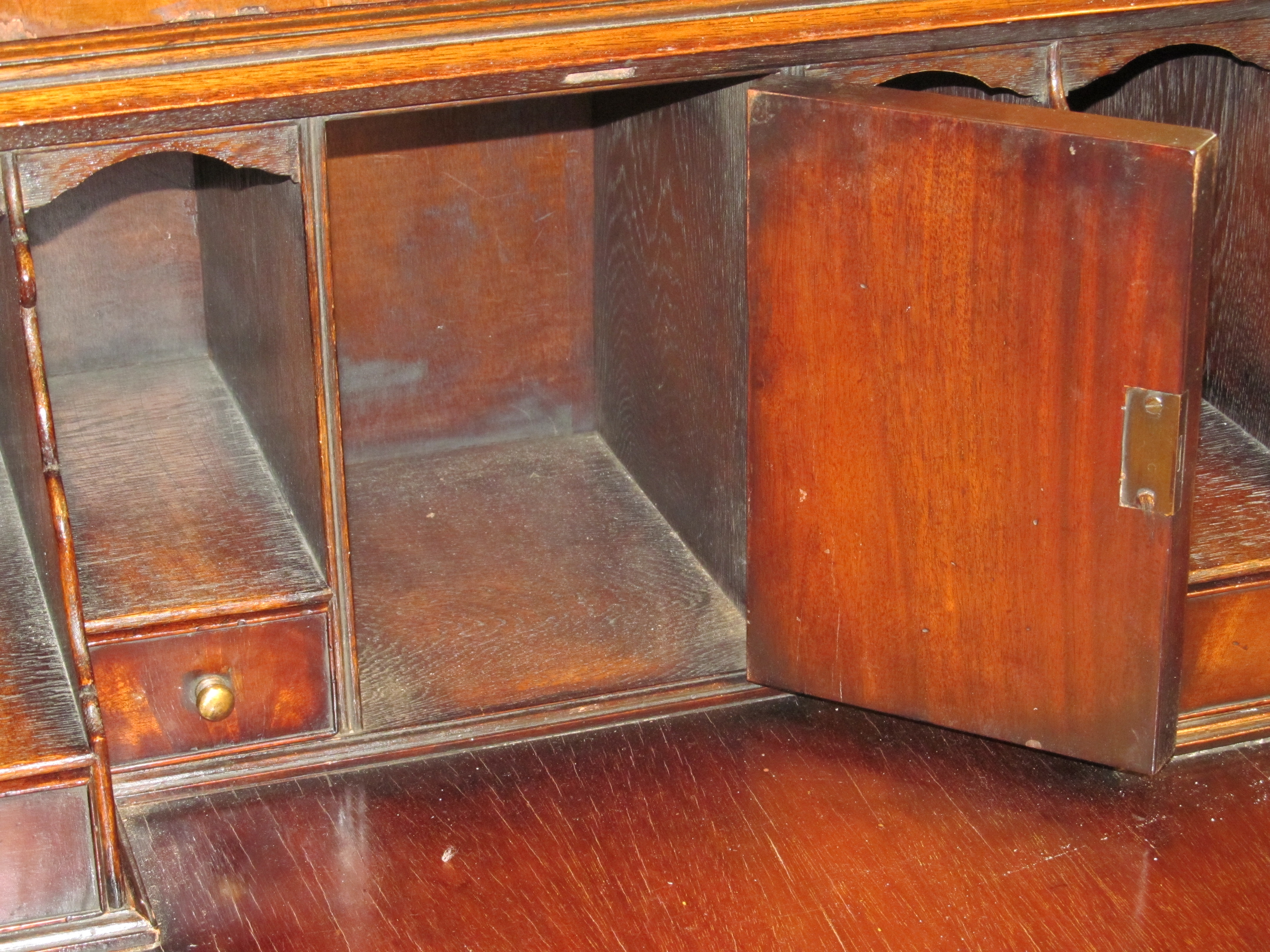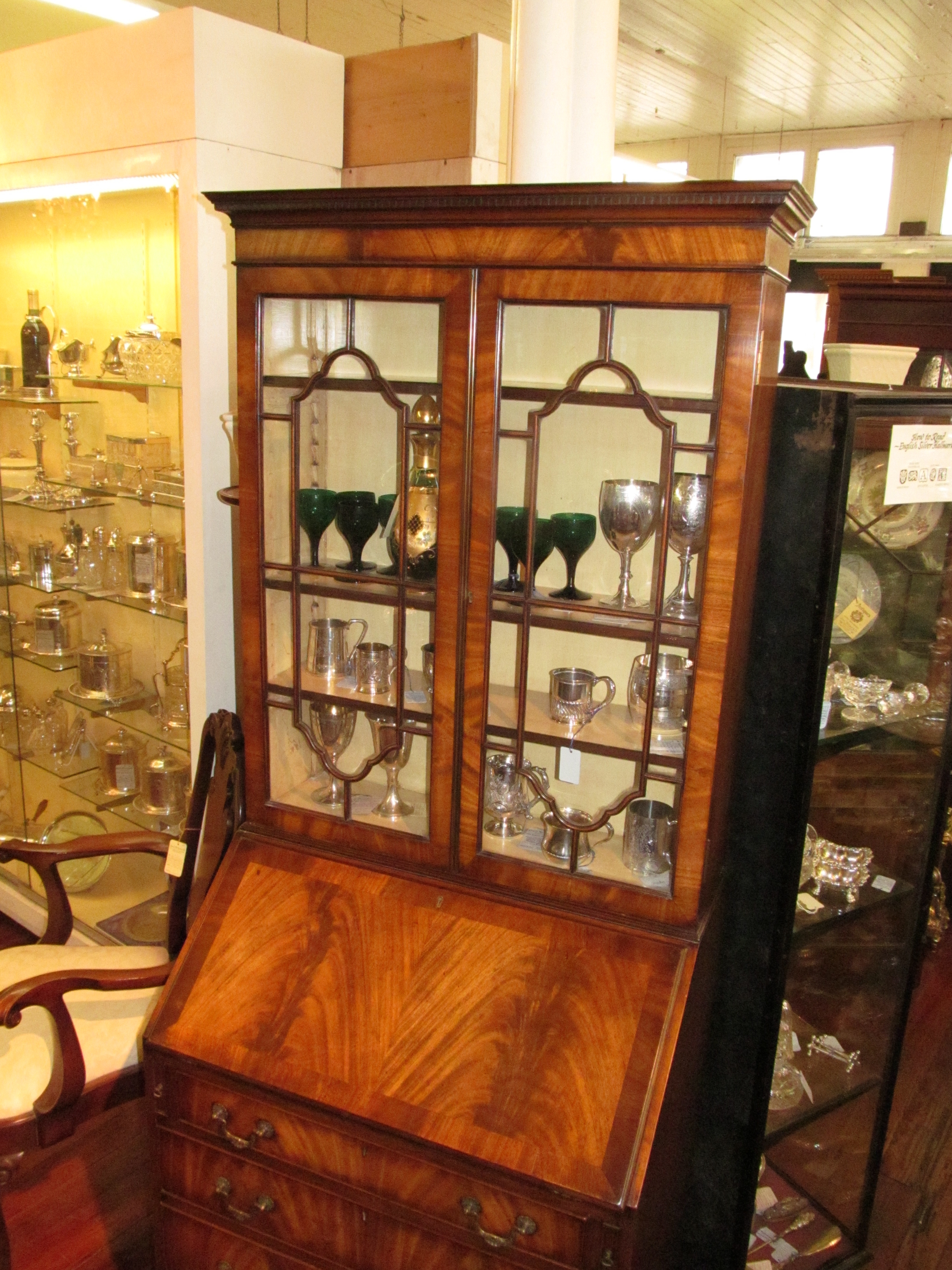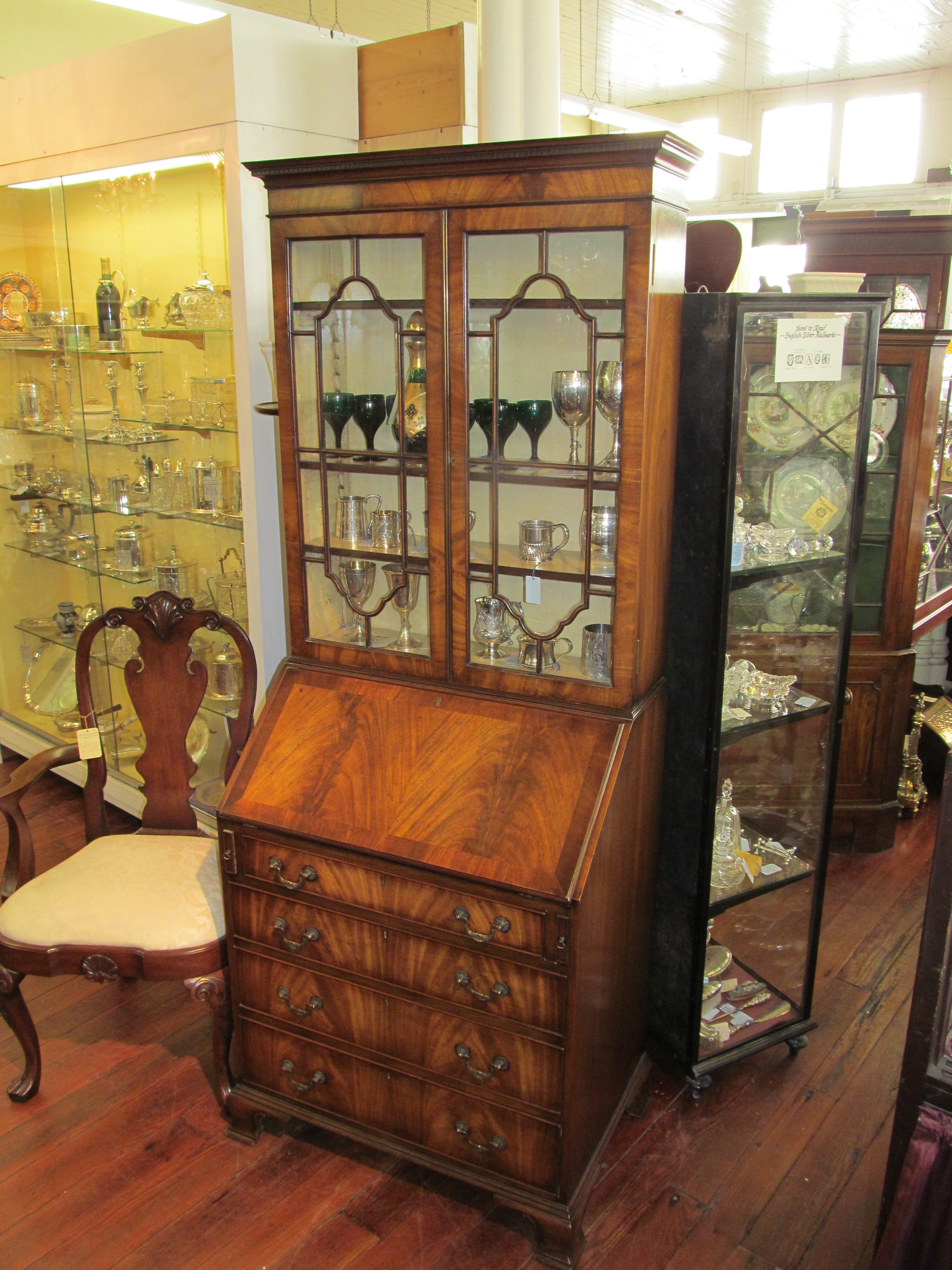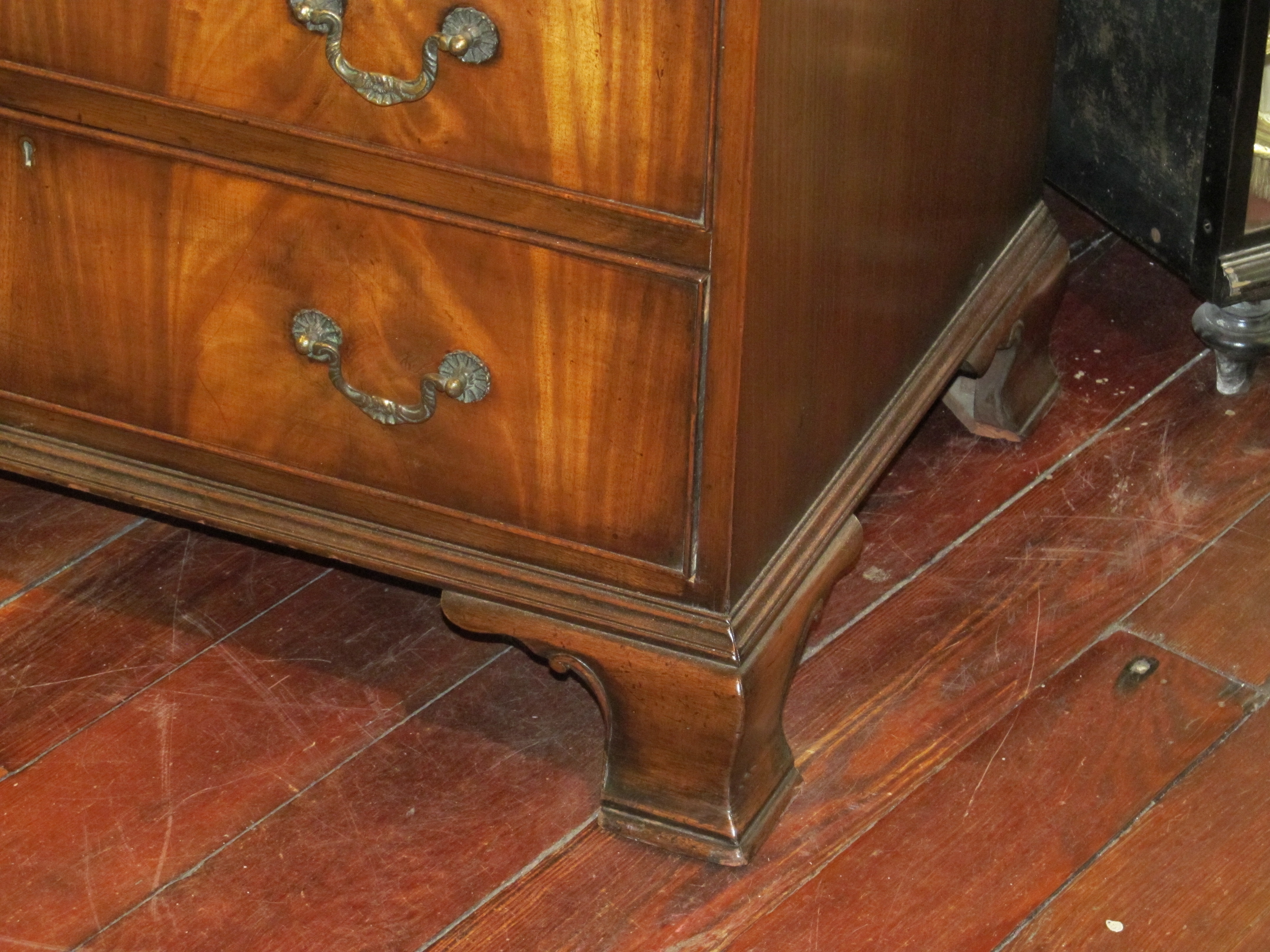Fine Old English Crotch Mahogany Chippendale Style Bureau Bookcase.