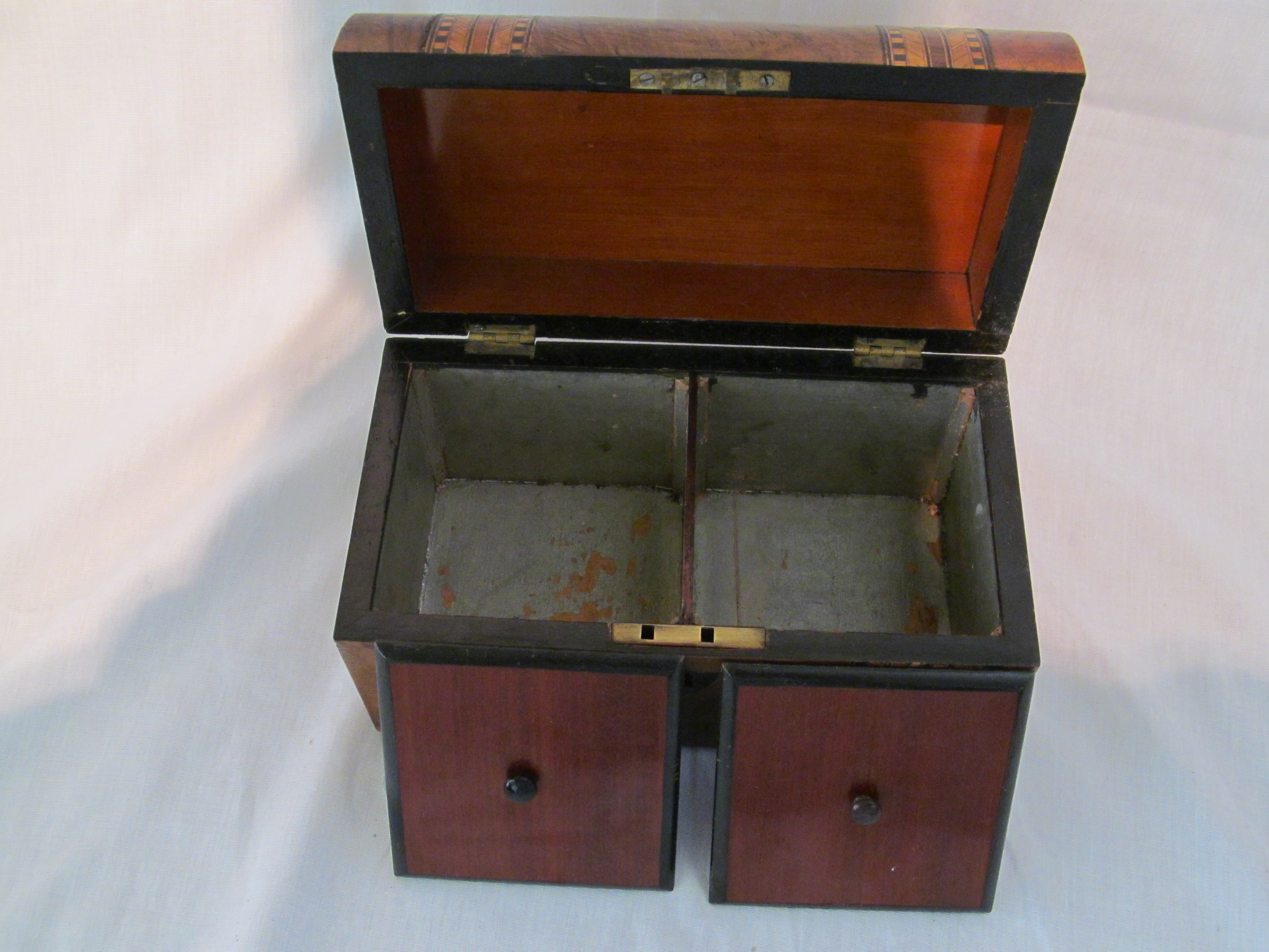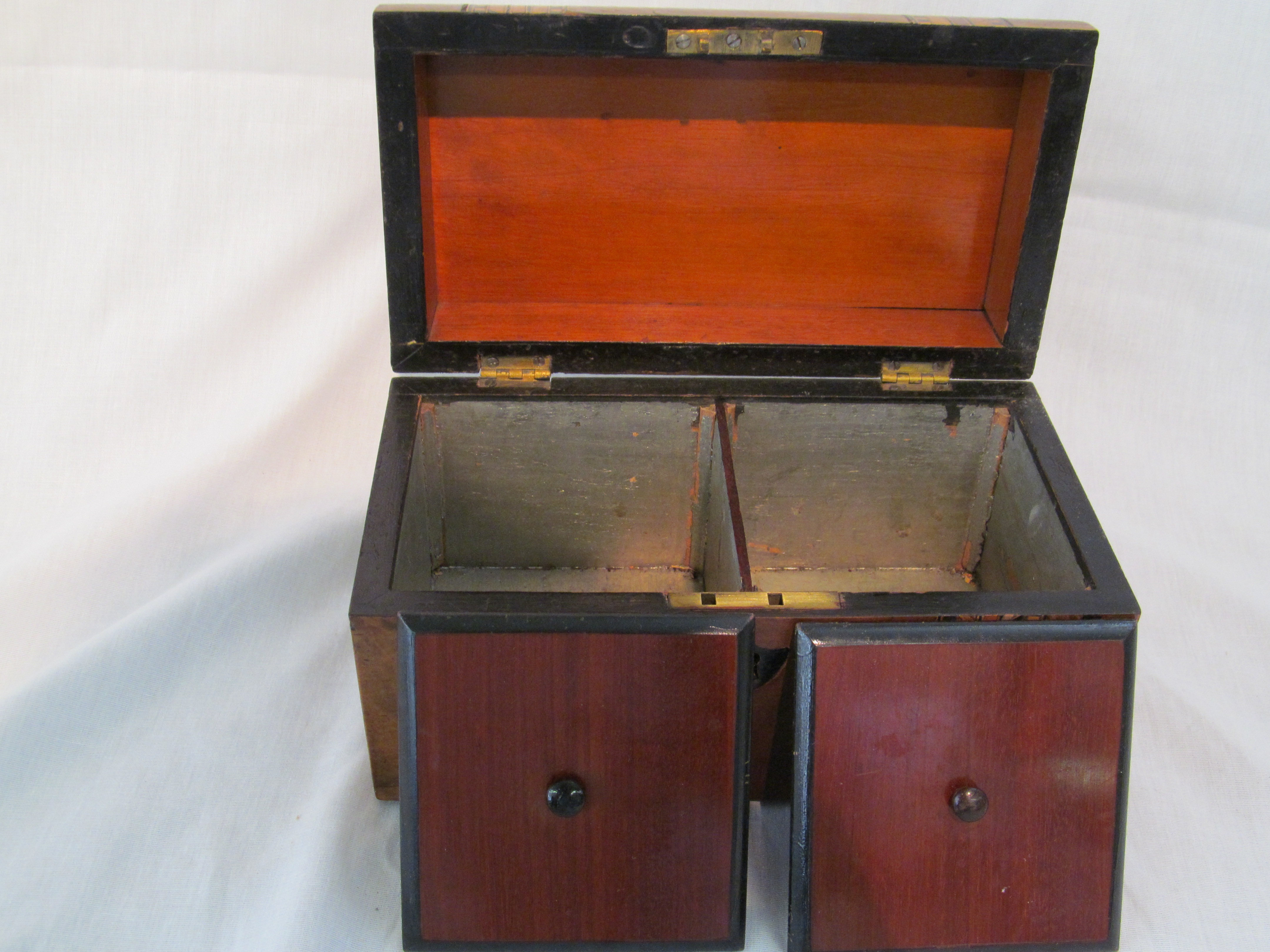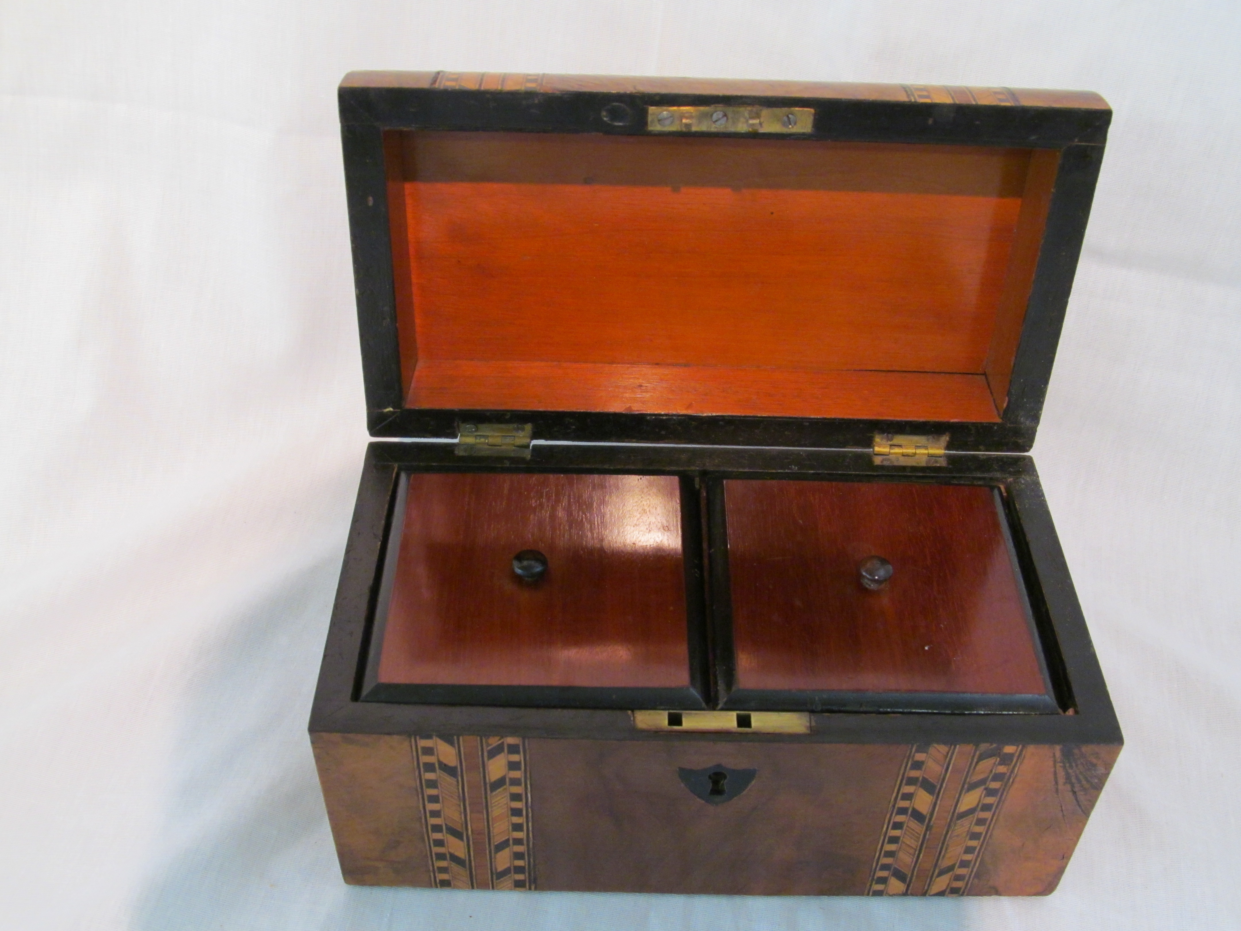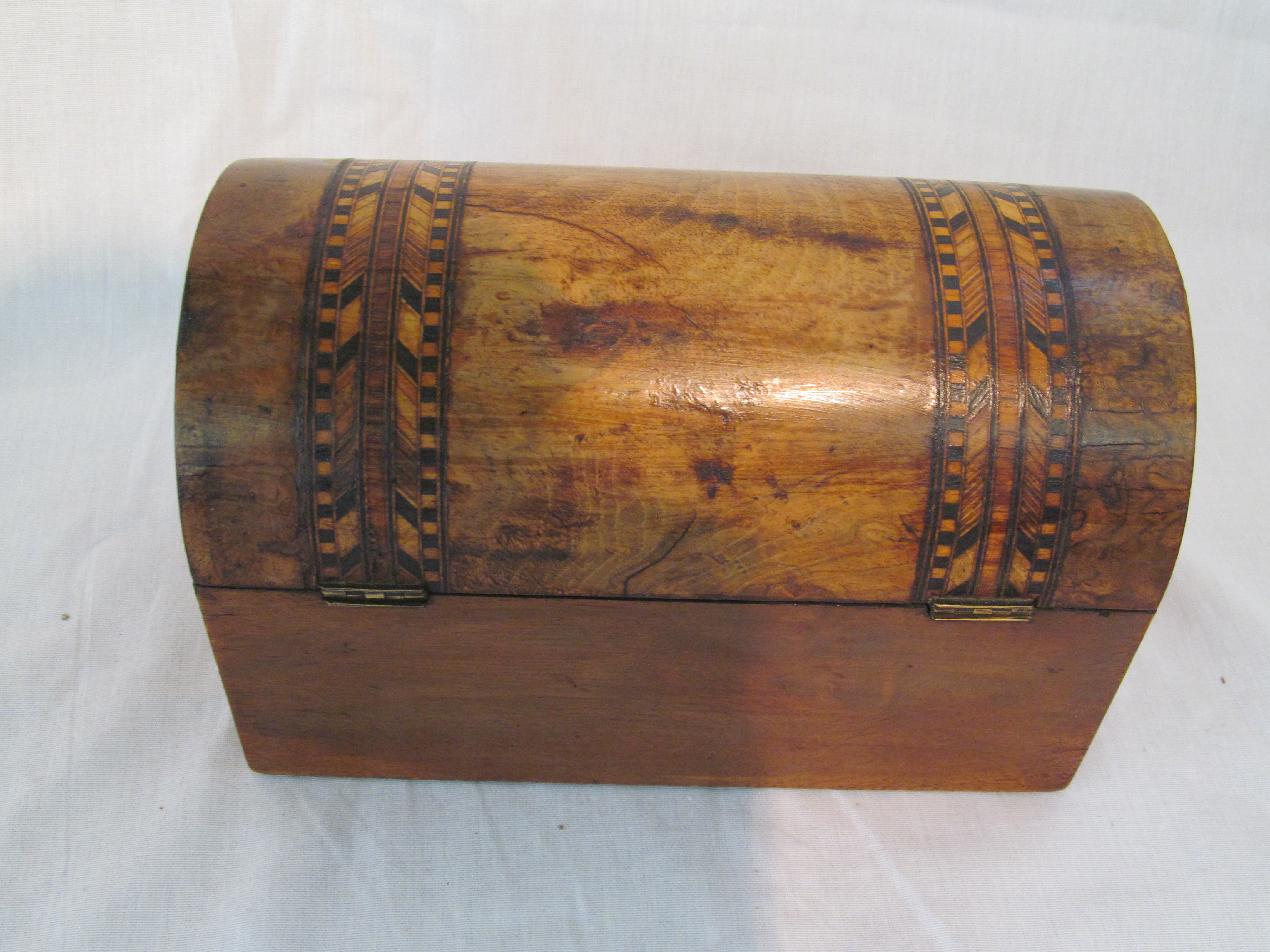 Superb Antique English Tunbridge Inlaid Walnut Domed Top Tea Caddy.