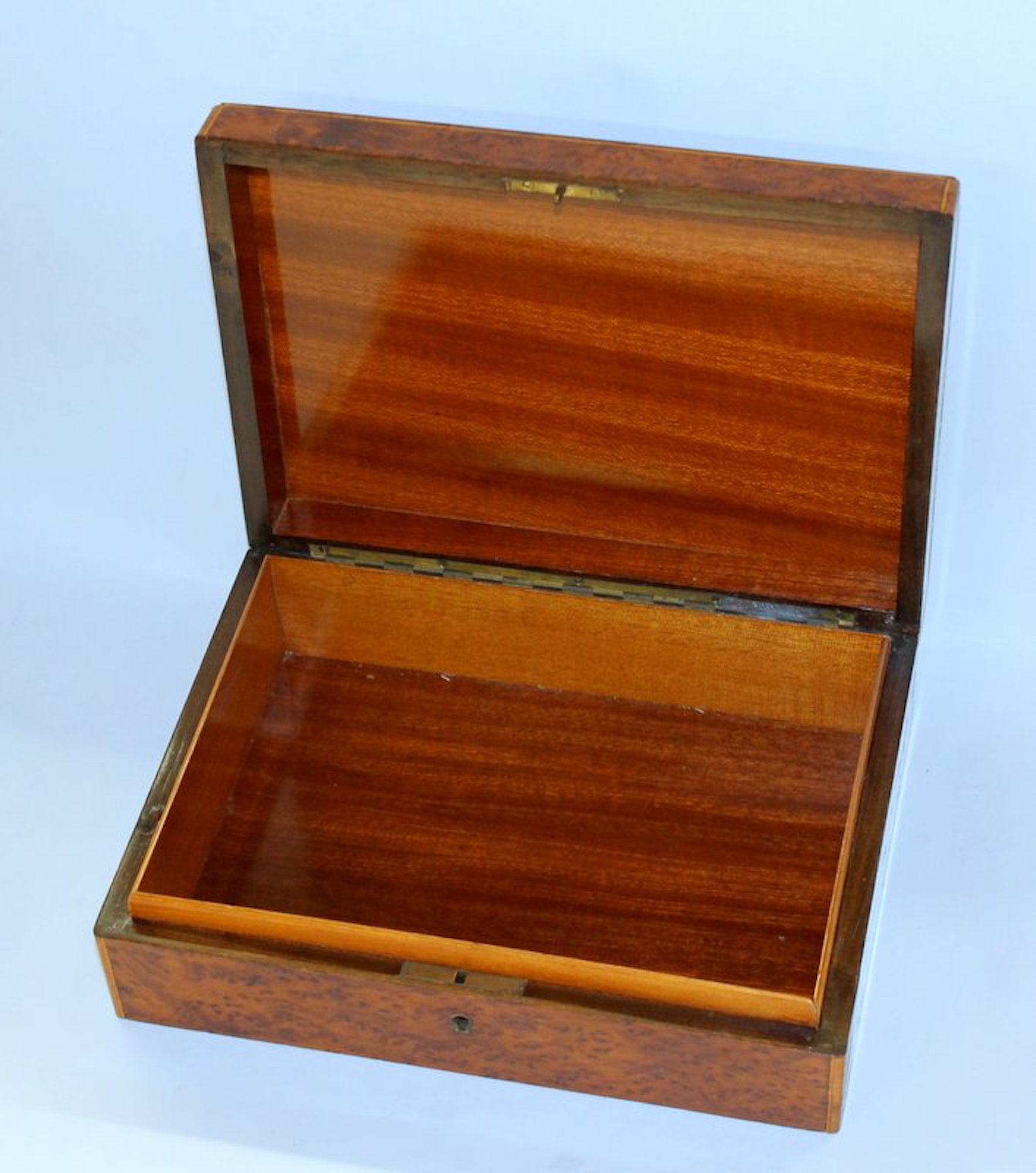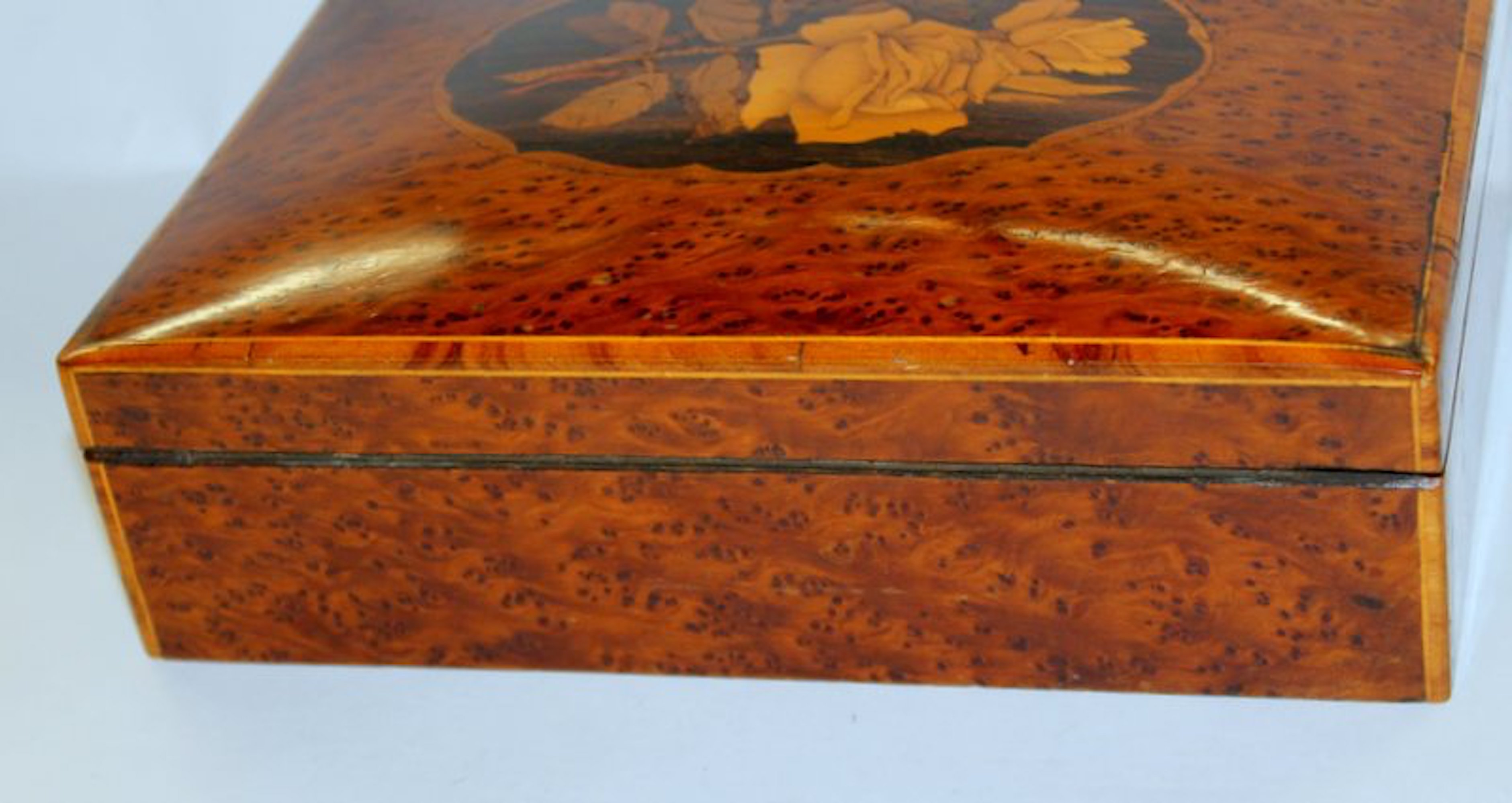 Old English Marquetry Inlaid Pippy Yew Dome Top Trinket Box - Image 9