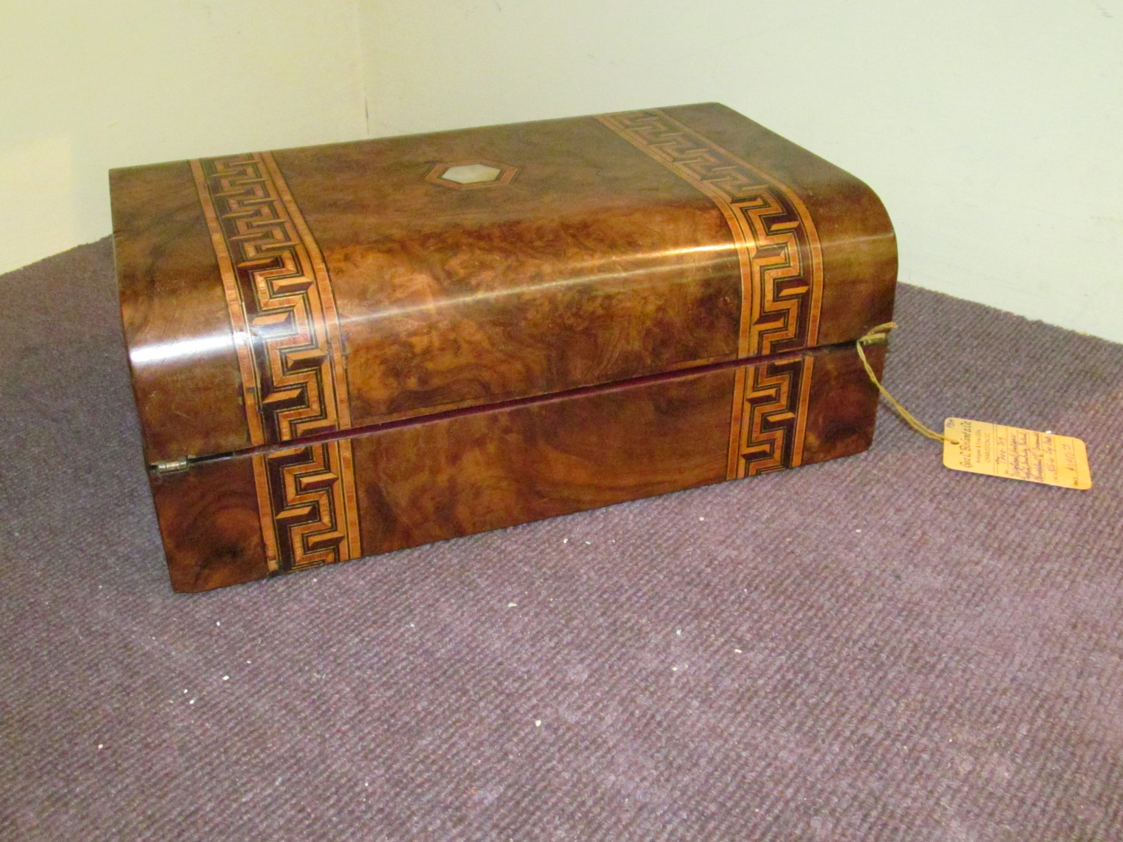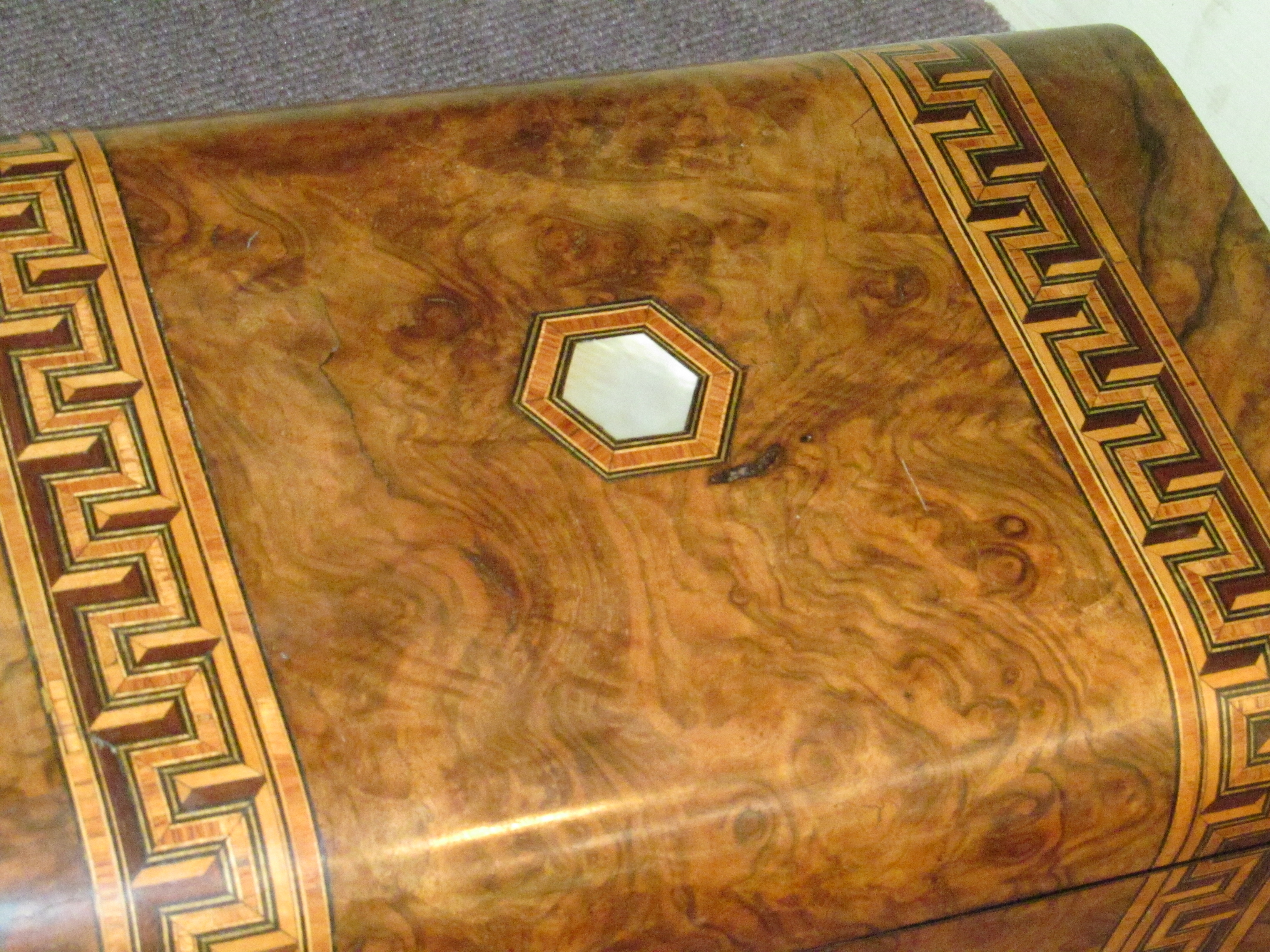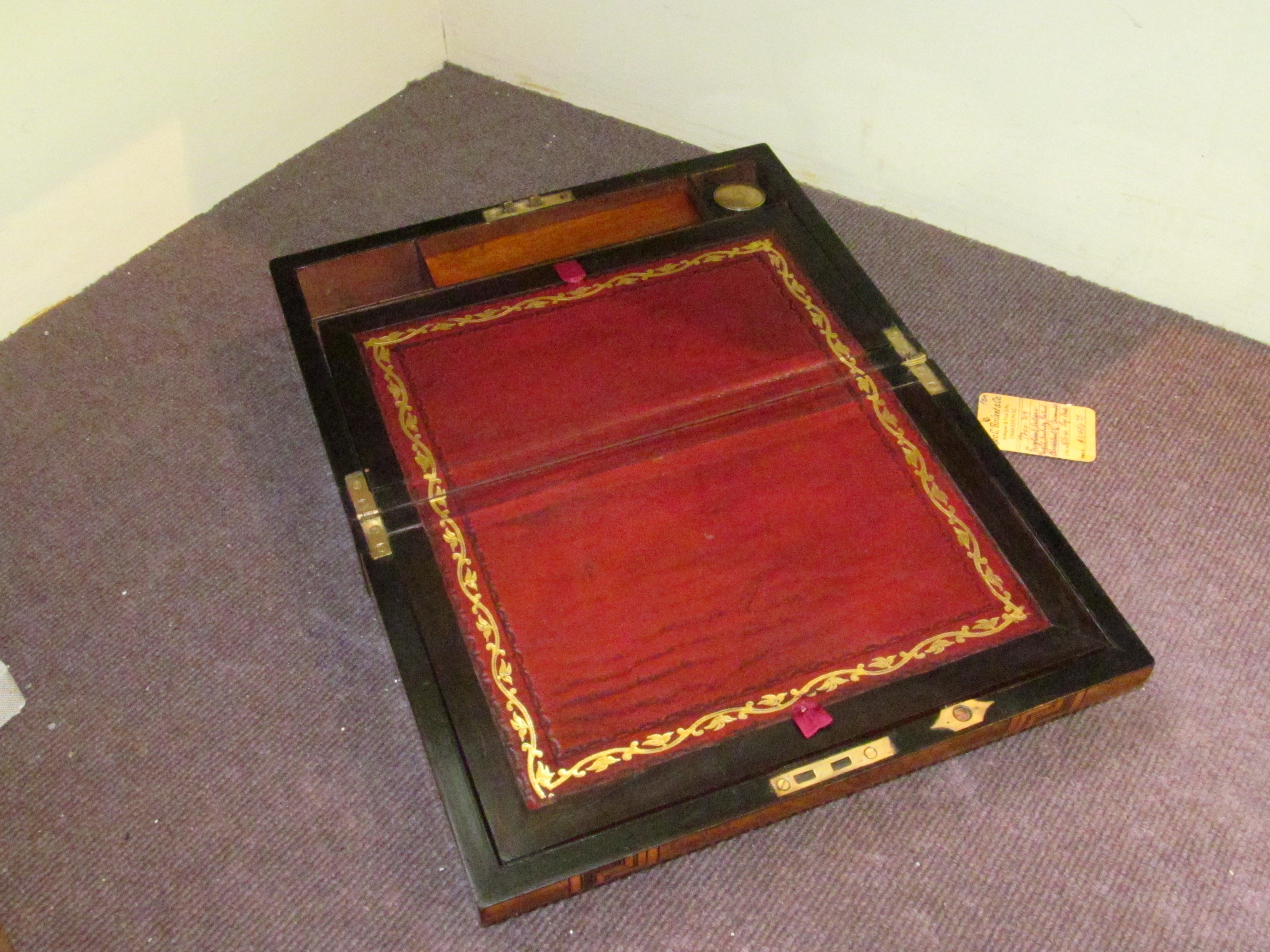 Exceptional Antique English Tumbridge Inlaid Burr Walnut and Coromandel Lap Desk.