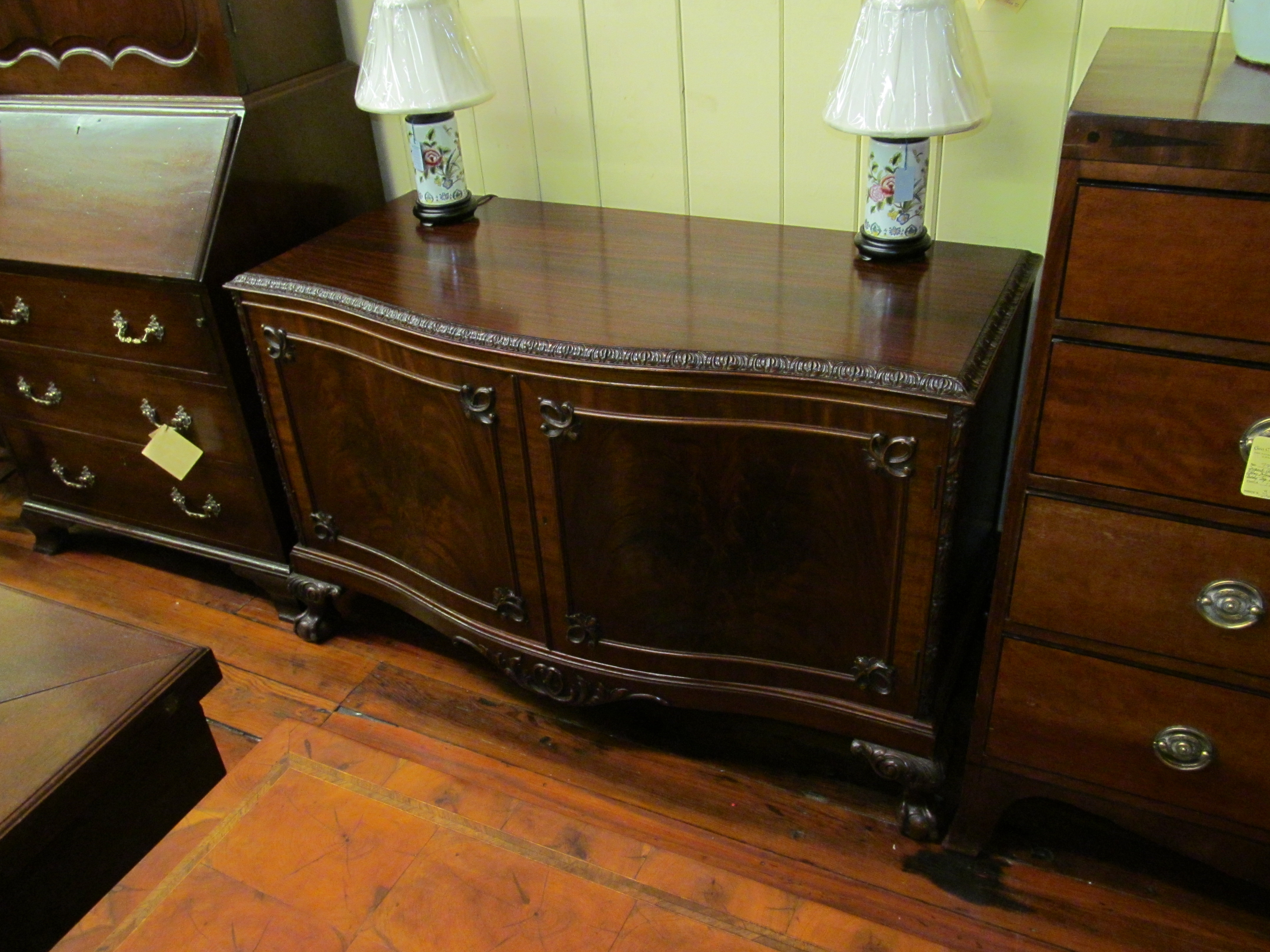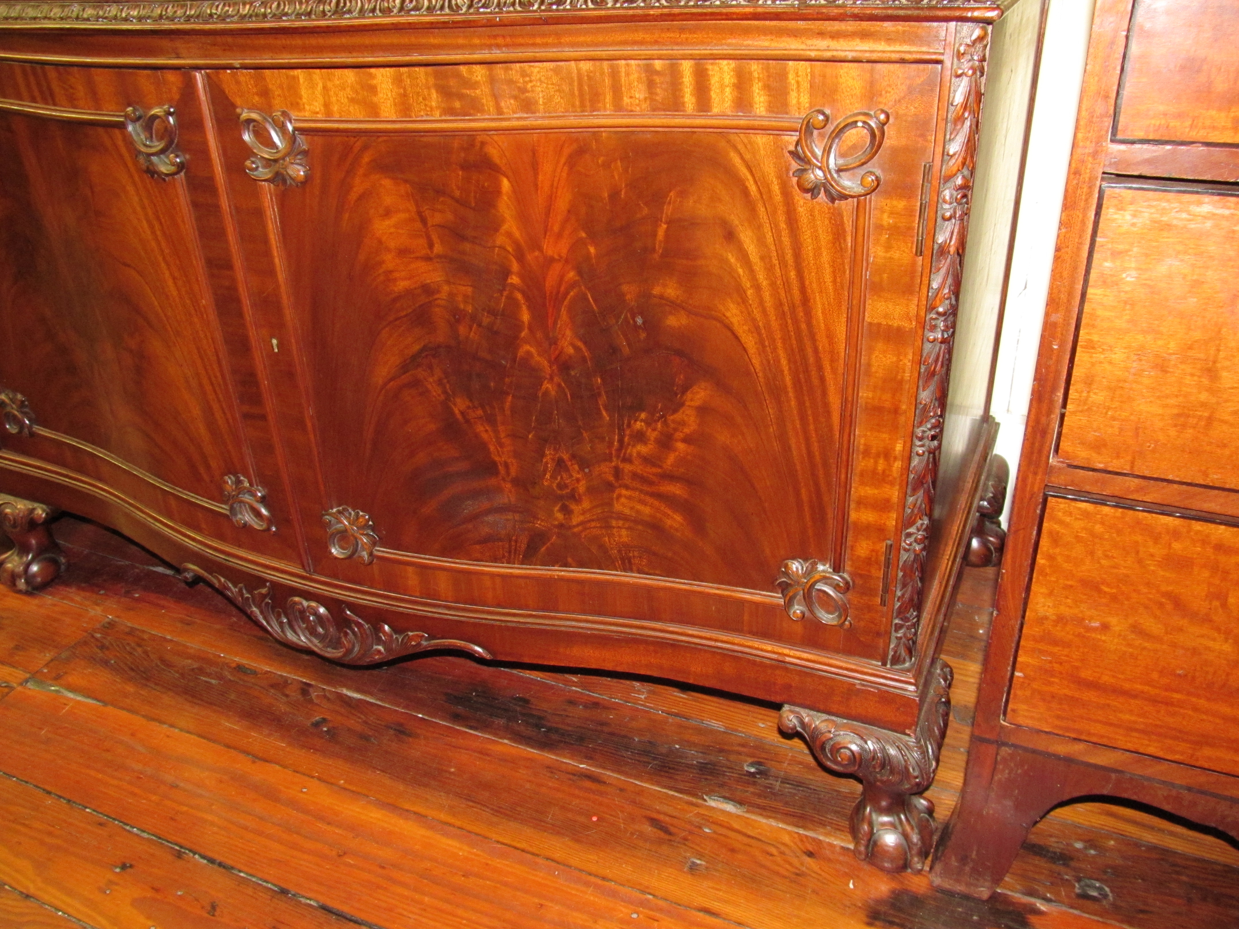 Fine Old English Signed Carved Mahogany Chippendale Style Server.