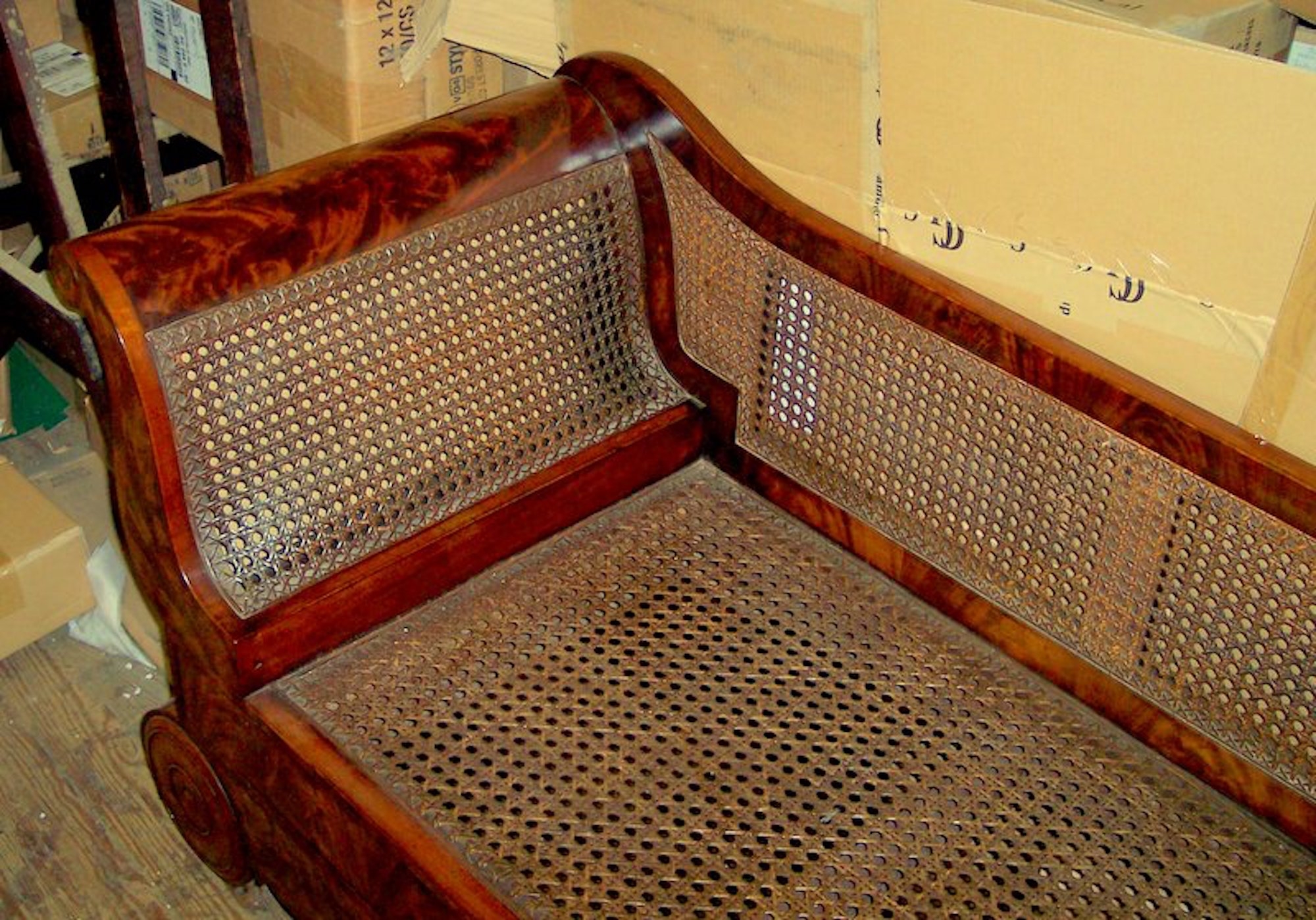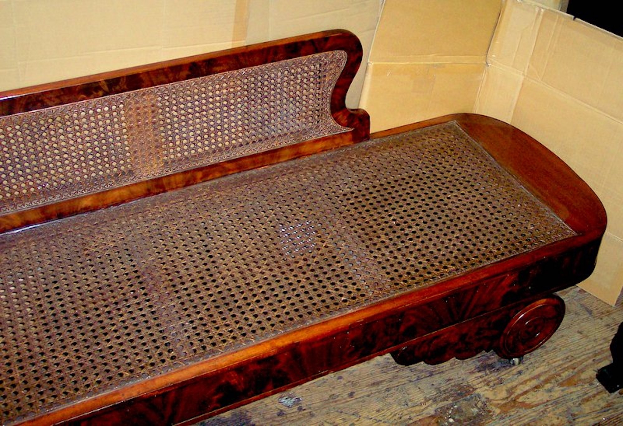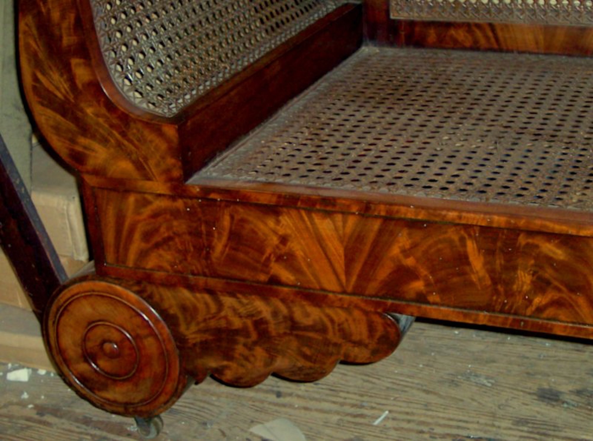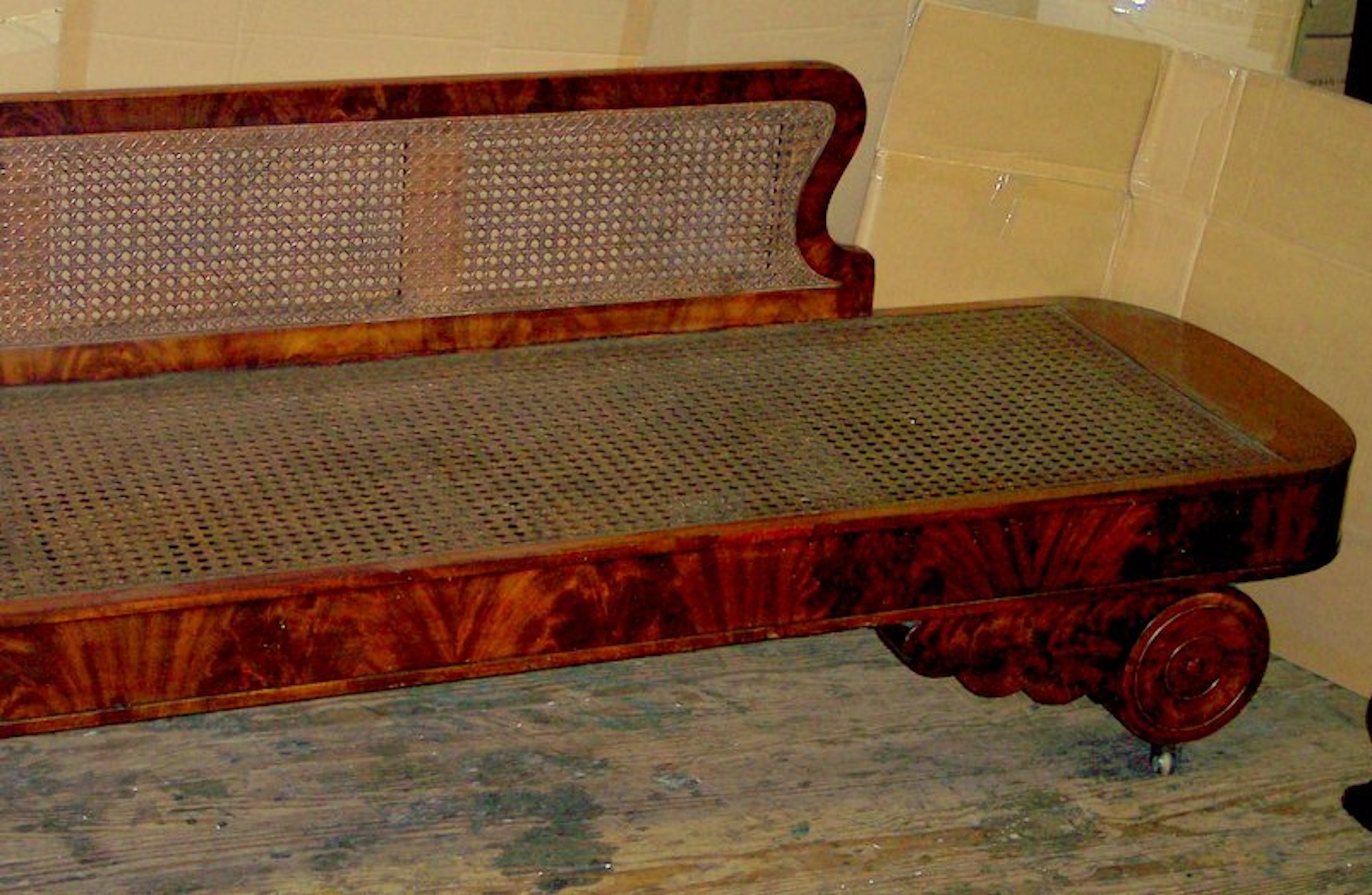 Rare and Important Antique American Flame Mahogany and Cane Empire Period Neoclassical Recamier or Chaise Lounge