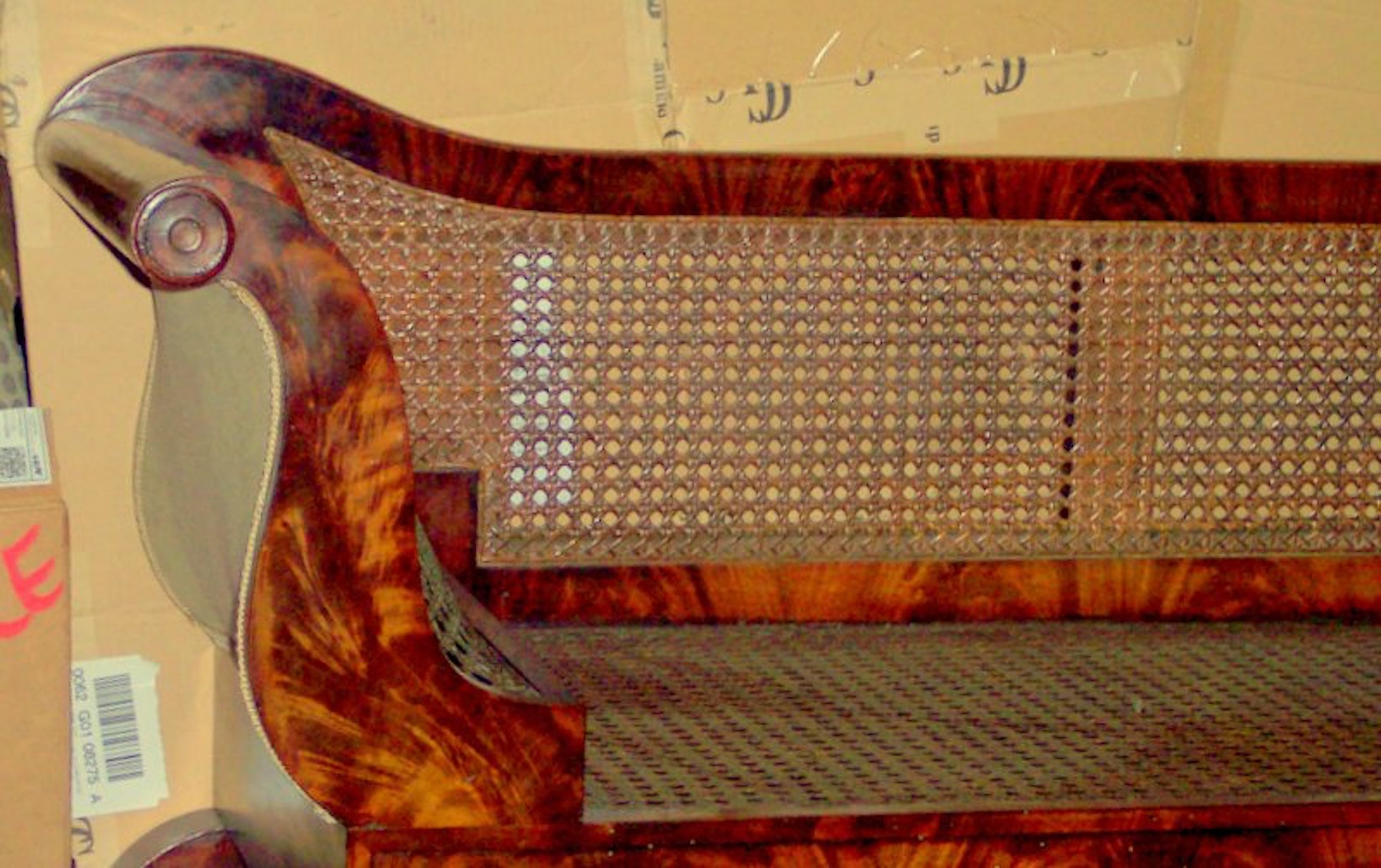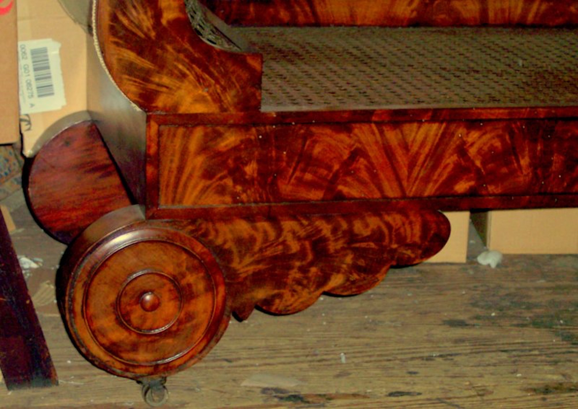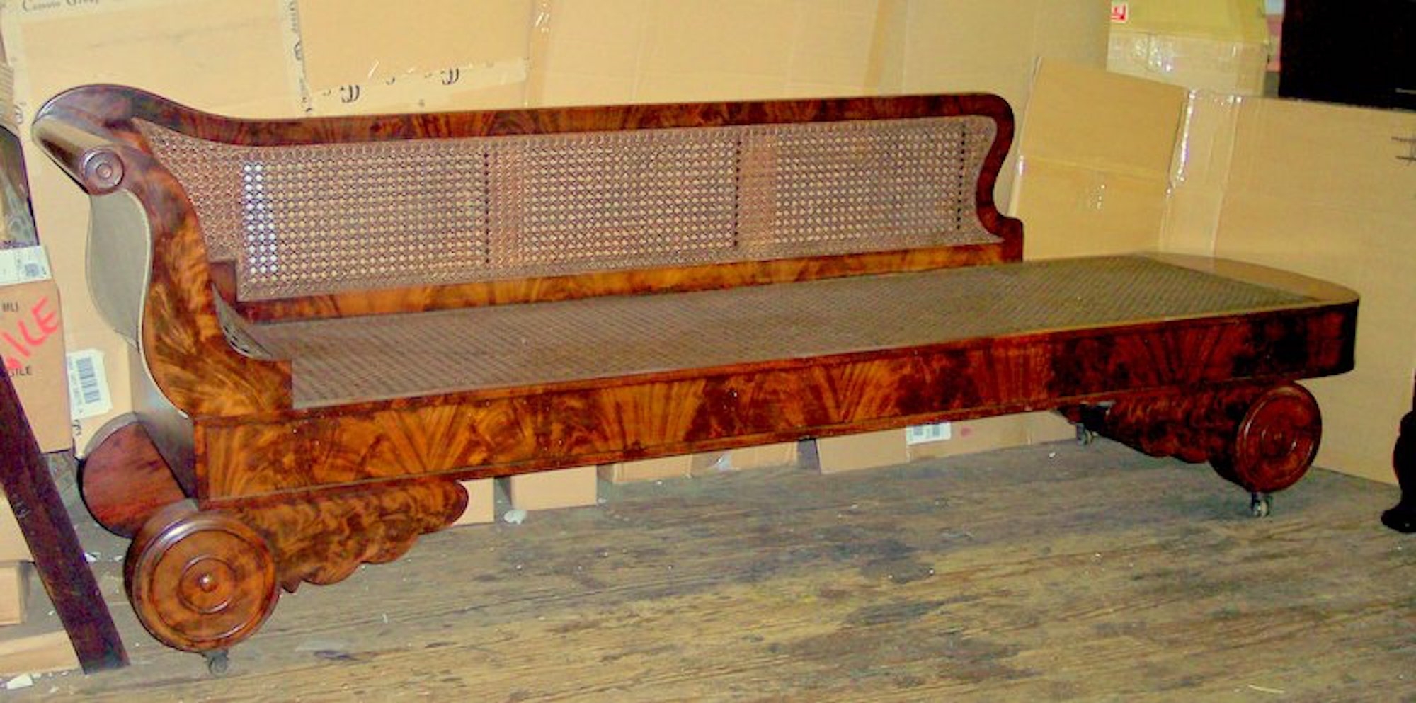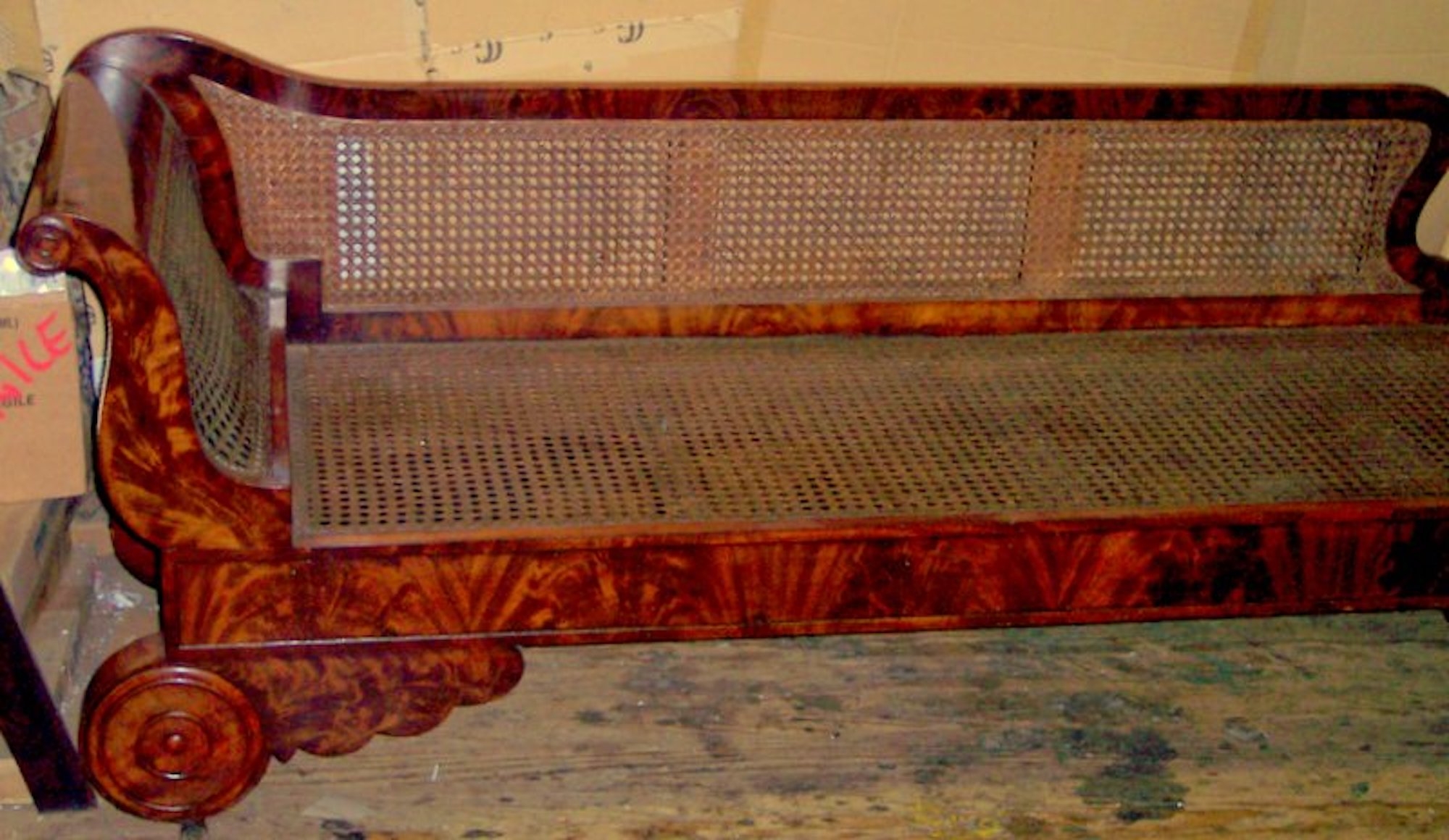 Rare and Important Antique American Flame Mahogany and Cane Empire Period Neoclassical Recamier or Chaise Lounge