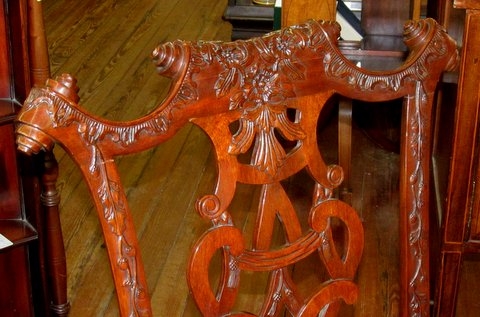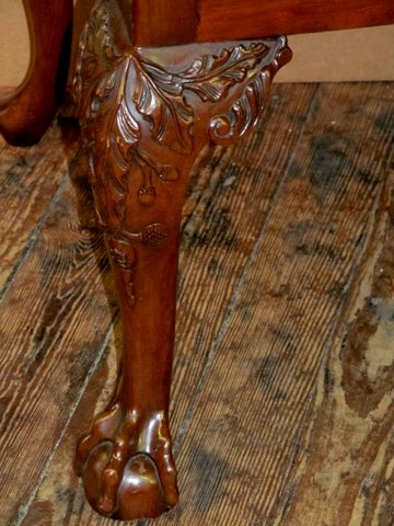 Please note exceptionally crisp hand carved detail. Also please note the “parchment scroll” crest rail.