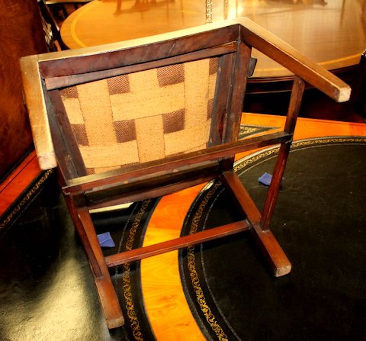 It has a “rare “saddle” shaped seat with likely original upholstered fabric and nailhead trim