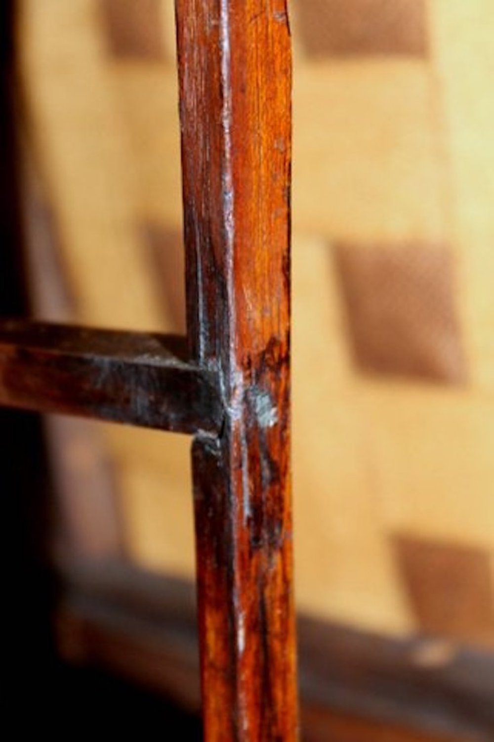 Note several old repairs as shown in the detailed images.  Otherwise chair is very sound and sturdy with no wobbling or loose joints. Lovely pierced back splat with acanthus leaf motif.